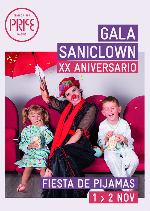 El Teatro Circo Price, espacio del Área de Cultura, Turismo y Deporte acogerá durante los días 1 y 2 de noviembre la gala solidaria Fiesta de Pijamas, un espectáculo con el que Saniclown, asociación nacional de payasos de hospital sin ánimo de lucro, celebra su 20 aniversario y rinde homenaje a las más de 40.000 personas con las que han compartido momentos de alegría dando un enfoque único a la salud emocional de los pacientes.