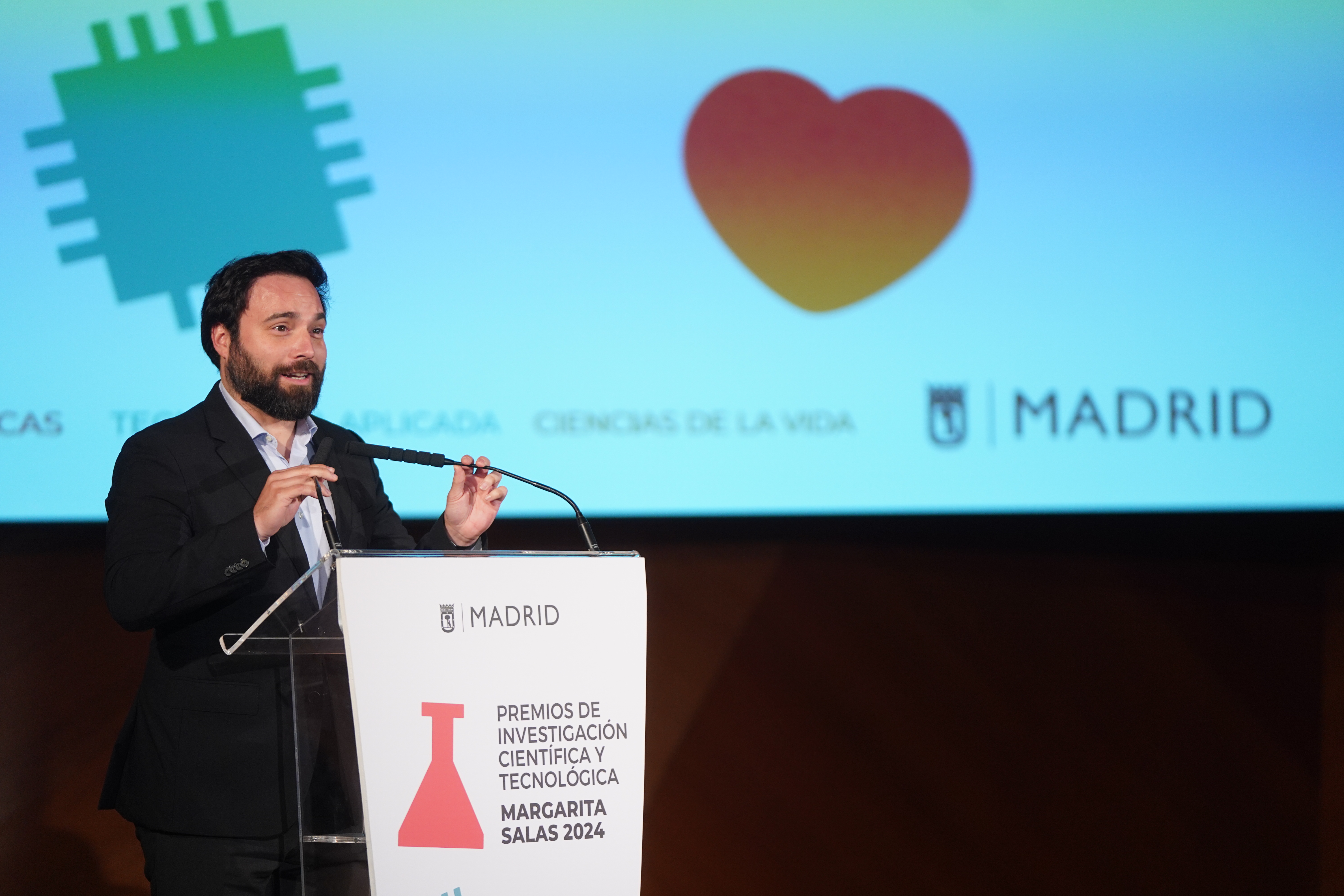 La ceremonia, celebrada en el auditorio de la Caja de Música de CentroCentro, ha estado conducida por el divulgador científico Javier Santaolalla y ha contado con la presencia de la titular del Área de Economía, Innovación y Hacienda, Engracia Hidalgo, y del concejal delegado de Innovación y Emprendimiento, Ángel Niño, y la participación de Lucía Viñuela, hija de Margarita Salas, que preside la Fundación que lleva su nombre.