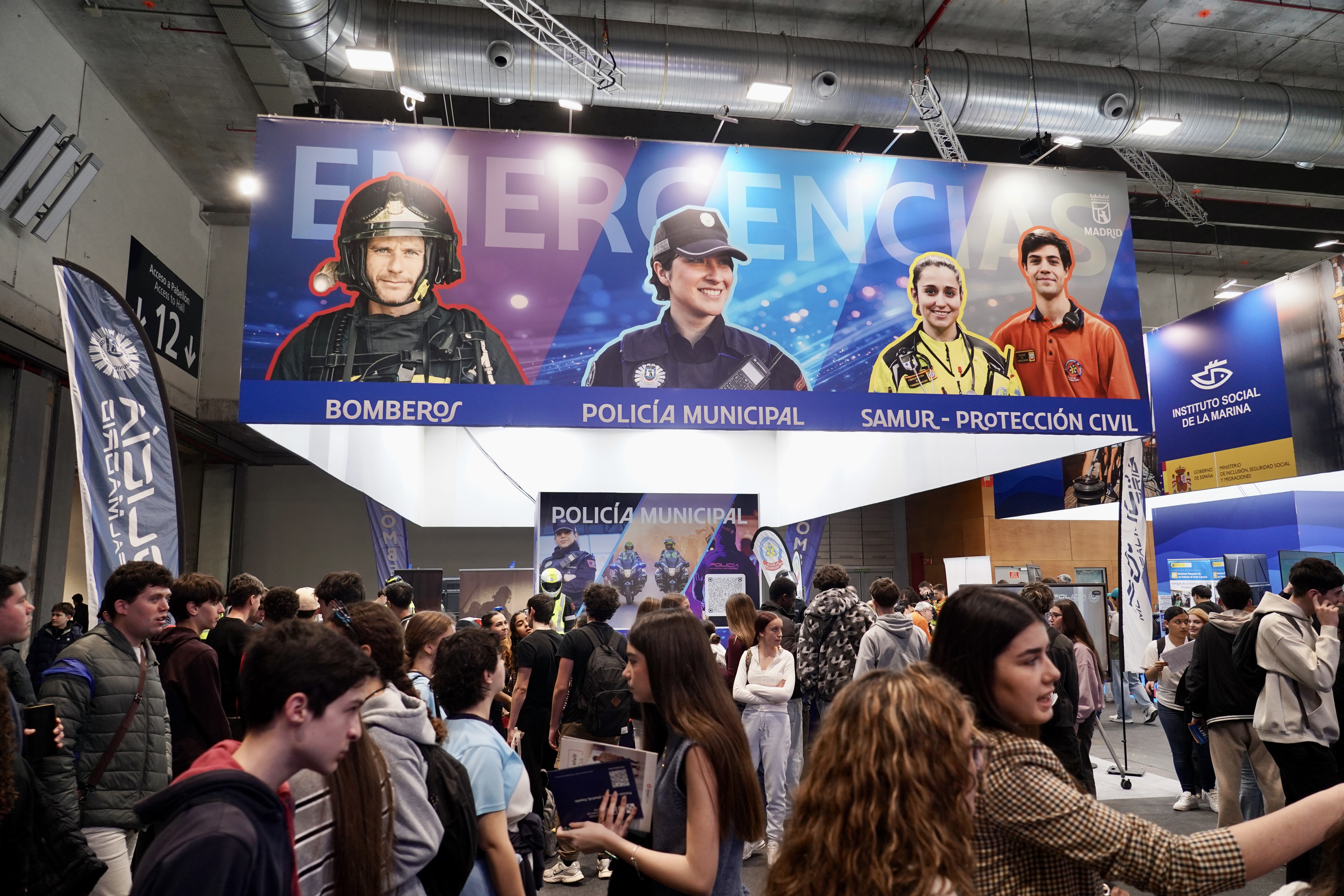 Además de proporcionar información a los estudiantes interesados, en el estand municipal se pueden ver expuestos algunos de los vehículos que utilizan tanto Bomberos como Policía Municipal y SAMUR-Protección Civil, así como maniquíes con uniformes de los tres servicios y pantallas con imágenes de las labores que realizan.