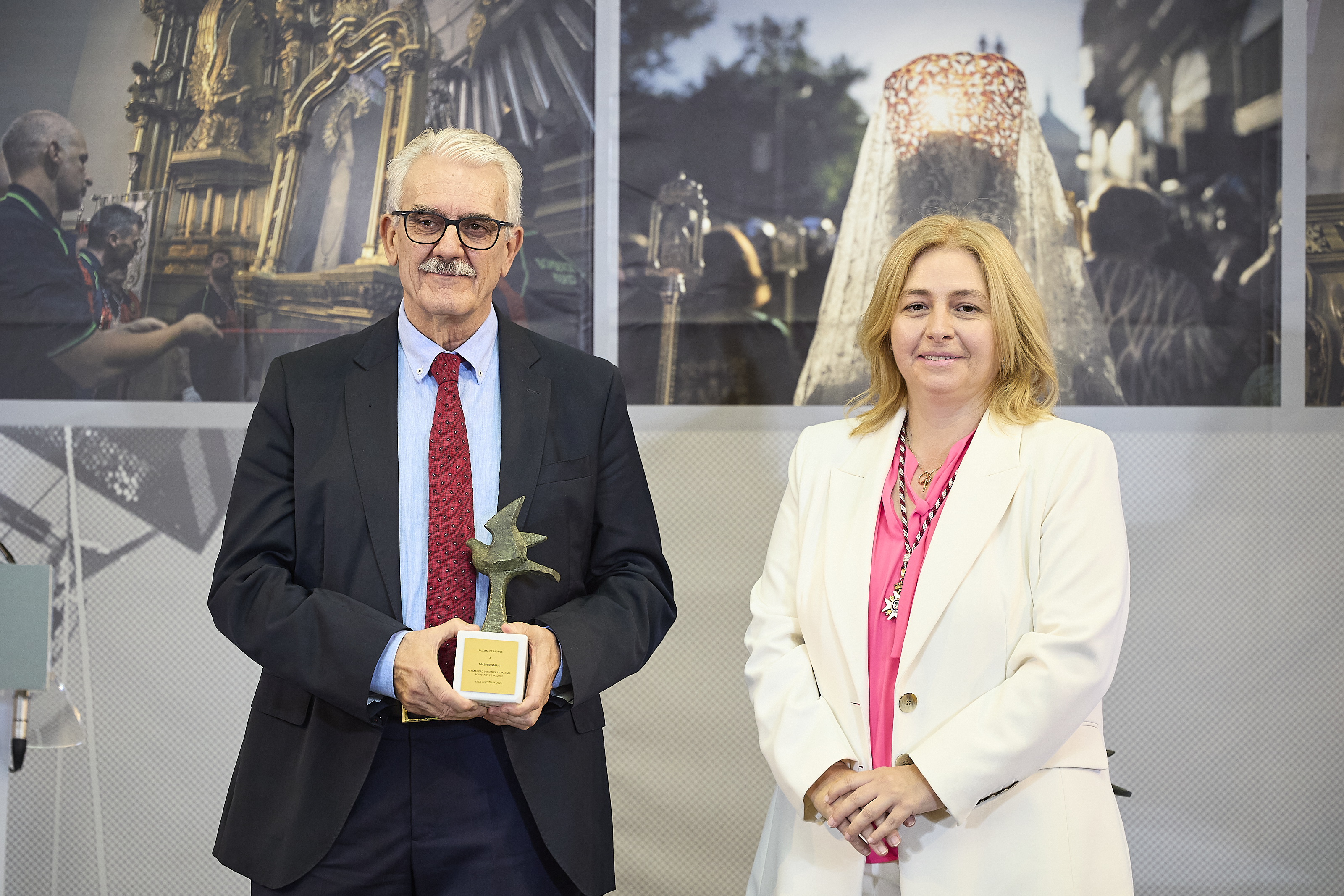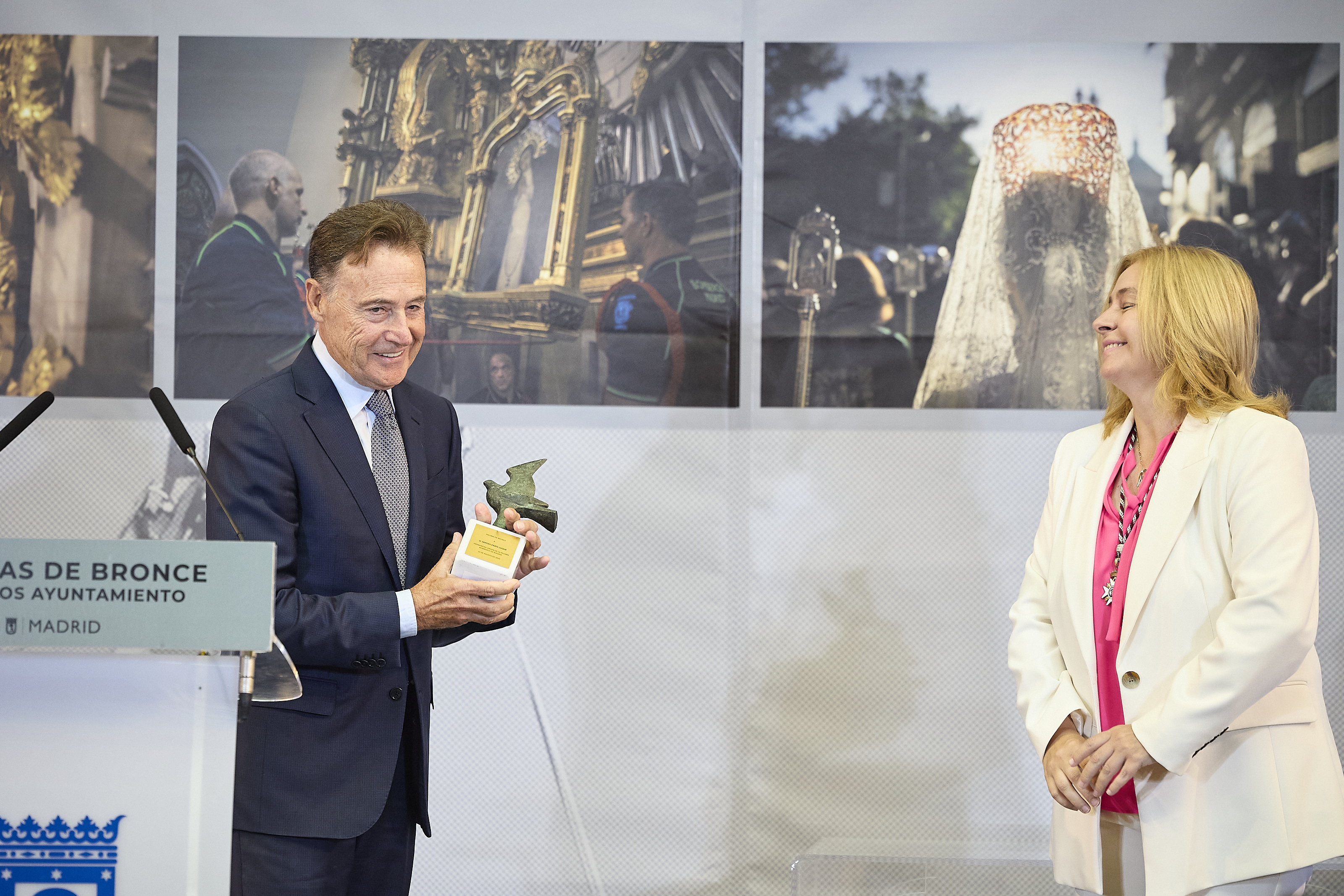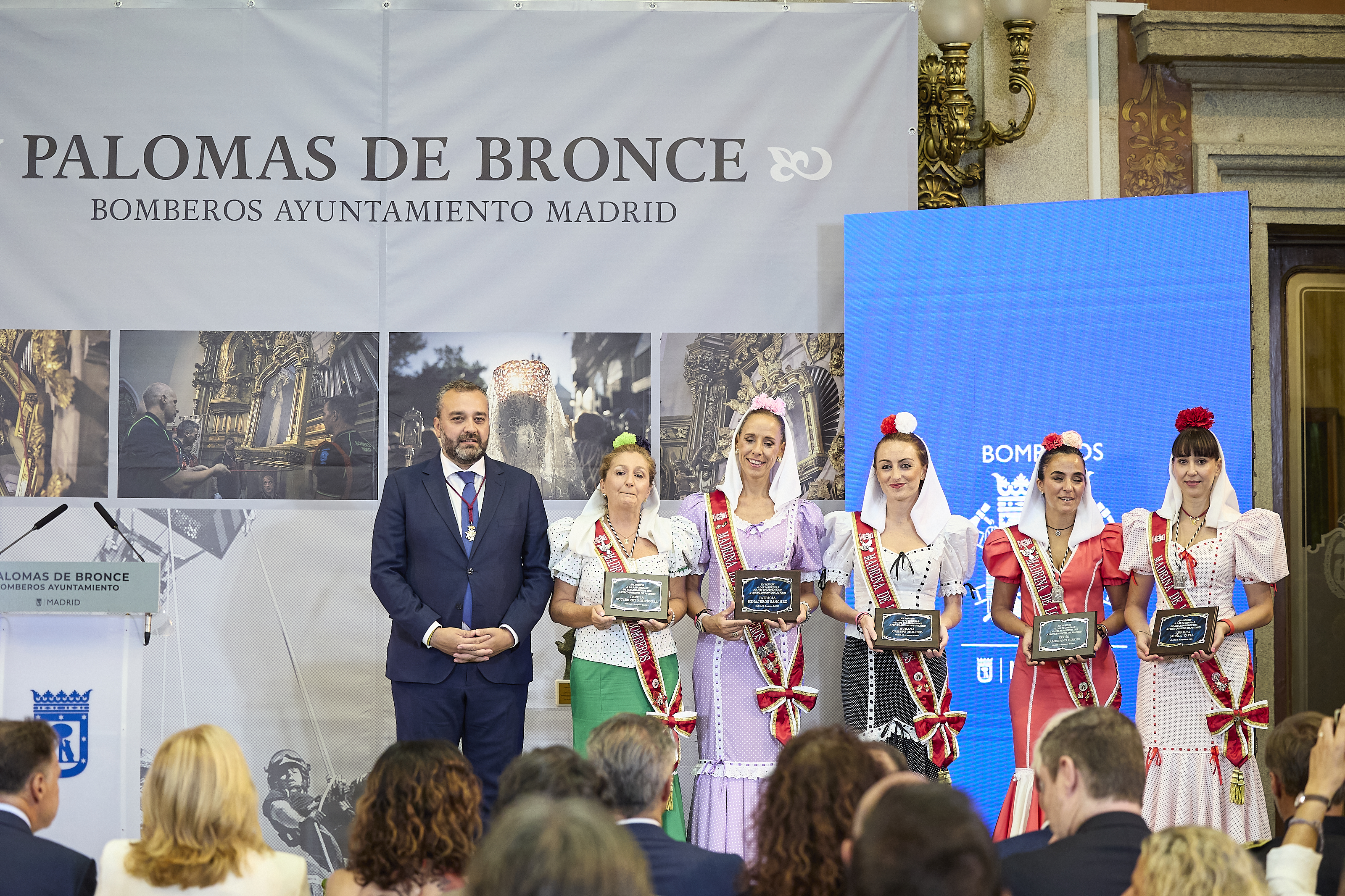 Sanz ha hecho entrega de las ‘Palomas de Bronce-Bomberos de Madrid 2025’, que este año han recaído en Alfredo Vaquerizo Rodríguez, sargento jubilado con más de 40 años de servicio, reconocido por una trayectoria profesional de dedicación al Cuerpo de Bomberos; en Madrid Salud, por su 25º aniversario y la labor que desempeñan en la ciudad de Madrid, además de la estrecha colaboración que mantienen con el Cuerpo de Bomberos -el reconocimiento lo ha recogido el gerente, Antonio Prieto-; y en Matías Prats Luque, por sus 50 años de labor de servicio público desarrollada en sus informativos.