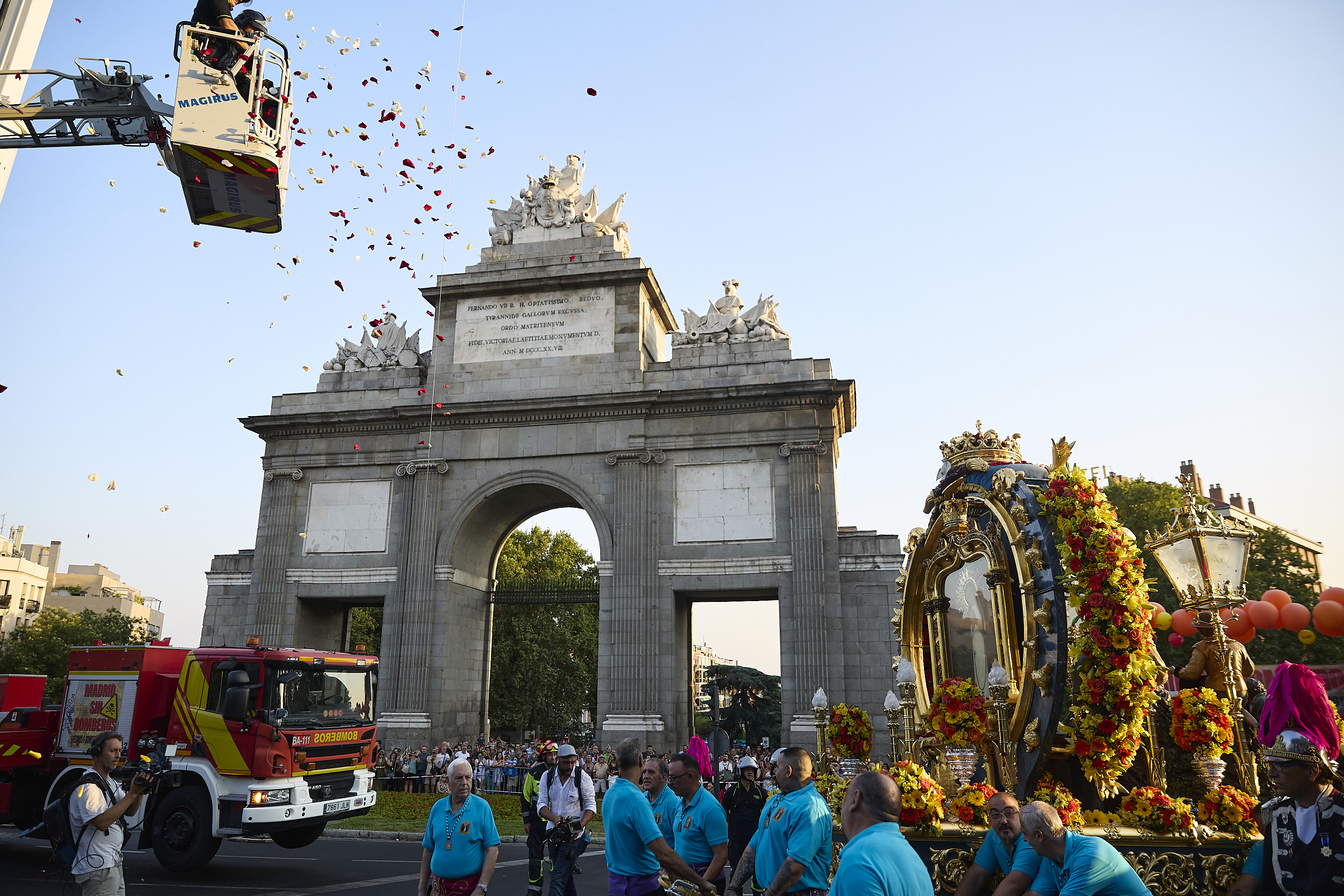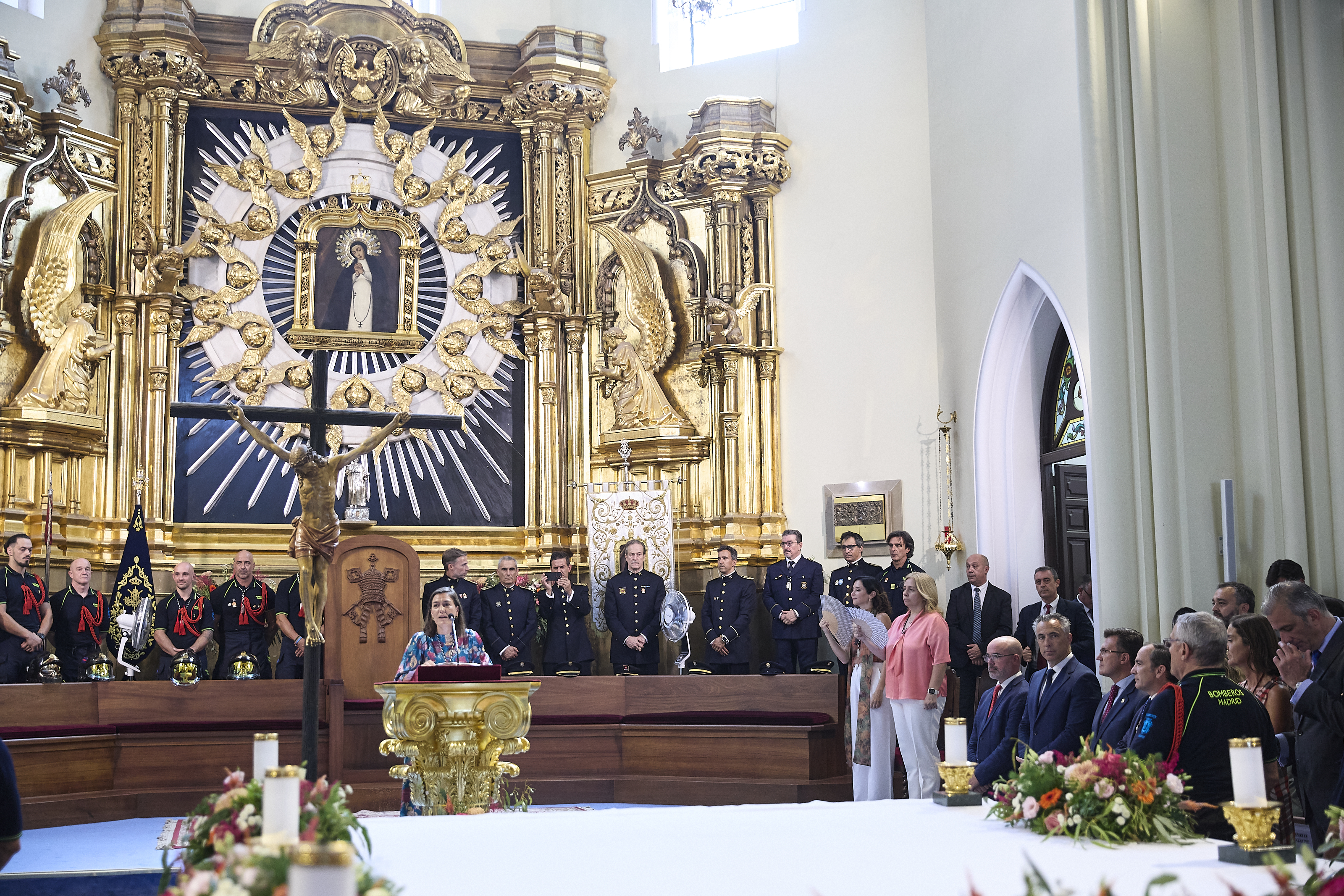 La vicealcaldesa de Madrid y alcaldesa en funciones, Inma Sanz, ha asistido esta mañana, en el Patio de Cristales de la Casa de la Villa, a los actos conmemorativos en honor de la Virgen de la Paloma, patrona del Cuerpo de Bomberos de Madrid, a quien ha pedido “como cada 15 de agosto, que nos proteja a todos bajo su manto, pero, en esta ocasión, le rogamos especialmente que guarde y asista a los bomberos de toda España que están haciendo frente a los incendios que castigan a nuestro país”.
