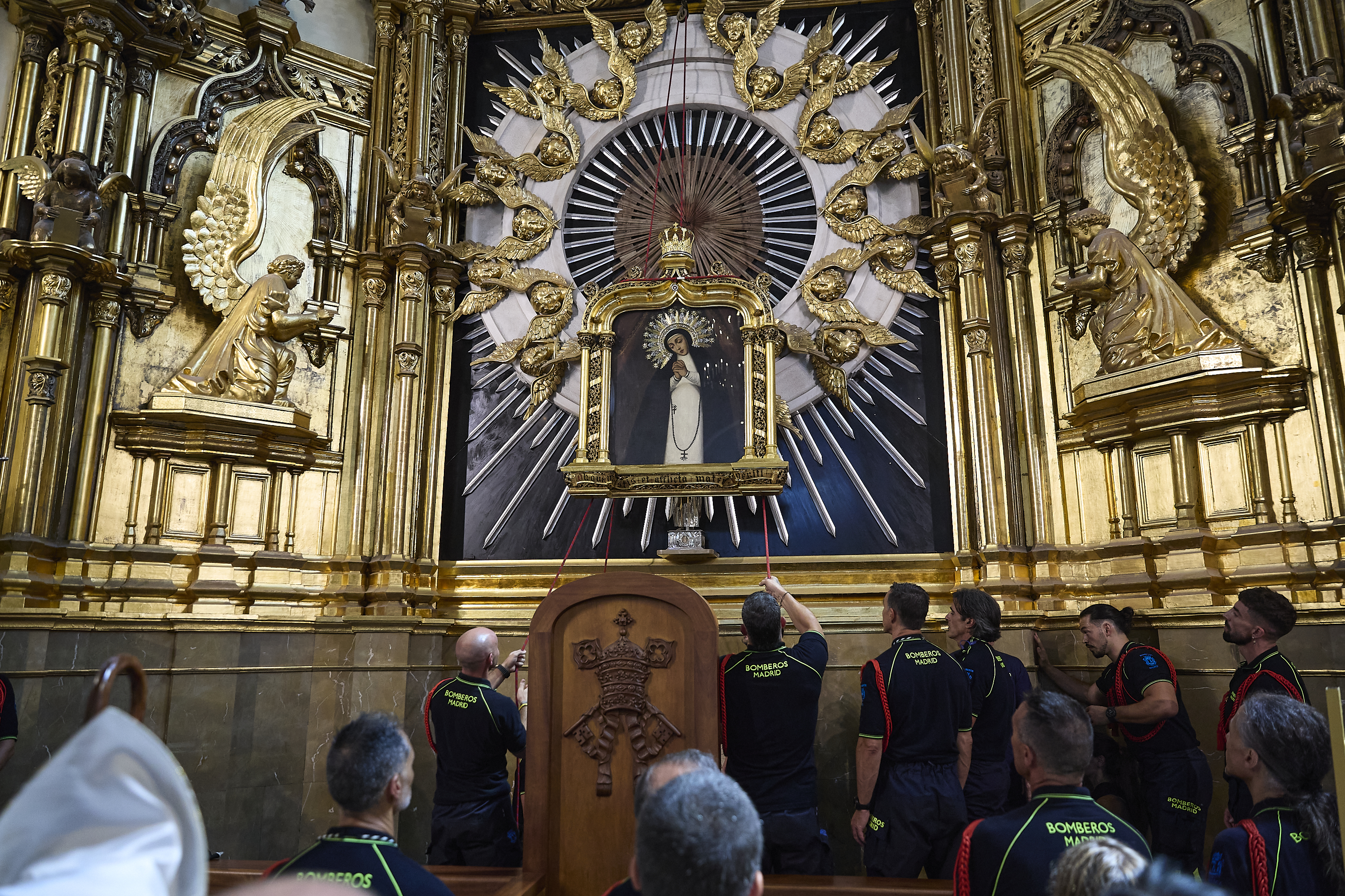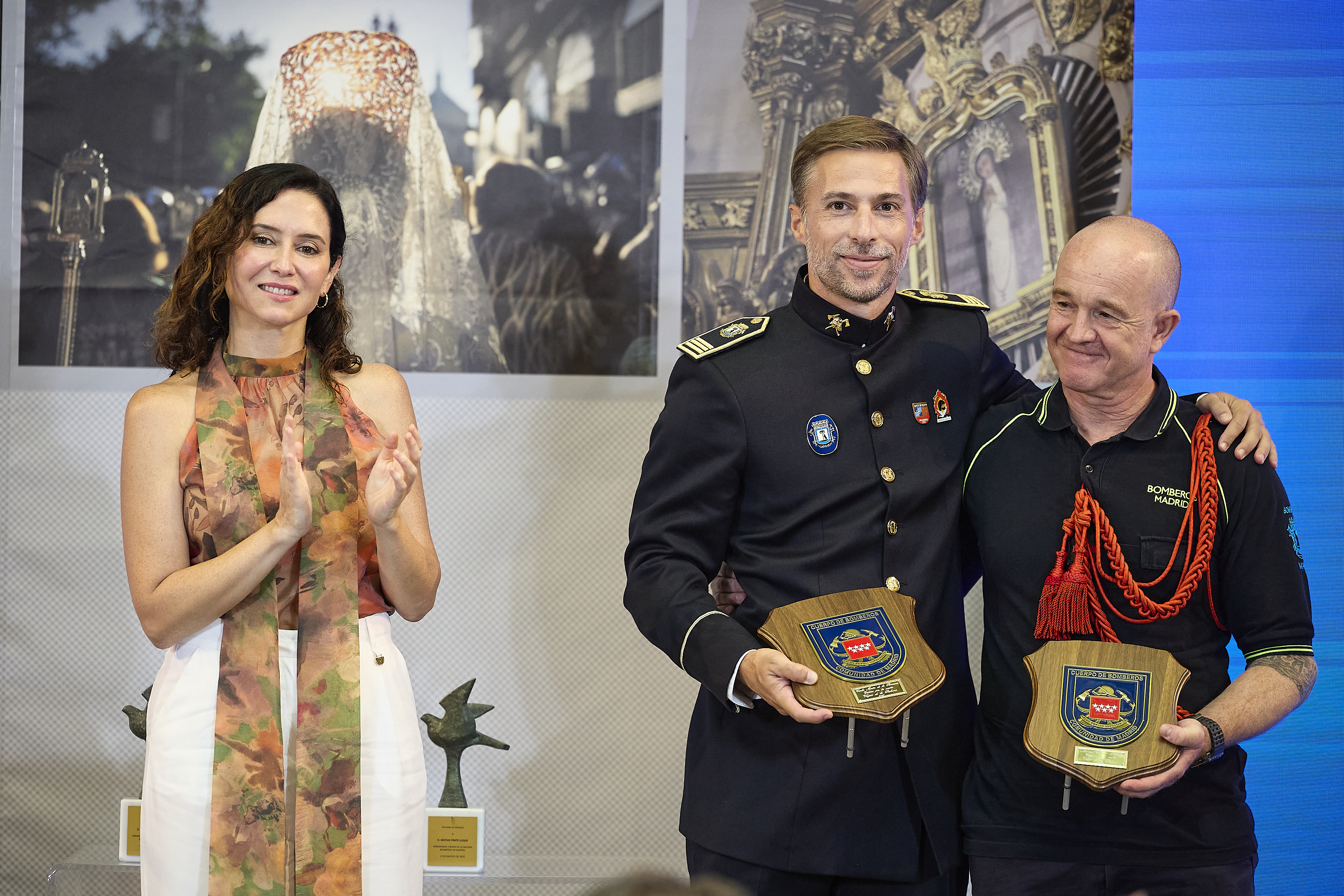Además, se han entregado los reconocimientos a las madrinas que acompañarán a los miembros de la Hermandad de la Virgen de la Paloma y, por parte del Cuerpo de Bomberos de la Comunidad de Madrid, la presidenta Isabel Díaz Ayuso ha entregado un obsequio a Manuel Cerrillo Paredes, bombero del Ayuntamiento encargado este año del descenso del cuadro de la Virgen y a Carlos Marín de la Bárcena, jefe del Cuerpo de Bomberos municipal.