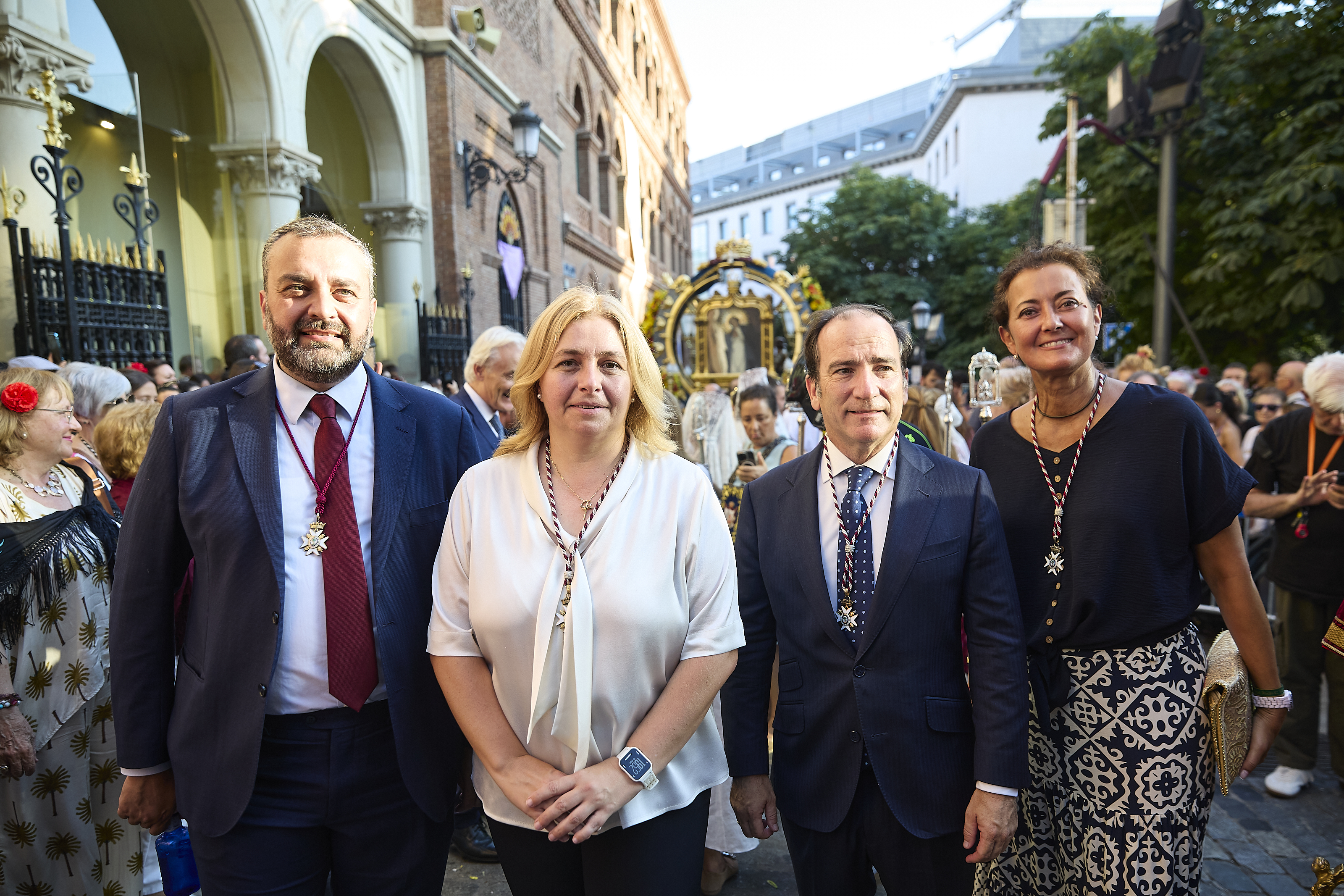 Por la tarde, Sanz y otros representantes municipales participan en la procesión de la Virgen, que recorre las calles aledañas a la iglesia./