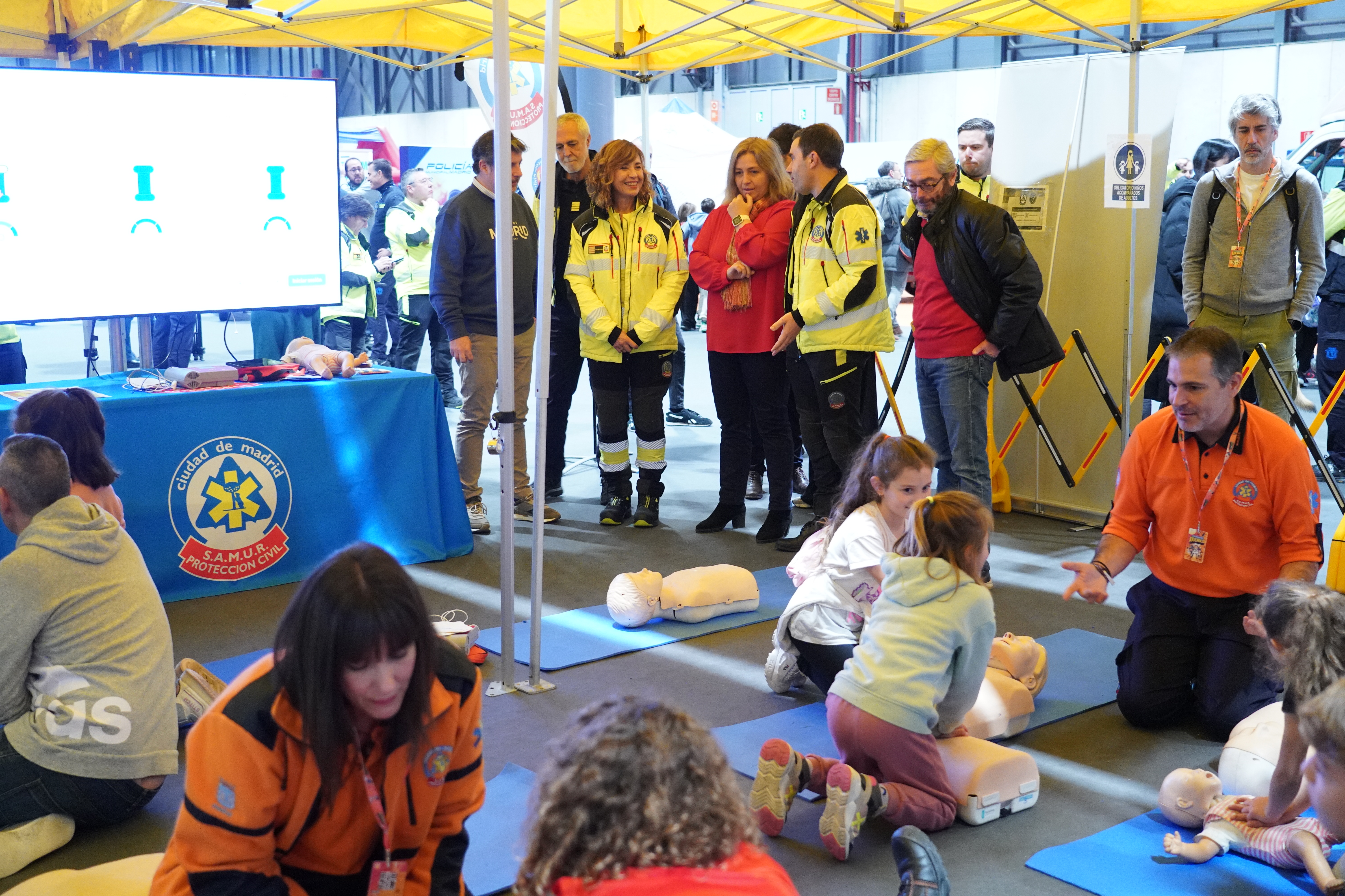SAMUR-PC, mientras, realiza diferentes talleres, actividades y juegos para enseñar a los niños qué deben hacer como primer eslabón de la cadena de la vida ante una emergencia sanitaria. Hay un circuito de conducción con cuatro de sus vehículos en miniatura y se exponen parte de los reales y se ha organizado un juego de la oca gigante en el que se enseñan maniobras sanitarias a los jóvenes visitantes. /