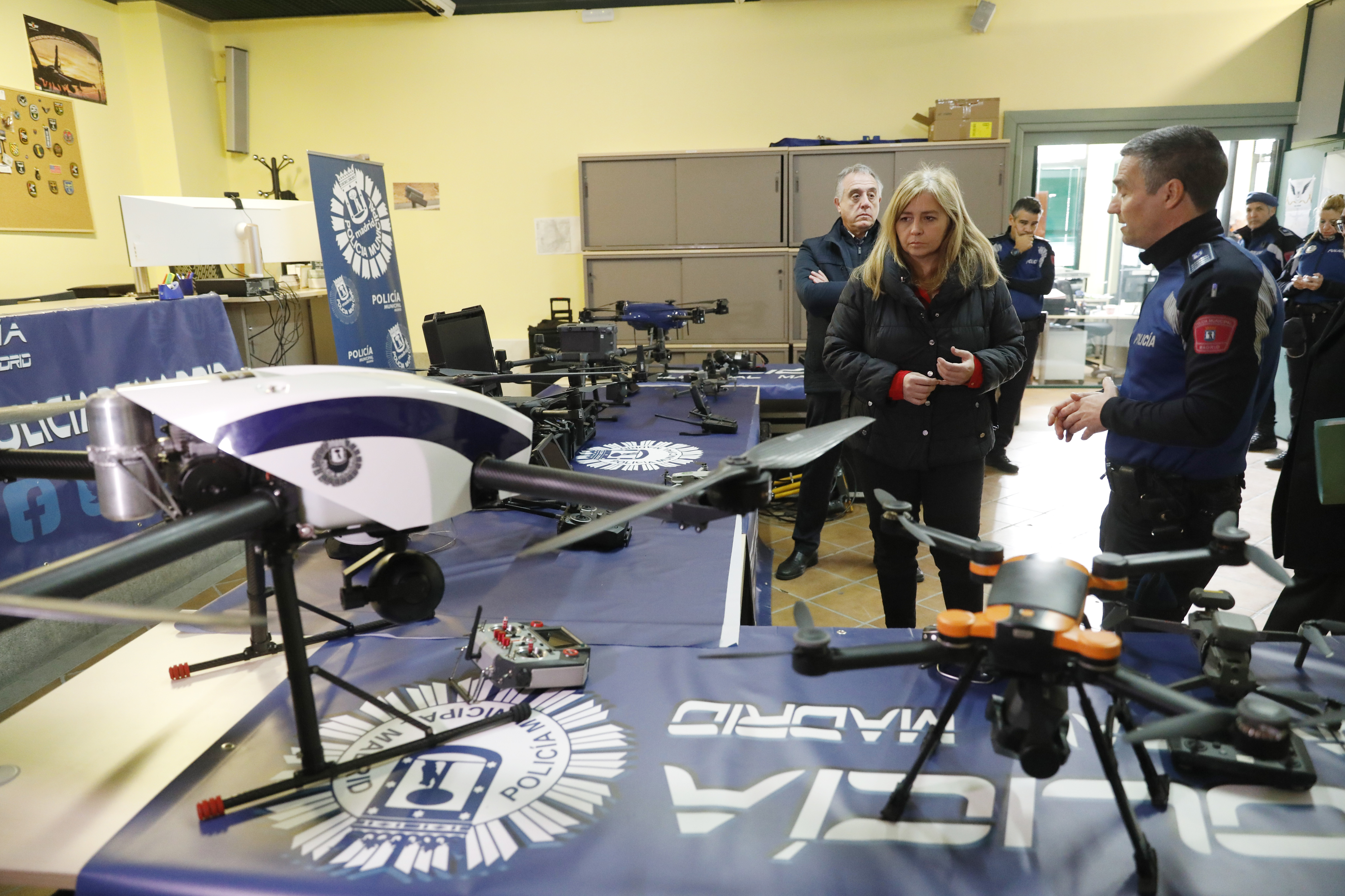 El trabajo de los drones de la Policía Municipal de Madrid cada vez es más importante en cualquier servicio que se realiza en las vías públicas de la capital, y cada vez son más demandados por los responsables de los operativos que se desarrollan, y no solo policiales. De ahí la creciente relevancia de la Sección de Apoyo Aéreo del Cuerpo, constituida en este mandato (oficialmente en diciembre de 2020), como ha destacado la delegada de Seguridad y Emergencias y portavoz del Ayuntamiento, Inmaculada Sanz, durante una visita a sus instalaciones.