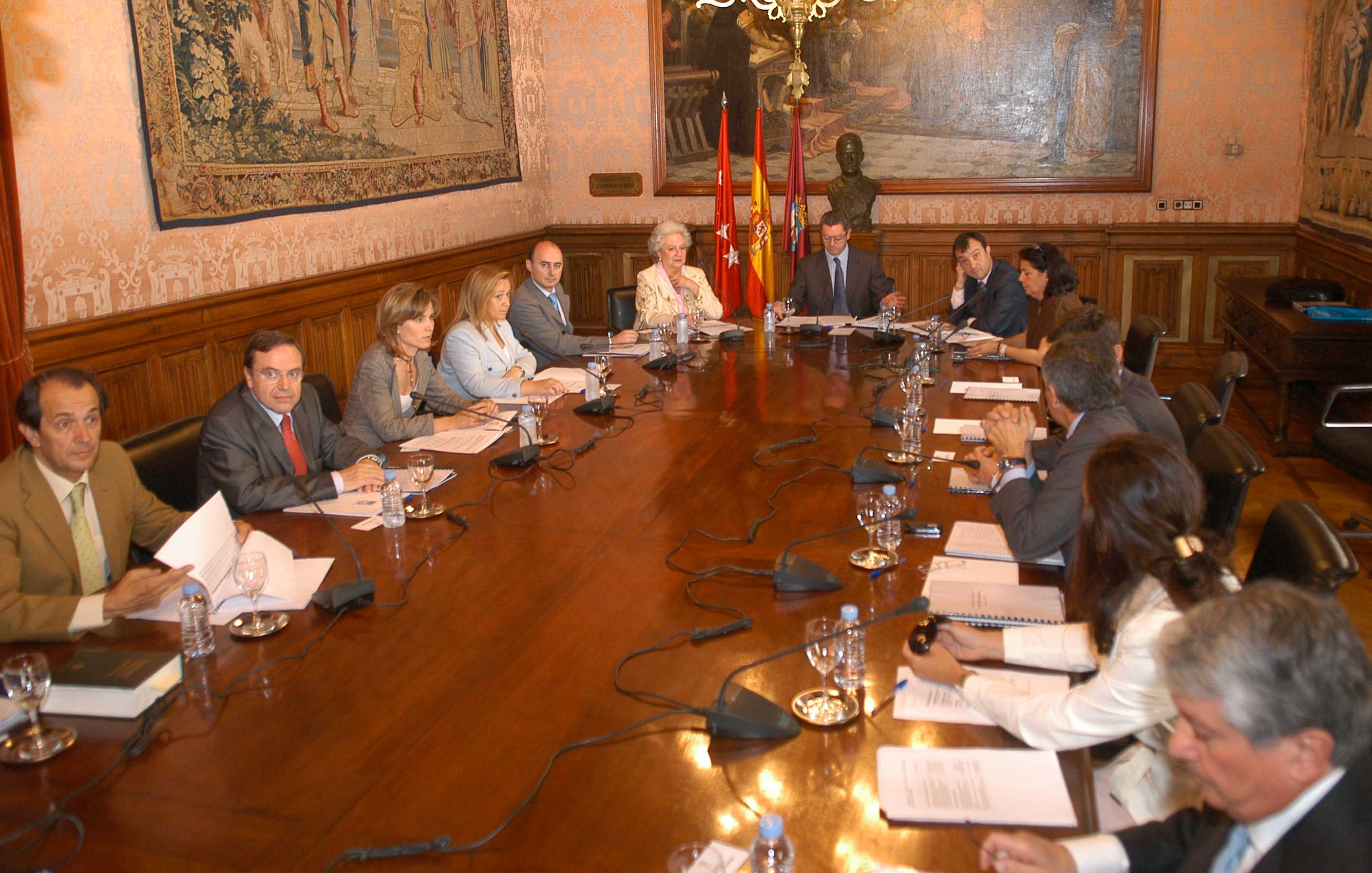 Miembros del Patronato de Madrid 16 durante la reunión que han mantenido esta mañana en el Ayuntamiento