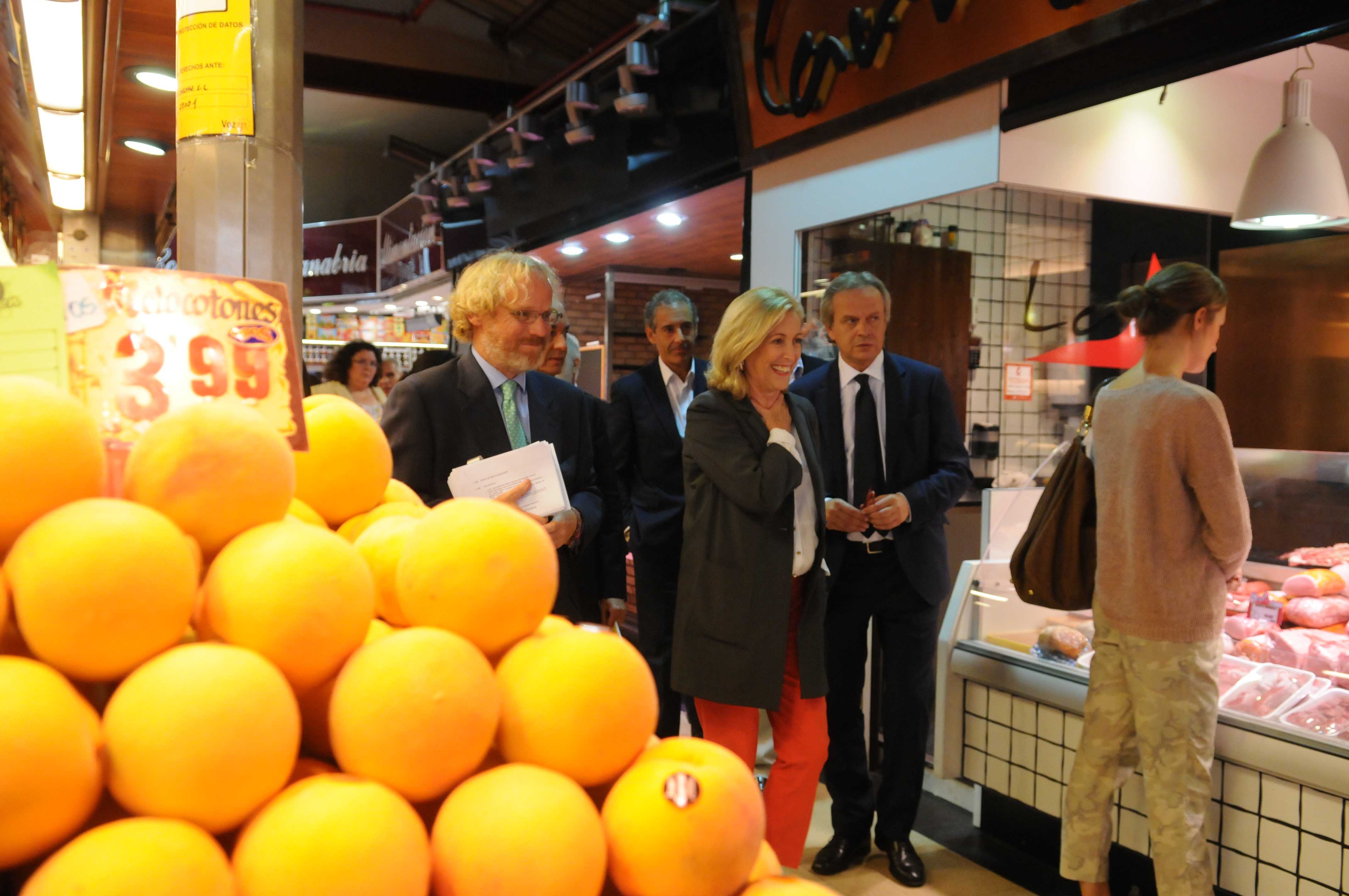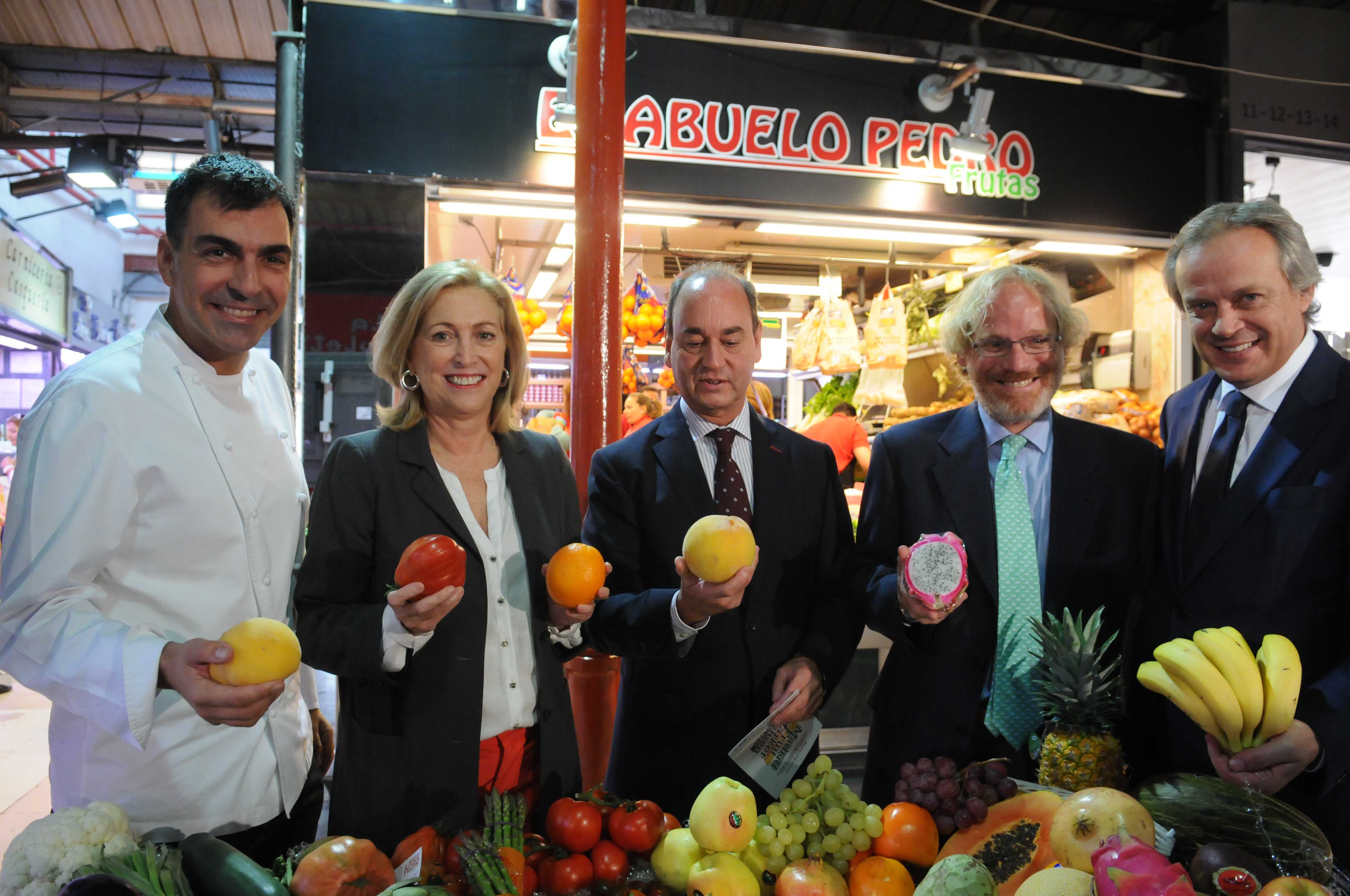 La delegada de Economía, Hacienda y Administración Pública, Concepción Dancausa, ha visitado hoy el Mercado de la Paz, escenario elegido por el Ayuntamiento de Madrid para presentar el Madrid Fruit Market Fashion Week (Semana de la Fruta de los Mercados), que se celebrará del 15 al 19 de octubre en 26 mercados de la ciudad. En su visita ha estado acompañada por diversos representantes de los mercados, por miembros de la asociación “5 al día” –que promueve el consumo diario de frutas y hortalizas frescas- y por el cocinero Ramón Freixa, entre otros.