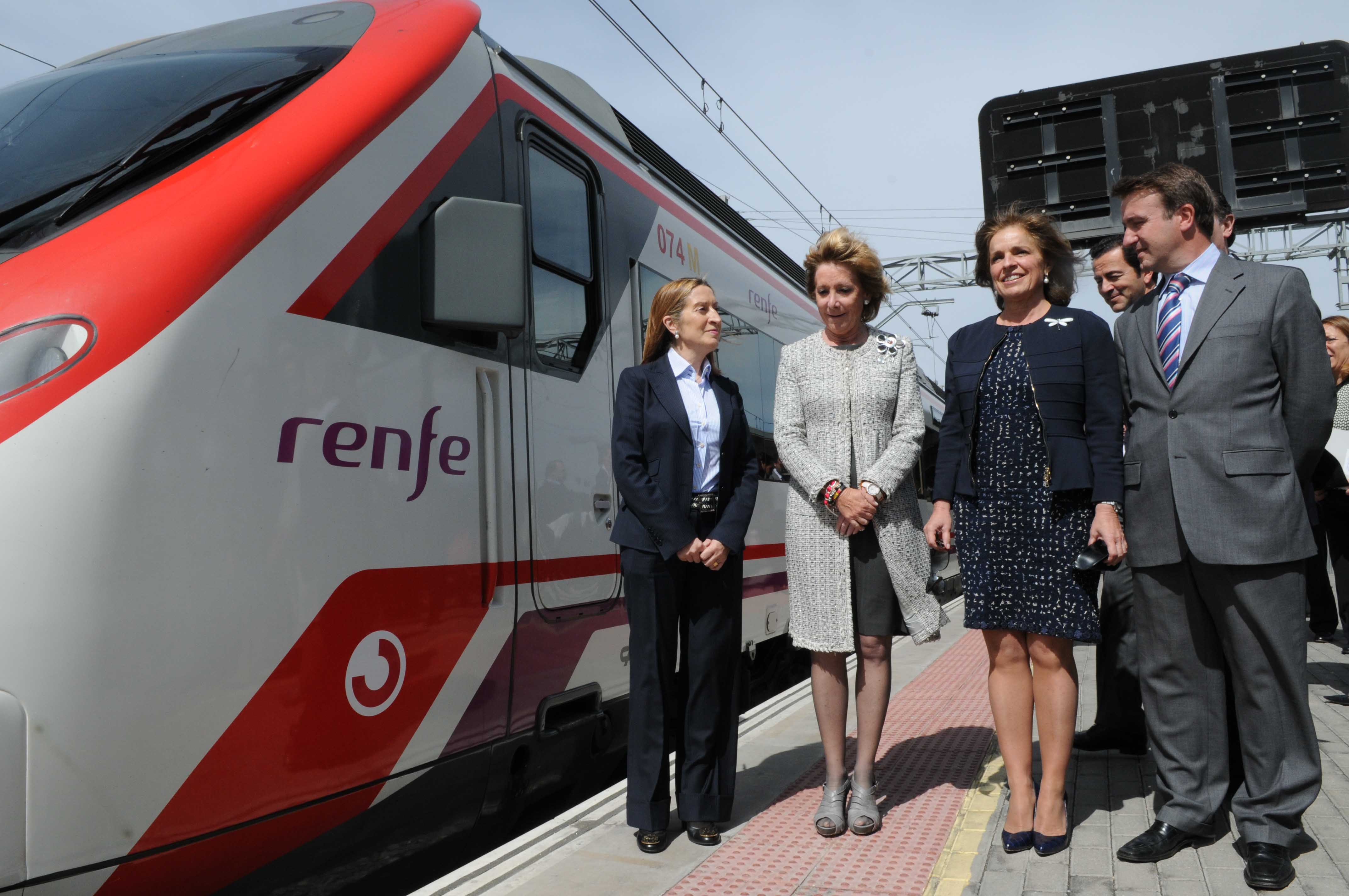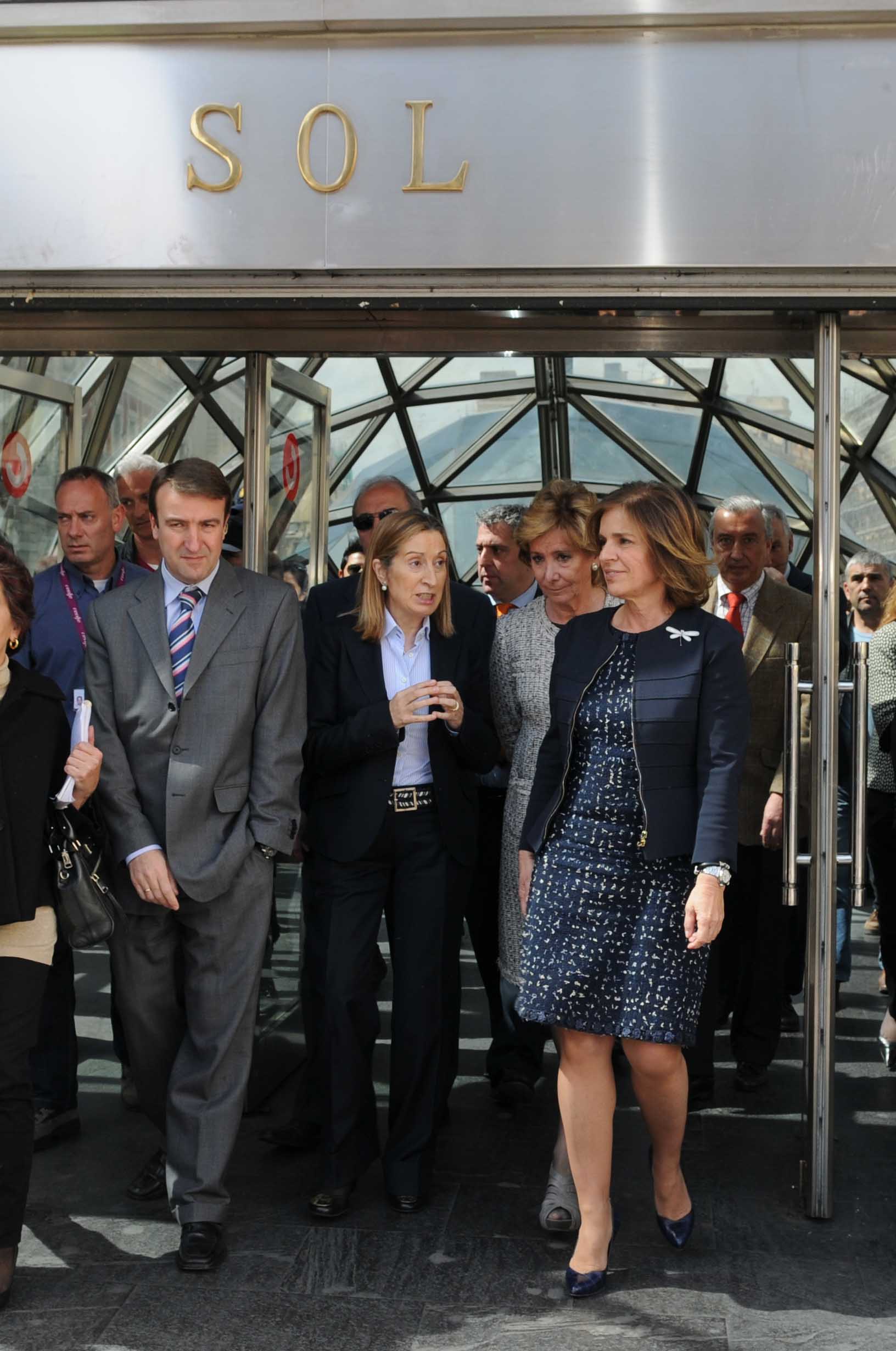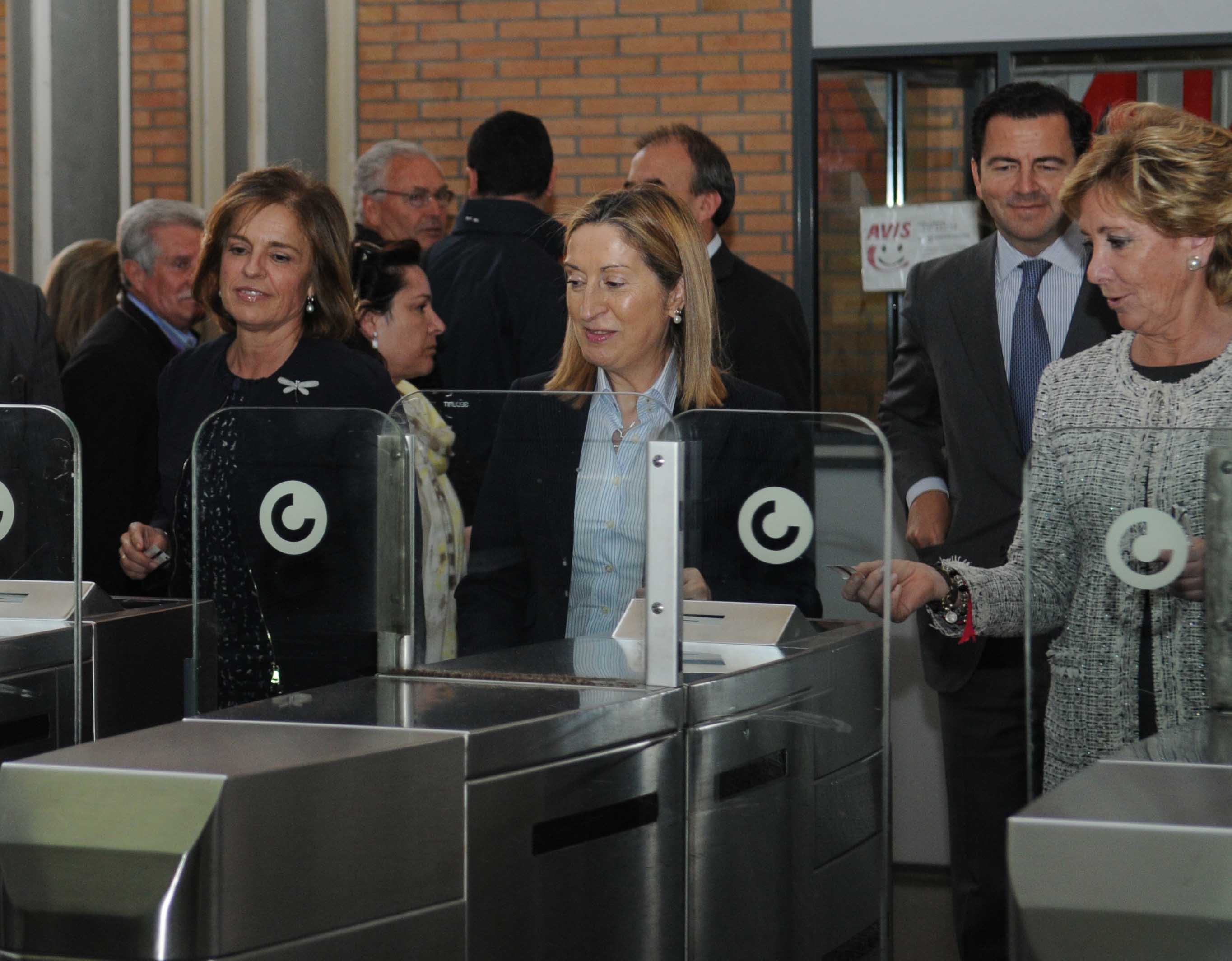 La alcaldesa de Madrid, Ana Botella, junto con la presidenta regional, Esperanza Aguirre, ha acompañado a la ministra de Fomento, Ana Pastor, en la presentación del sistema de señalización para trenes de Cercanías, conocido como ERTMS ( Sistema Europeo de Gestión de Trenes) y que es el mismo que acaba de implantarse en el AVE entre Madrid y Barcelona. Esta es la primera vez en Europa que este sistema de señalización, que hace más seguros los viajes, se implanta en un servicio de Cercanías. A partir de esta experiencia se irá implantando gradualmente en las líneas de Cercanías con mayor tráfico de viajeros. El sistema se ha presentado durante un trayecto de la línea C-4 que, partiendo de la estación del municipio de Tres Cantos, ha concluido en el corazón de la ciudad, en la estación de metro de Sol.