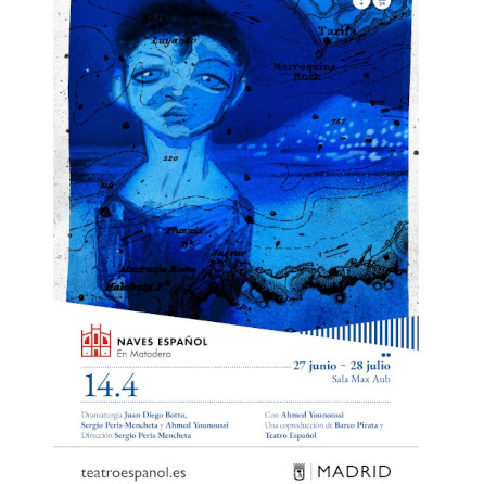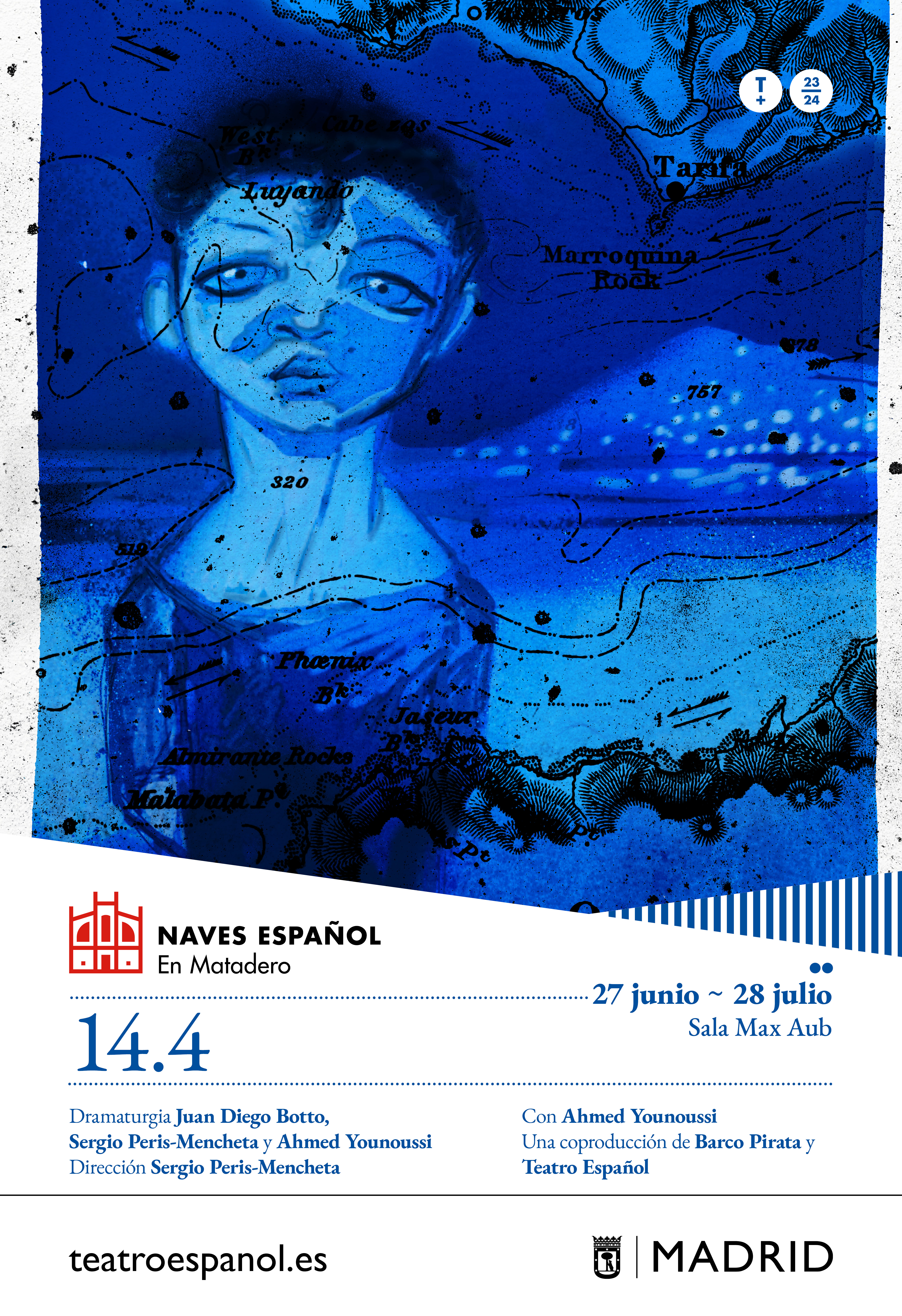 Naves de Matadero, espacio del Área de Cultura, Turismo y Deporte, presenta el estreno en Madrid de 14.4, espectáculo coescrito por Juan Diego Botto, Sergio Peris-Mencheta y Ahmed Younoussi y dirigido por Peris-Mencheta, que podrá verse en la Sala Max Aub del 27 de junio al 28 de julio. La obra es el testimonio, contado en primera persona, de su actor protagonista, Ahmed Younoussi, quien llegó a España de niño, escondido en los bajos de un camión.