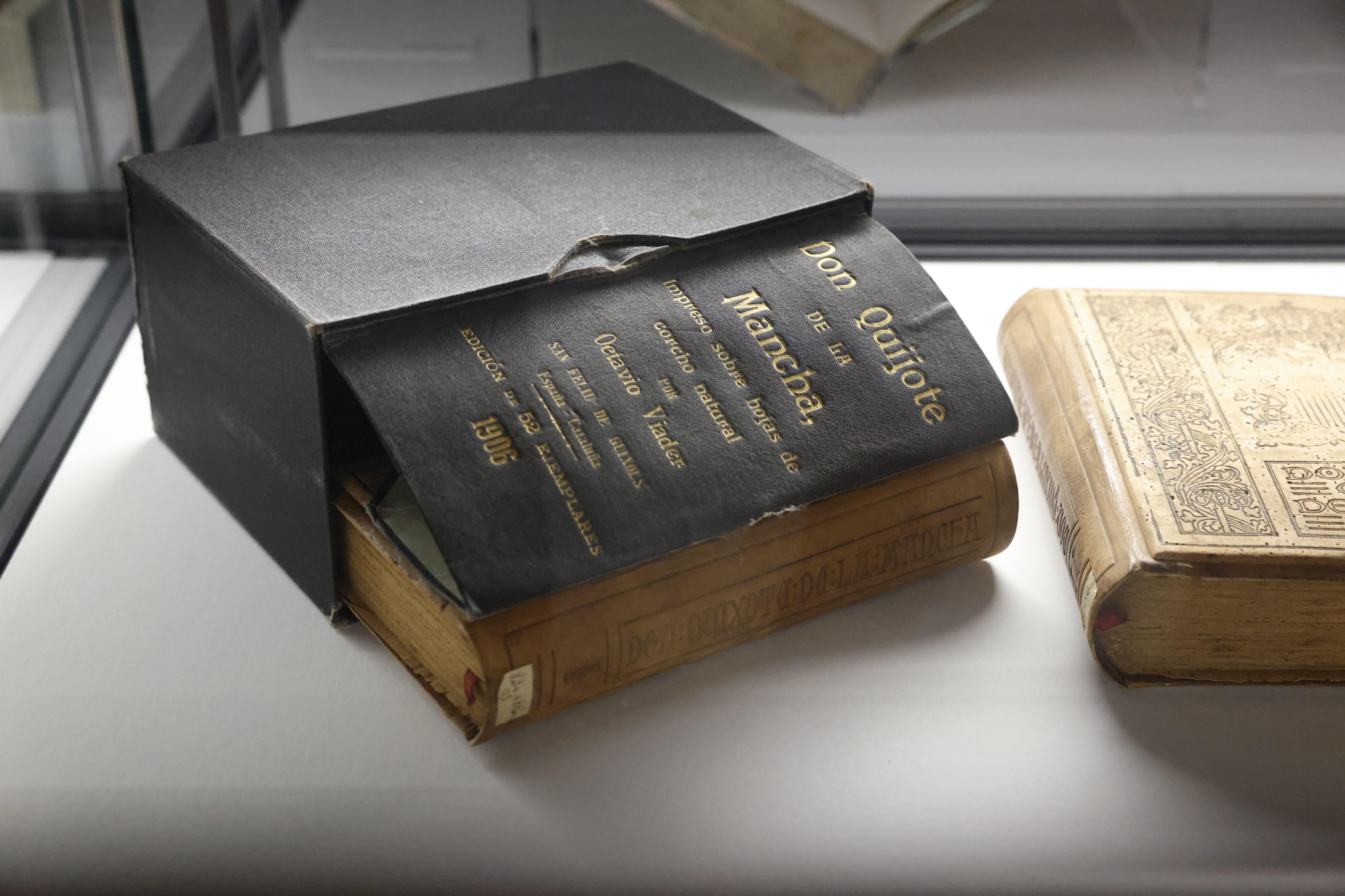 La muestra incluye también ediciones muy cuidadas del siglo XIX, así como la impresión de los primeros Quijotes en miniatura por la imprenta parisina de Juli Didot en 1827. Entre las ediciones del siglo XX, sobresalen un ejemplar de corcho de la casa Viader impreso en 1905; una edición japonesa de 1936 con ilustraciones de Serizawa Keisuke en la que los personajes aparecen como samuráis; o una edición parisina de 1957 con 12 litografías originales de Salvador Dalí.