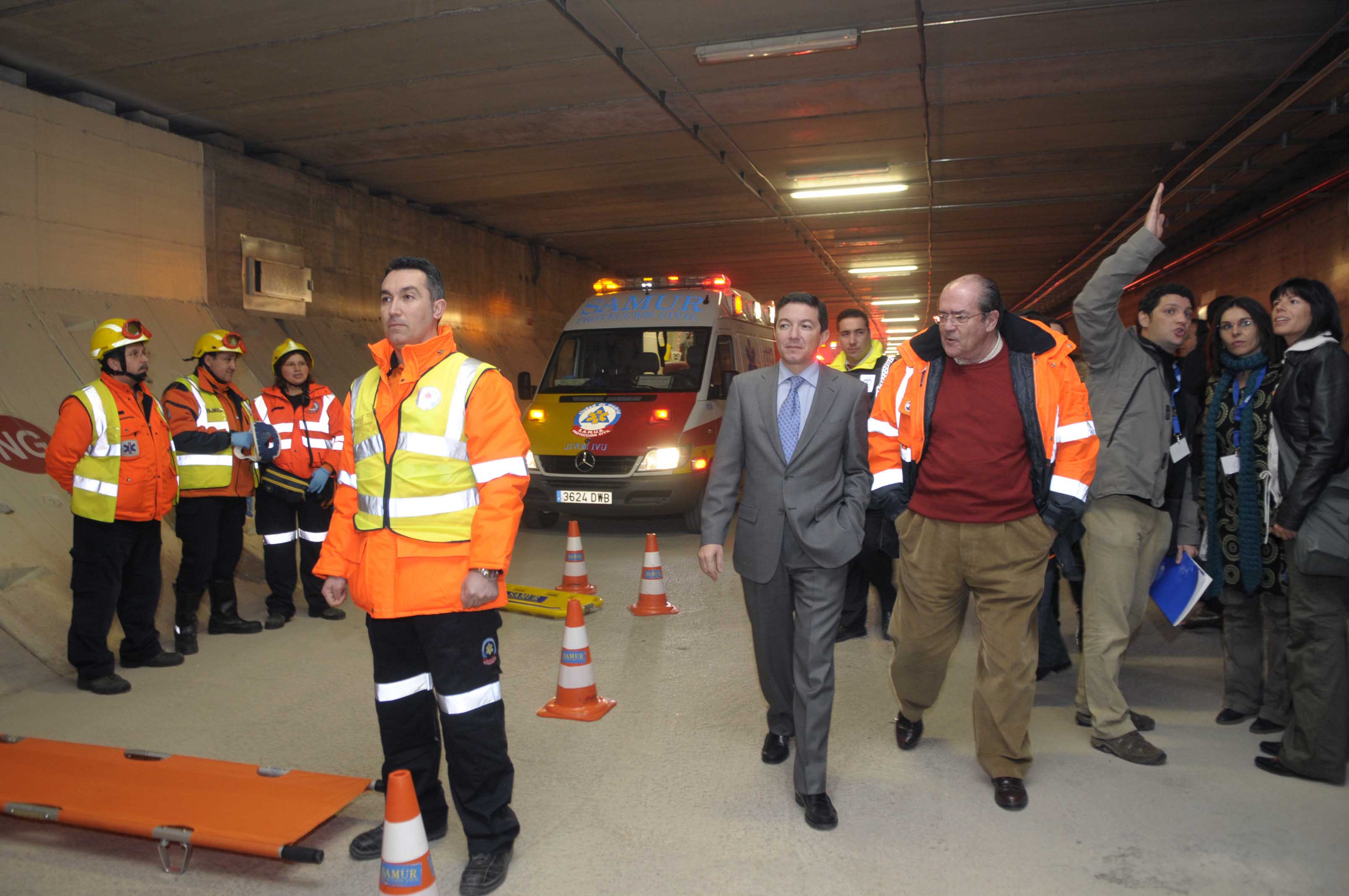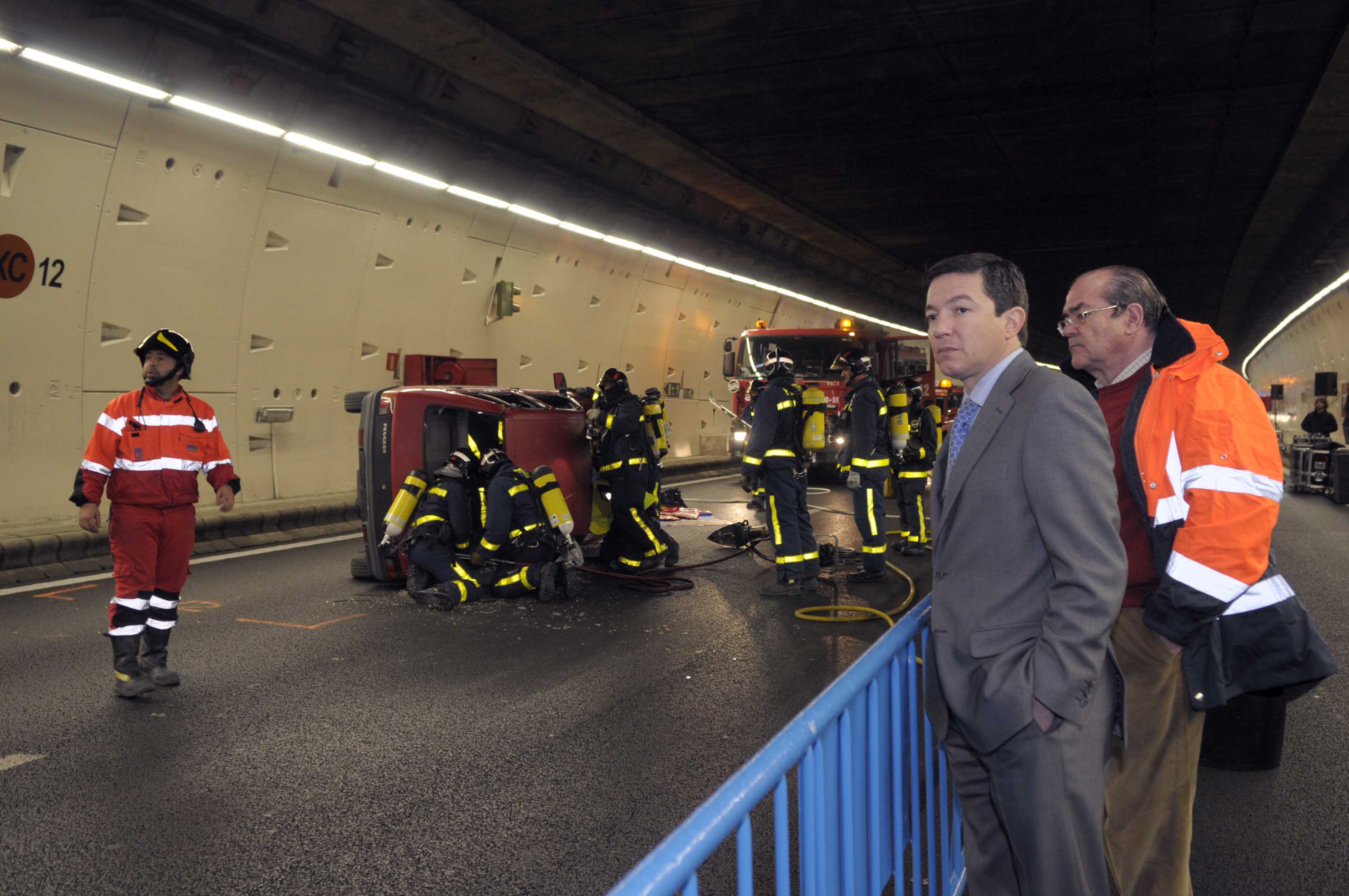 - En esta ocasión se simula un accidente de tráfico en el túnel exterior del by pass sur con vuelco de dos turismos, el incendio de uno de los tres coches implicados en el siniestro y la retención de automóviles tras el suceso