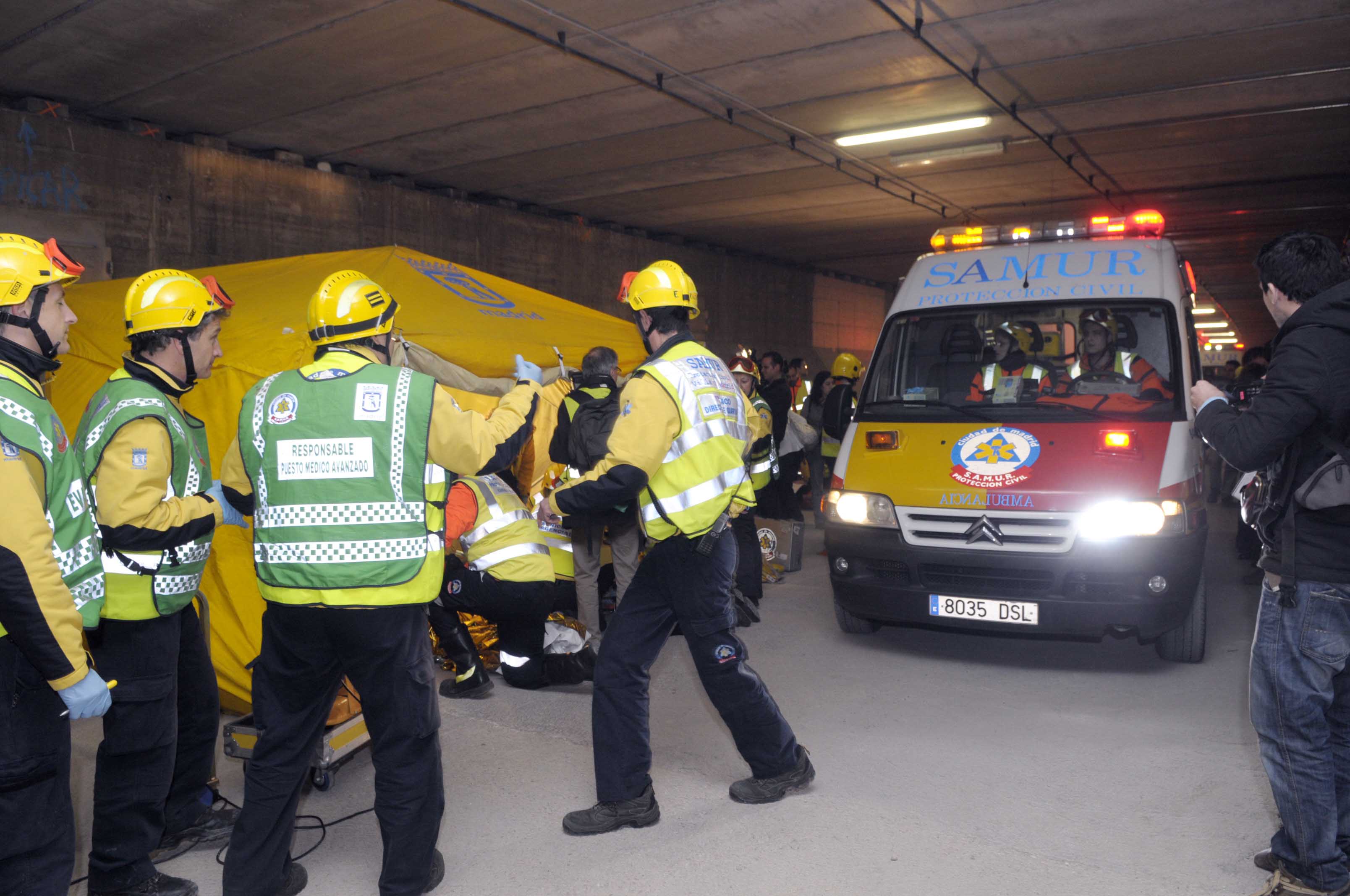 176 personas participan en este simulacro al que el Cuerpo de bomberos ha enviado cuatro bombas, tres coches de mando y 41 bomberos. SAMUR-Protección Civil ha desplazado al lugar del "accidente" 10 ambulancias de soporte vital básico y avanzado, cinco coches de mando, un puesto médico avanzado y 70 personas, mientras que Policía Municipal participa con 11 vehículos y 25 agentes.