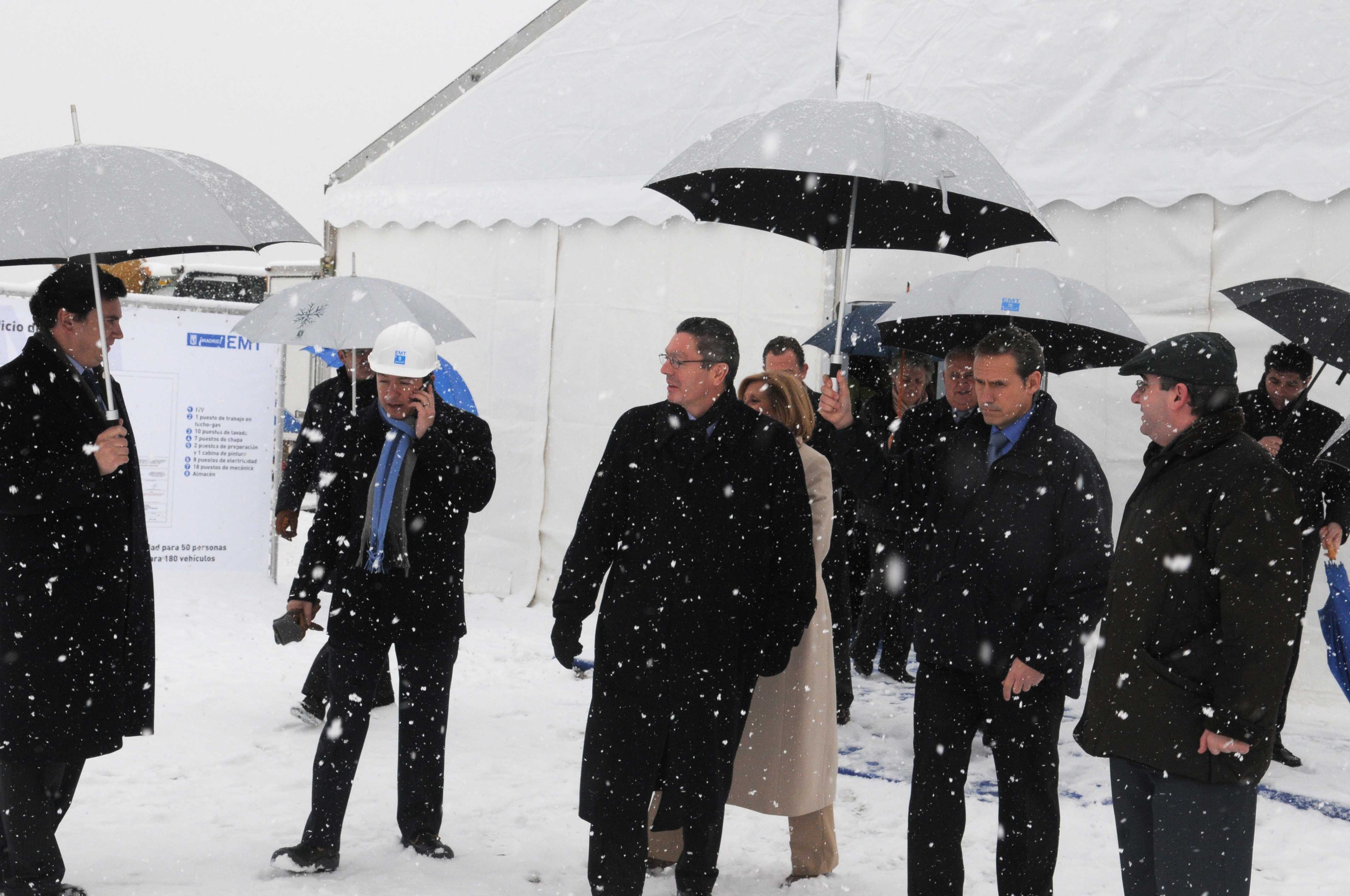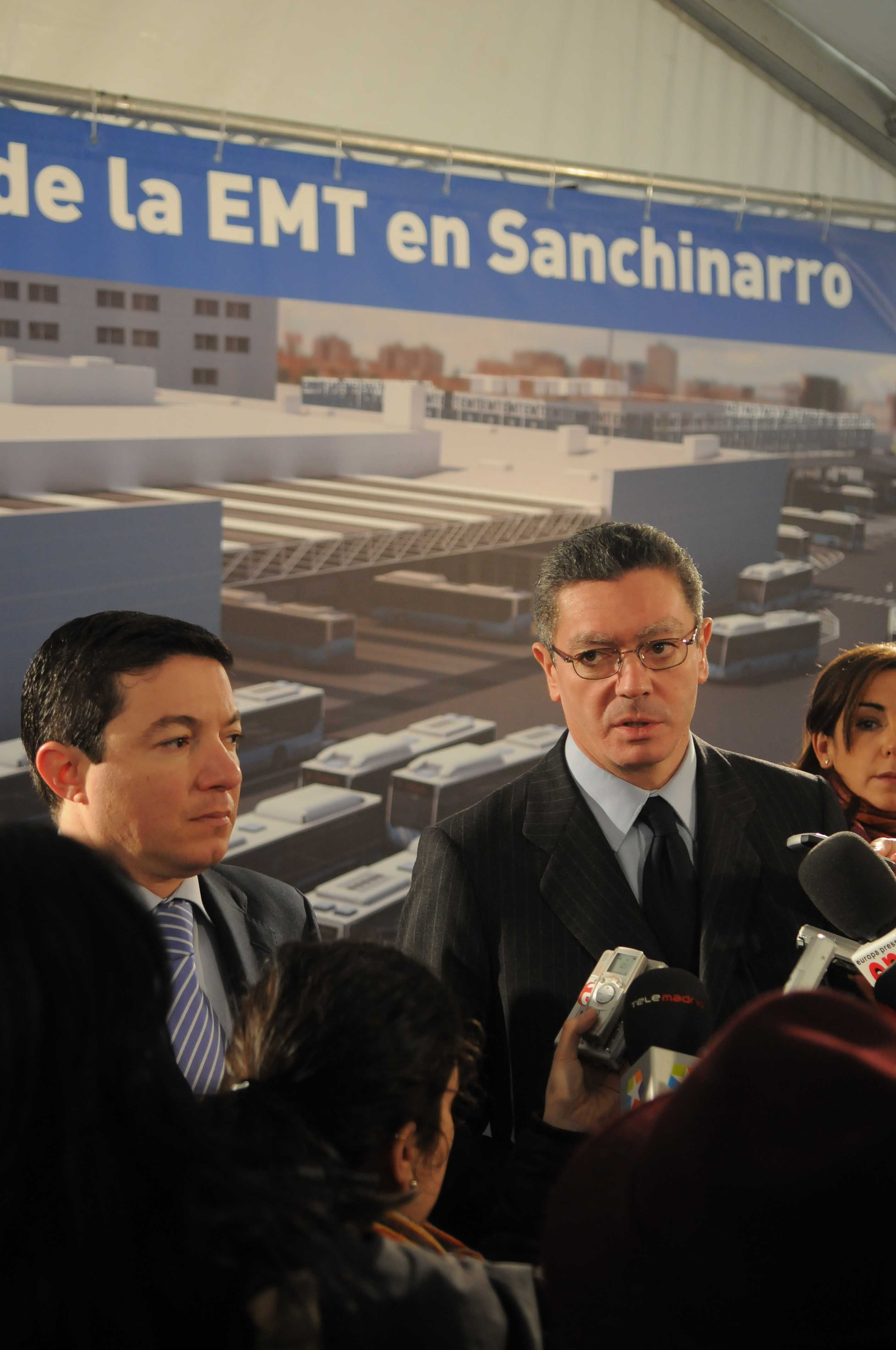 El alcalde de MAdrid, Alberto Ruiz-Gallardón, ha visitado hoy las obras del nuevo Centro de Operaciones de la EMT en Sanchinarro, destinado a vehículos propulsados por gas natural