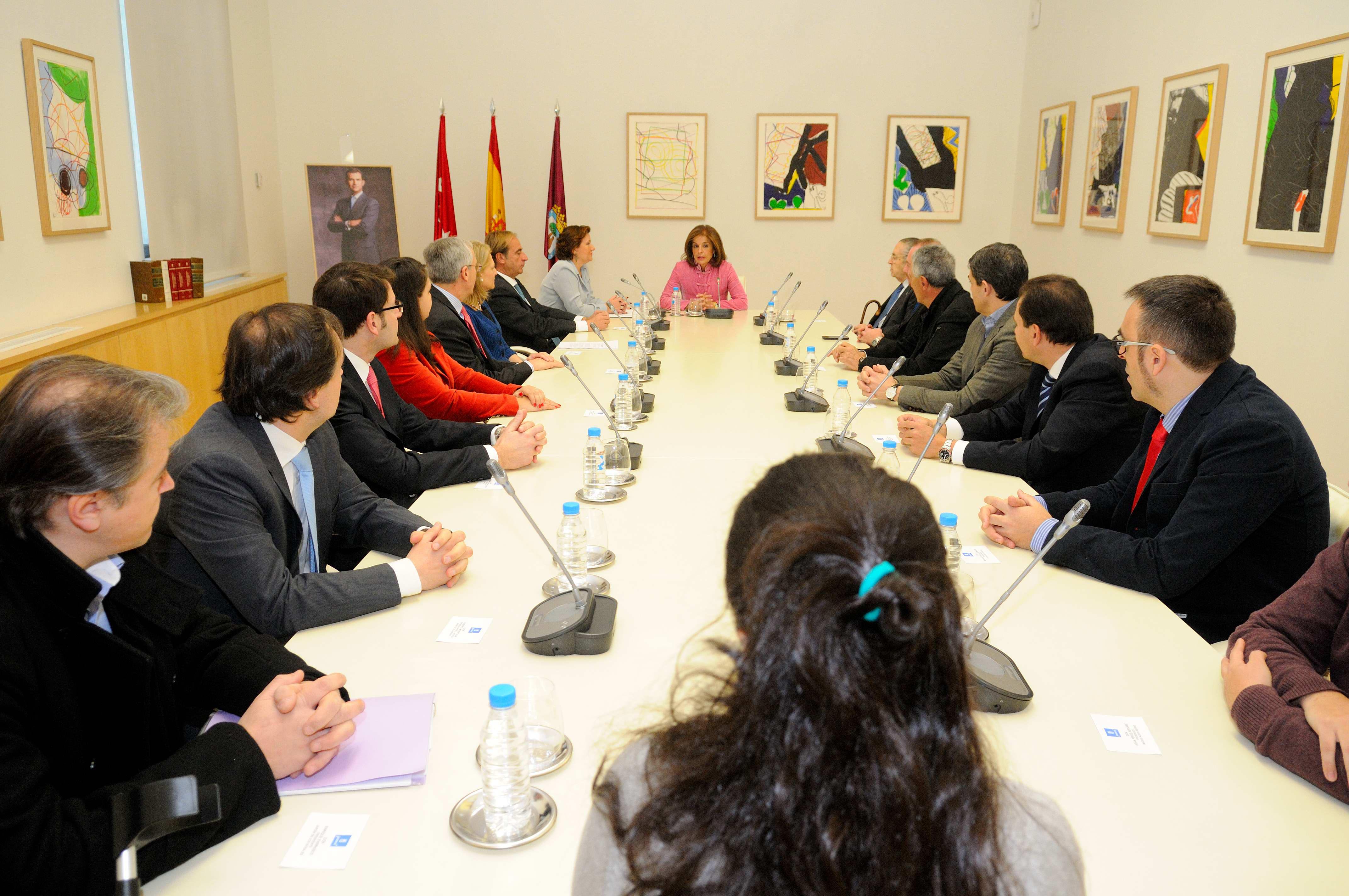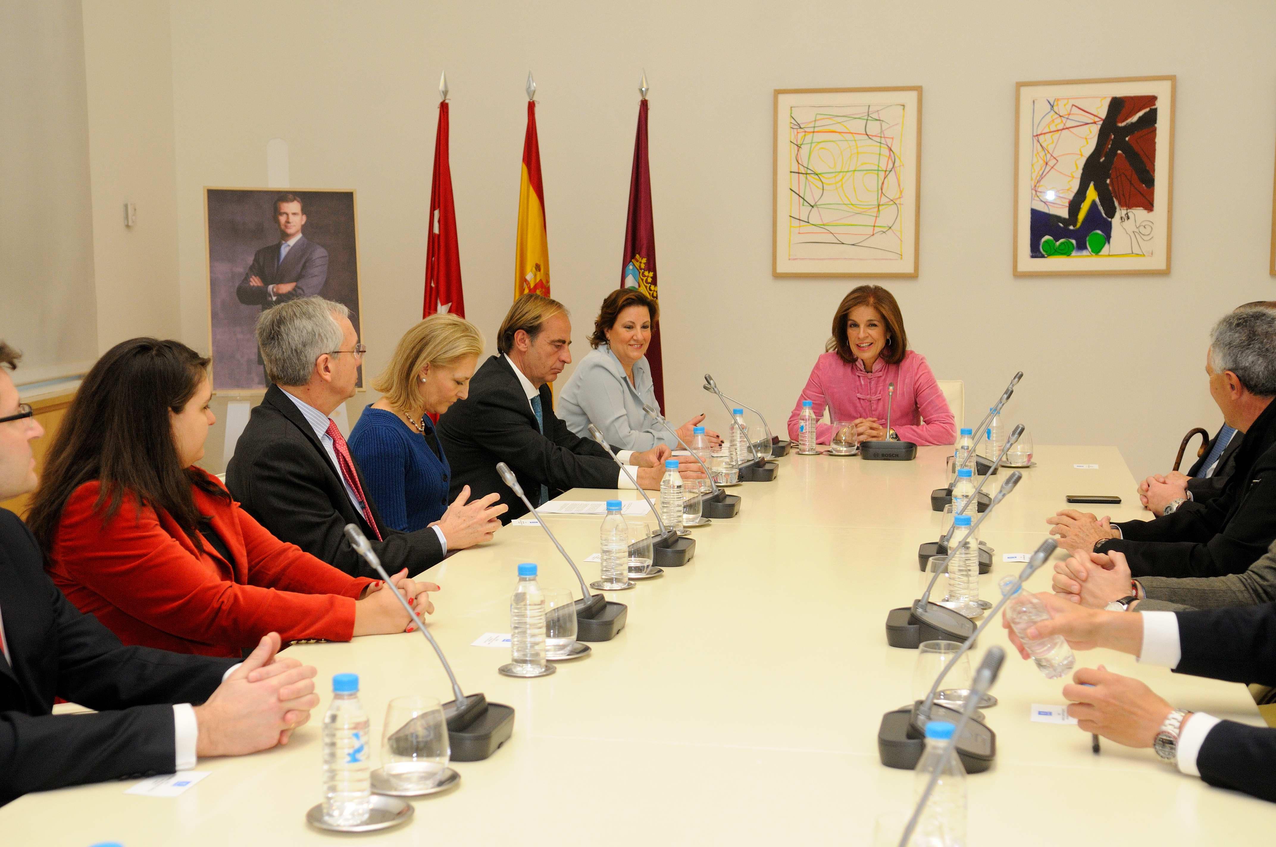La alcaldesa, Ana Botella, ha recibido hoy en el Palacio de Cibeles a representantes de cooperativas de los desarrollos del sureste, que podrán construir 1.500 viviendas protegidas en El Cañaveral