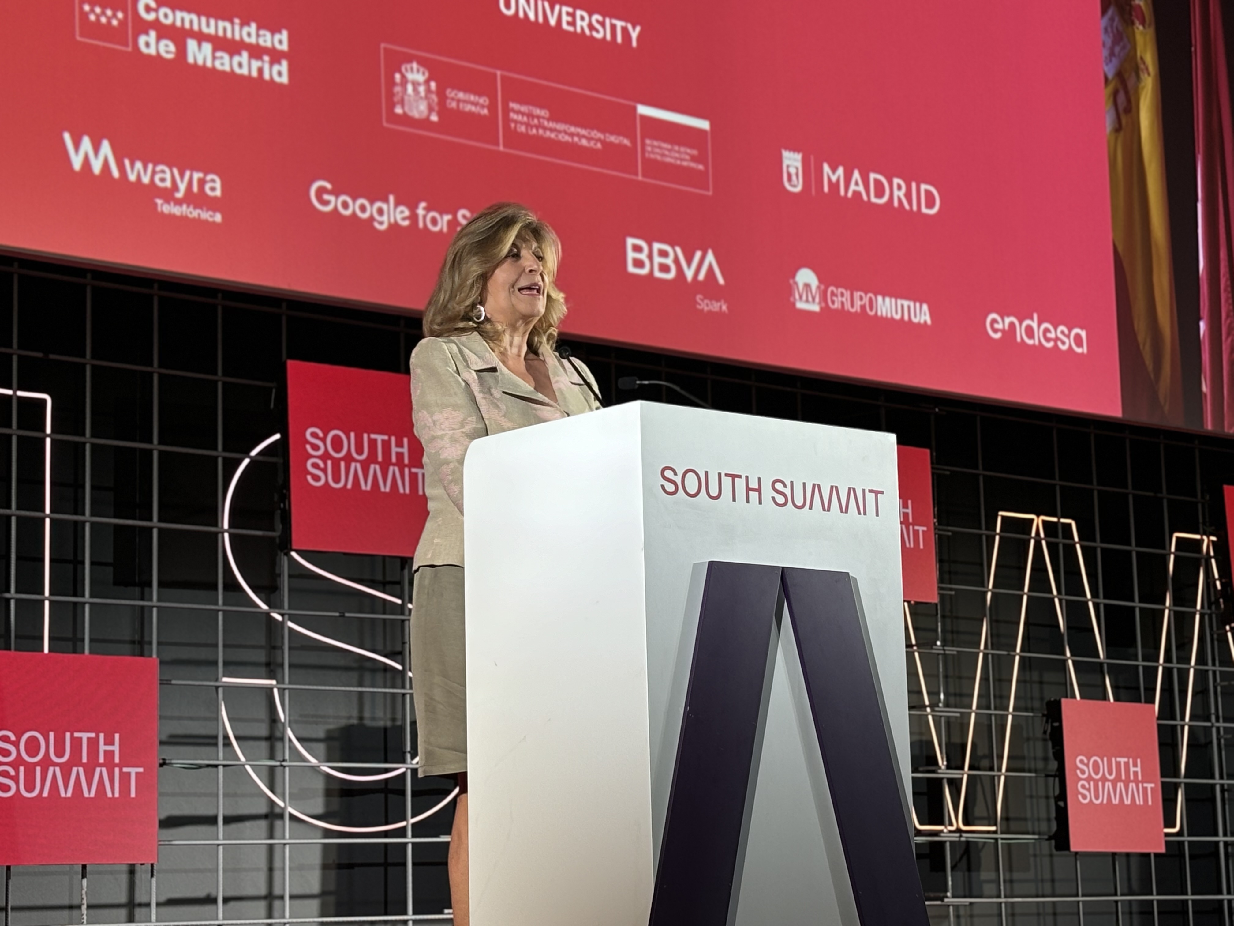Hidalgo, acompañada de Niño, durante su participación en la jornada de clausura de South Summit 2024, cumbre celebrada en La Nave