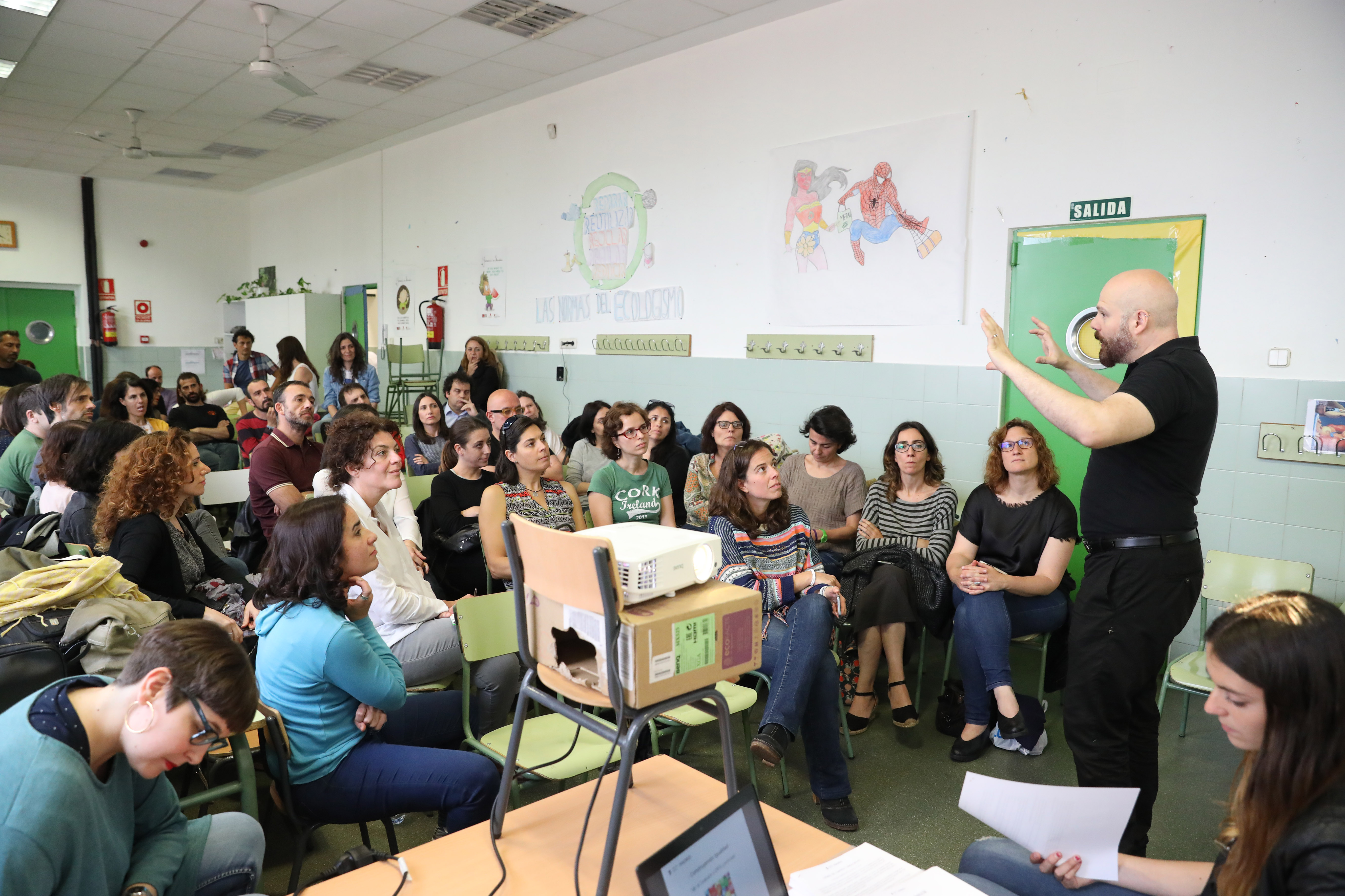 La formación, en horario no lectivo y en las instalaciones de cada uno de los centros educativos, la da un equipo de profesionales expertos en temas de género formado por sociólogas/os, trabadoras y trabajadores sociales, psicólogas/os y pedagogas/os. Para los más pequeños, de 1 a 3 años, se ha ideado cuentacuentos, y para los alumnos de primaria y secundaria, representaciones teatrales.