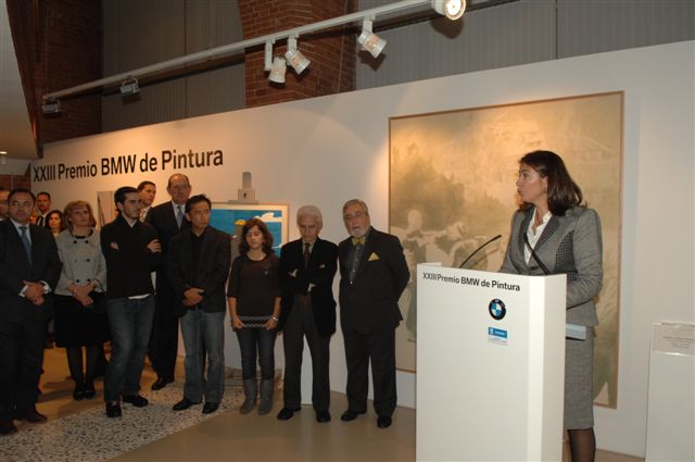 La muestra del XXIII Premio BMW de Pintura ha sido inaugurada por la concejala del distrito, Elena González Moñux, y el director de Comunicación de BMW Group España, Gigi Corbeta.