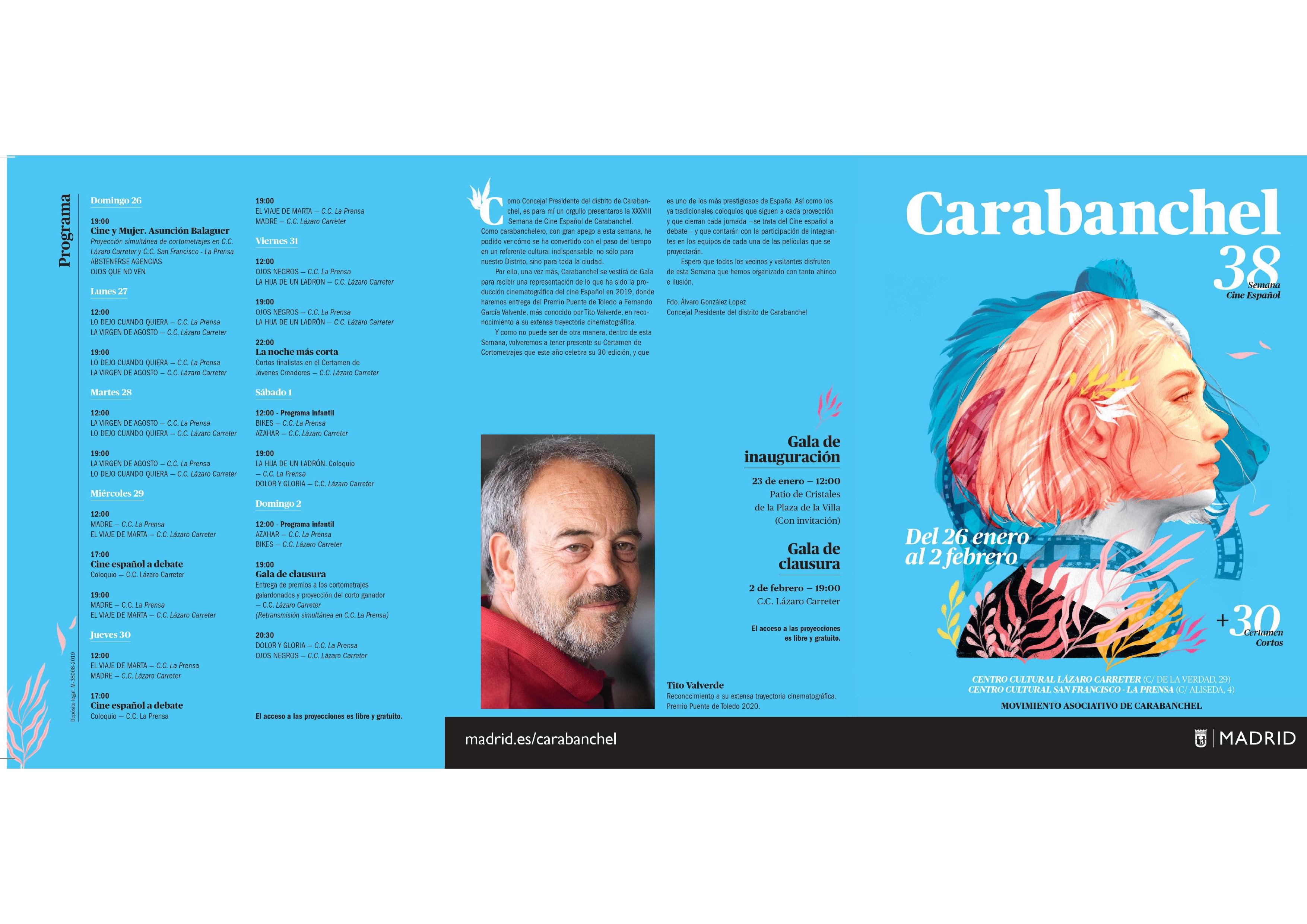 Desde hace casi cuatro décadas, durante los primeros días del año Carabanchel tiene una cita ineludible con el cine español. Se trata de la Semana de Cine Español de Carabanchel cuya edición 38 se celebra este año del 26 de enero al 2 de febrero.