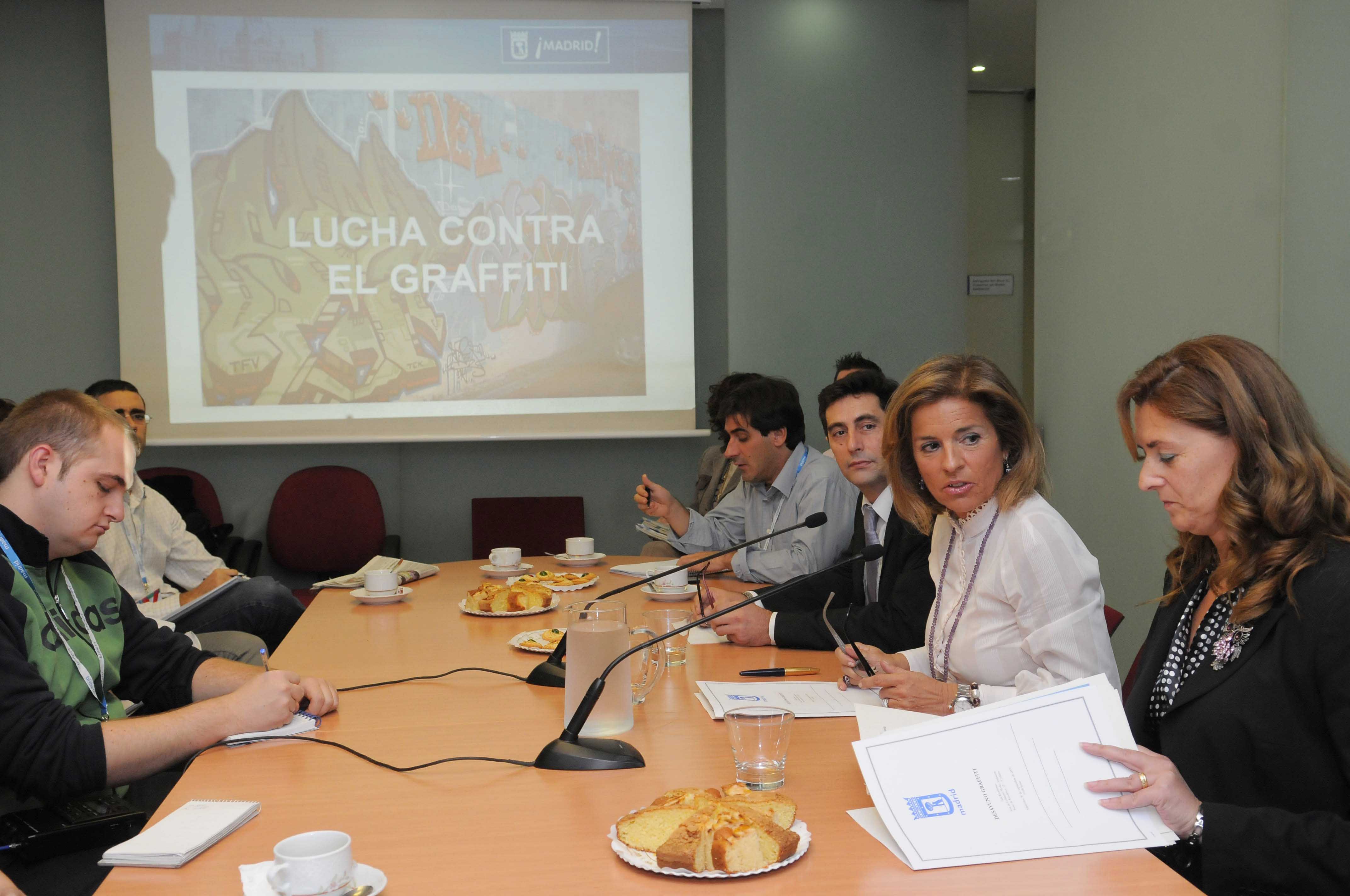 La delegada de Medio Ambiente y teniente de alcalde, Ana Botella, presentó esta mañana el balance de las actuaciones municipales de lucha contra los graffiti. En las imágenes, la concejal en un momento de la presentación que tuvo lugar en la sede del Área.