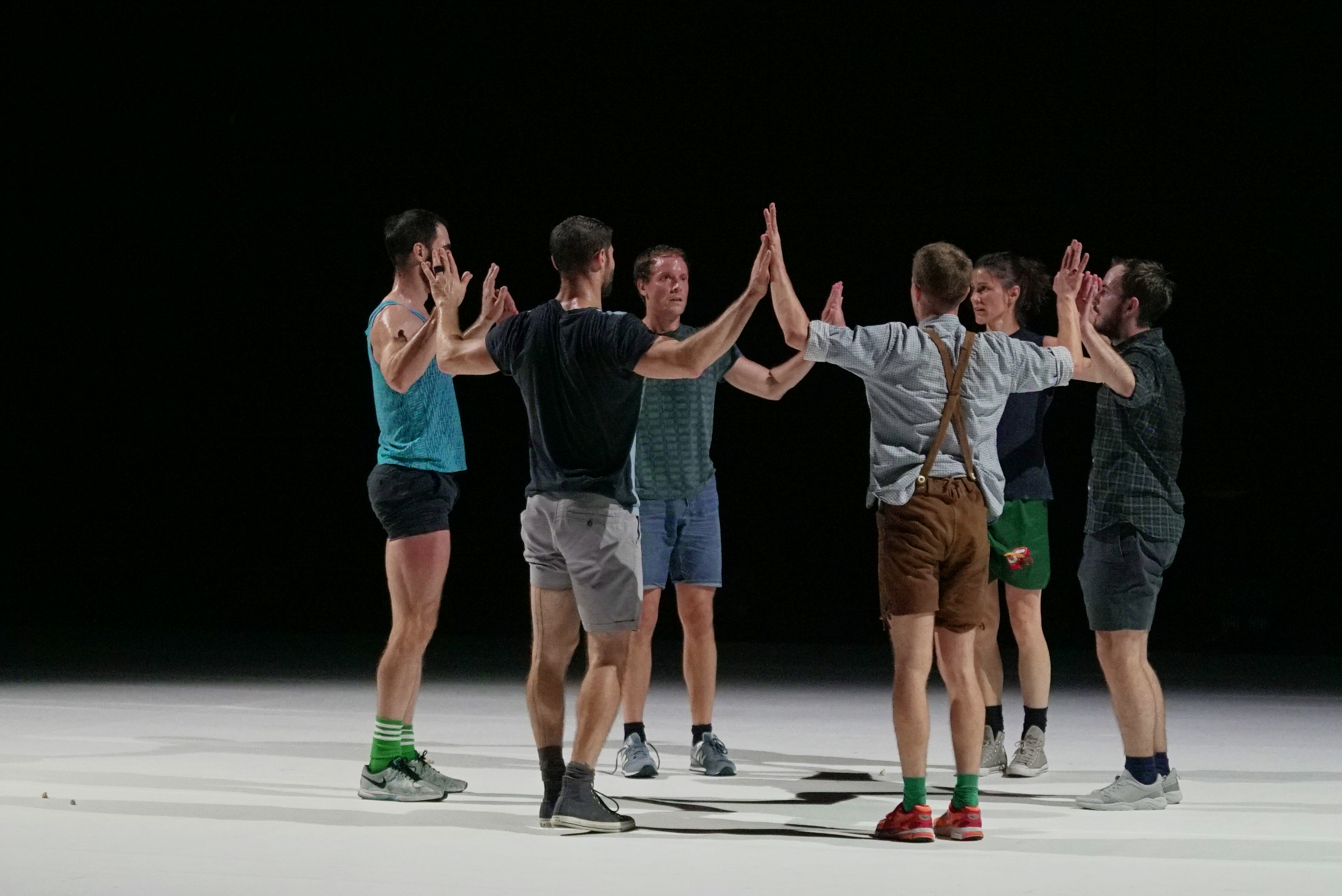 El coreógrafo italiano Alessandro Sciarroni presentó ayer su espectáculo Folk-s en Las Naves de Matadero, dentro de la programación de Veranos de la Villa. Un excepcional ejemplo del trabajo de este artista que se sitúa en los límites de la danza, la performance y el ritual antropológico, y que podrá verse de nuevo hoy en el mismo espacio.