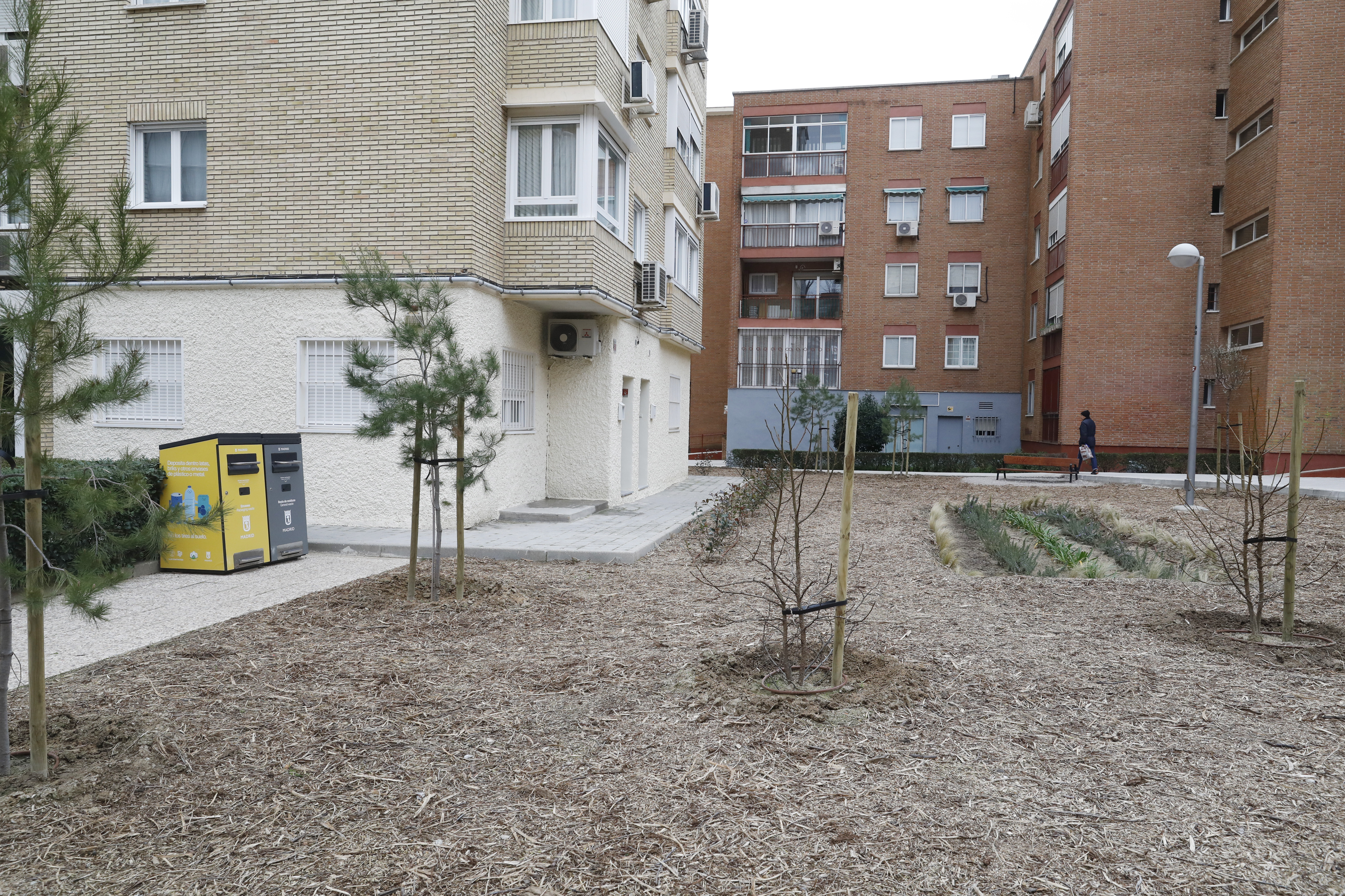 - En el interbloque de Hortaleza en el que ya se ha actuado, se han plantado 17 árboles, más de 150 arbustos y plantas y se han instalado papeleras inteligentes y un jardín de lluvia