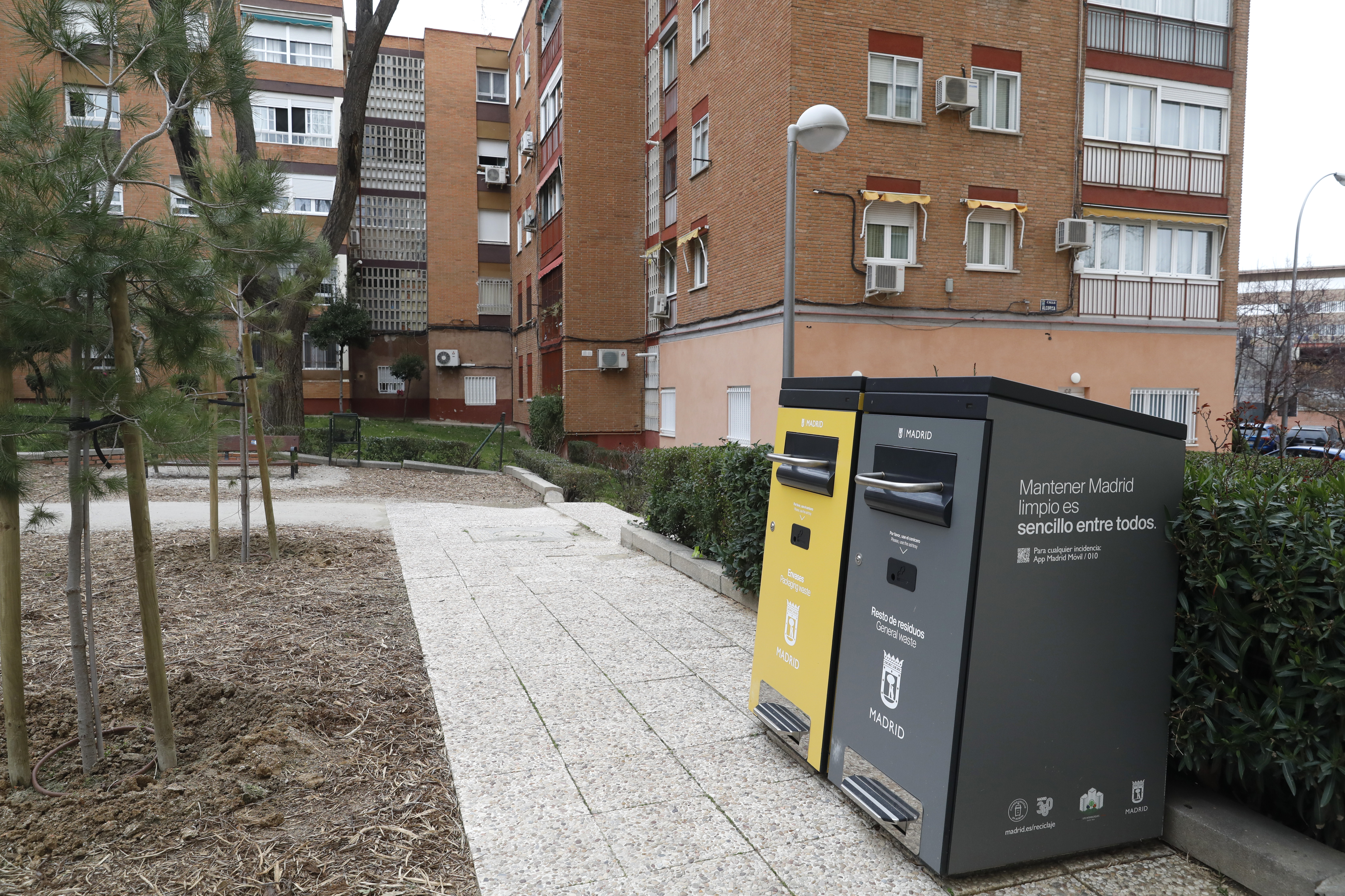 Esta zona interbloques cuenta con una nueva zona de paso que evitará a los vecinos tener que rodear, como hasta ahora, todo el terreno. Se han instalado papeleras inteligentes con sensores que indican su nivel de llenado, lo que permite una gestión más eficiente de los residuos.