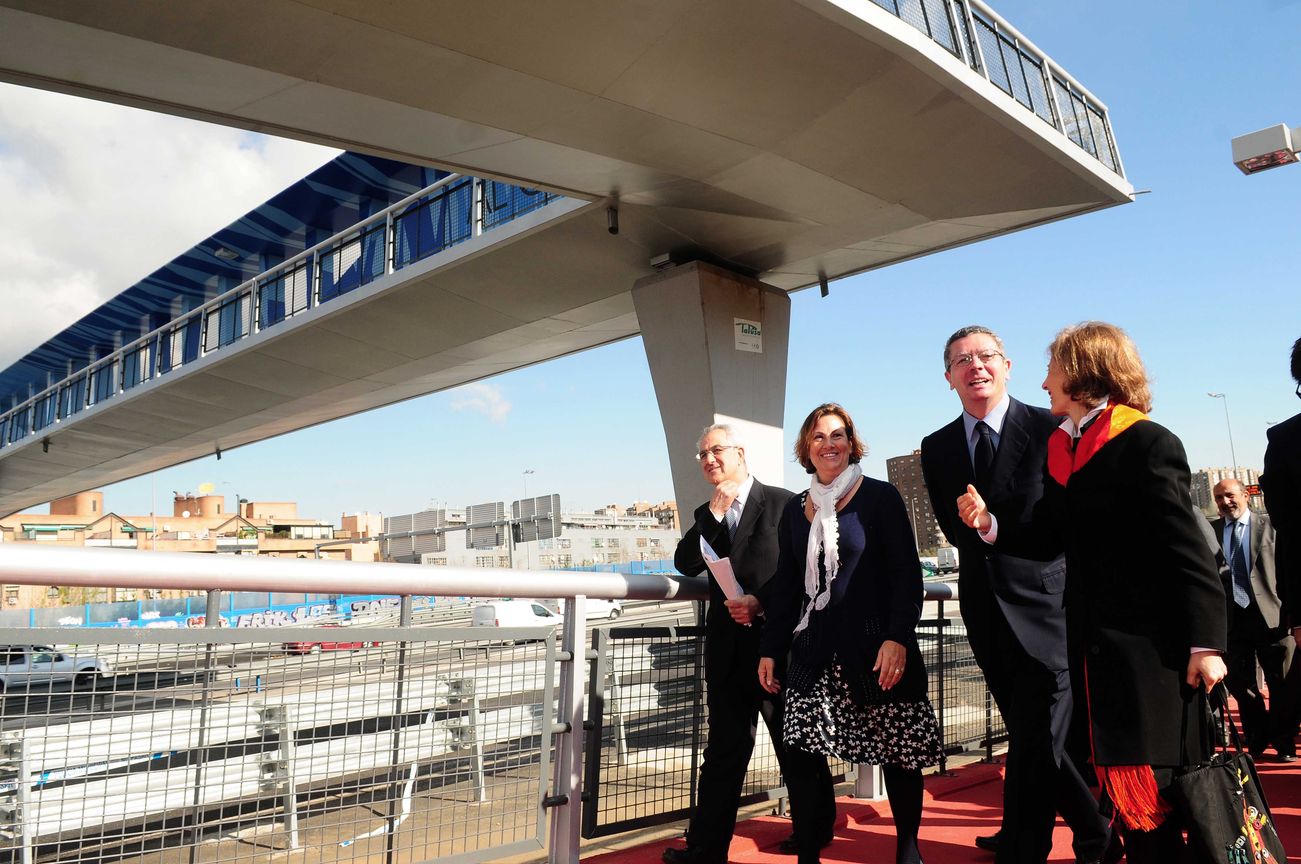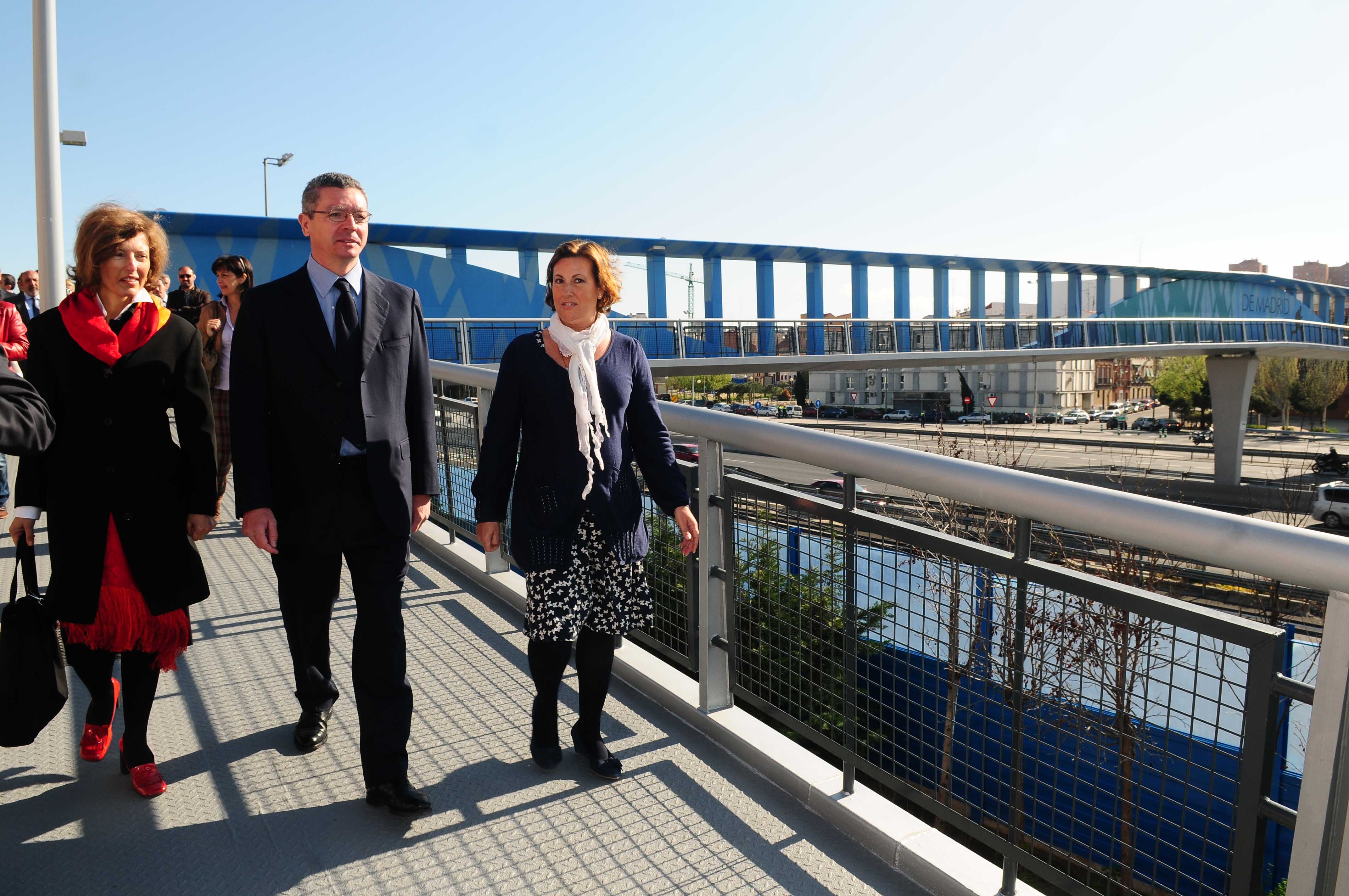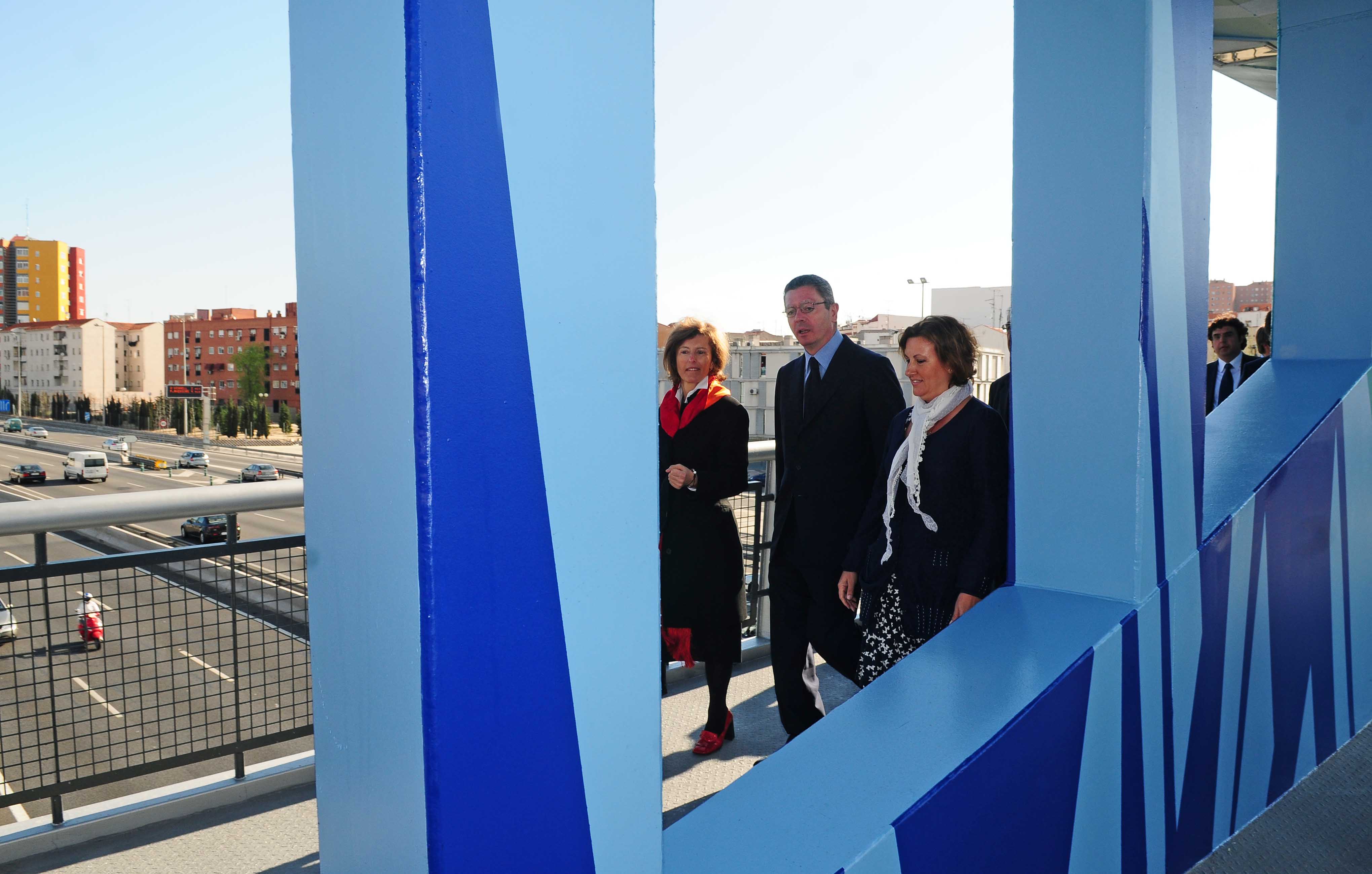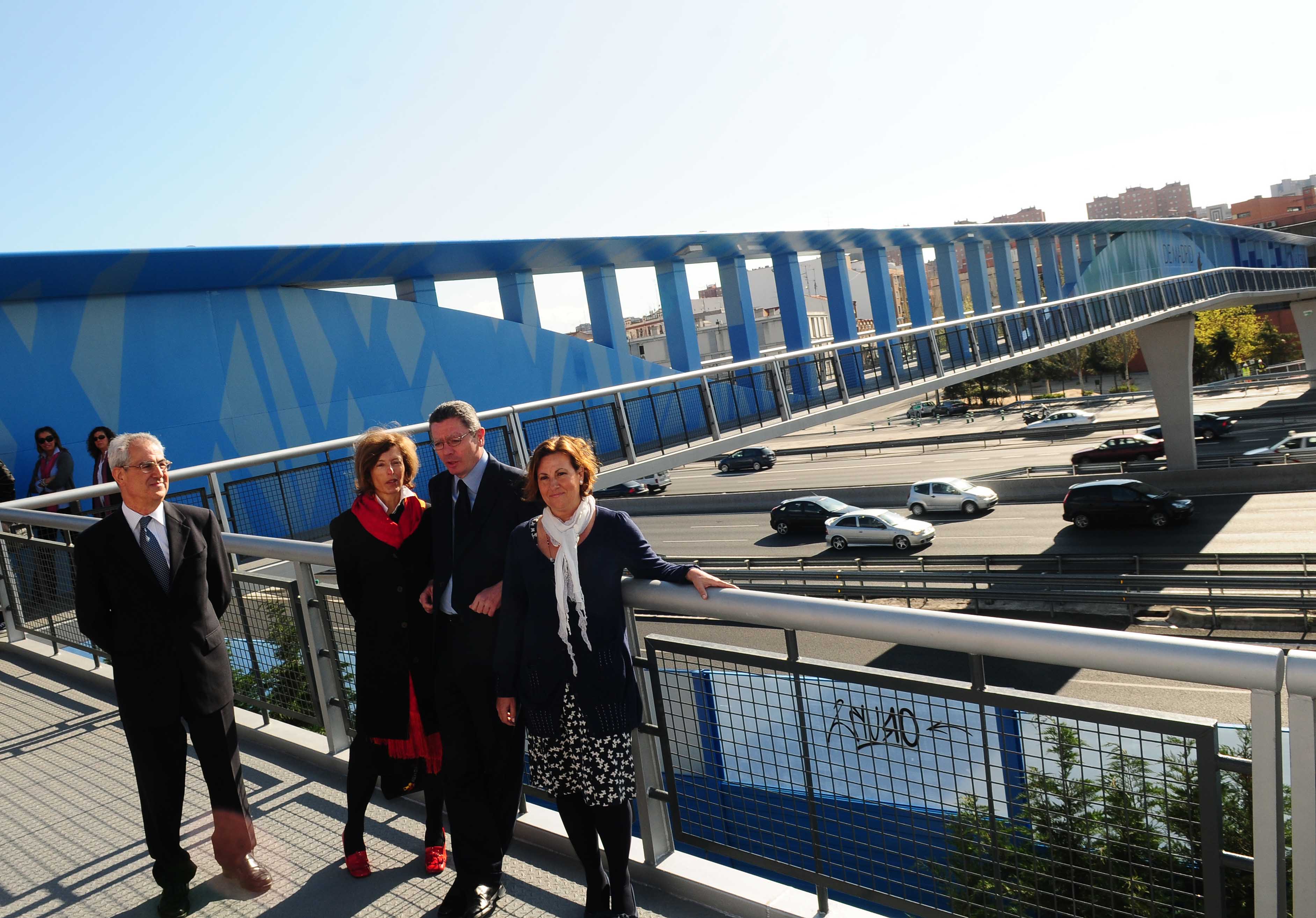 Imágenes de la pasarela sobre el arco Este de la M-30, que hoy ha inaugurado el alcalde, Alberto Ruiz-Gallardón, y que une el distrito de Puente de Vallecas con Retiro. La delegada de Obras y Espacios Públicos, Paz González, así como los presidentes de las Juntas Municipales de ambos distritos -Ángel Garrido y Luis Asúa, respectivamente- han acompañado al alcalde en el recorrido, al que también ha asistido la arquitecta del proyecto, Teresa Sapey.