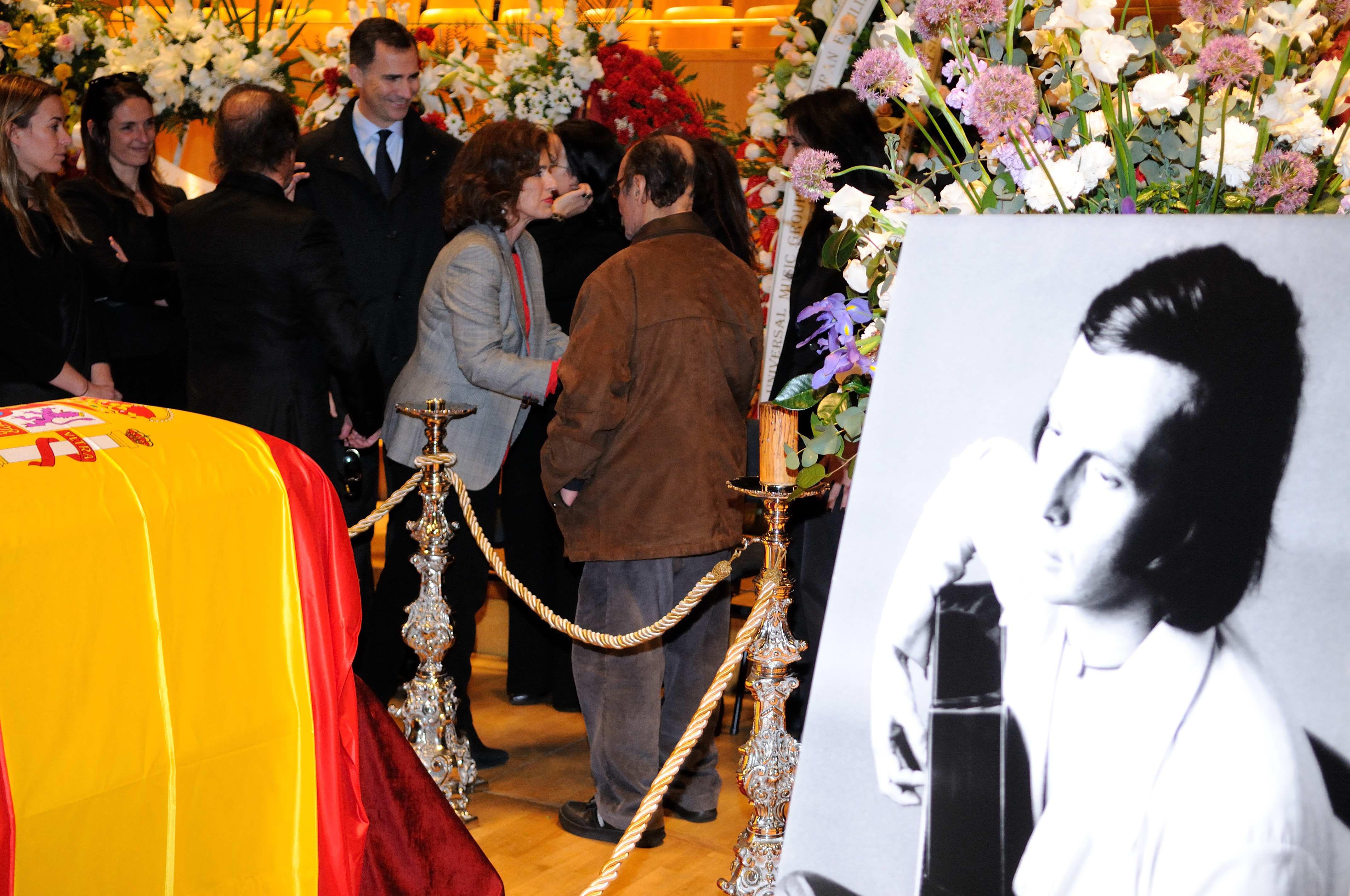 Ana Botella, alcaldesa de Madrid, ha querido transmitir en nombre de todos los madrileños el pésame a los familiares de Paco de Lucía, en la capilla ardiente instalada en el Auditorio Nacional. Junto con la delegada del Gobierno, Ana Botella ha recibido al Príncipe de Asturias quien también se ha acercado a dar el último adiós a uno de los grandes maestros de la guitarra española. Los restos del guitarrista han llegado hoy desde México, donde le sorprendió la muerte, y tras un alto en el Auditorio, a las seis de esta tarde saldrán para su ciudad natal, Algeciras, donde sus paisanos podrán despedirle y donde mañana se celebrará el funeral. La admiración y el cariño que el pueblo de Madrid sentía por Paco de Lucía se muestra una vez más al dedicar, como ayer anunció la alcaldesa, todos los actos organizados para el próximo 21 de junio con motivo de la celebración del Día de la Música, a la figura del que, entre otros muchos galardones, tenía el Príncipe de Asturias de las Artes en 2004./