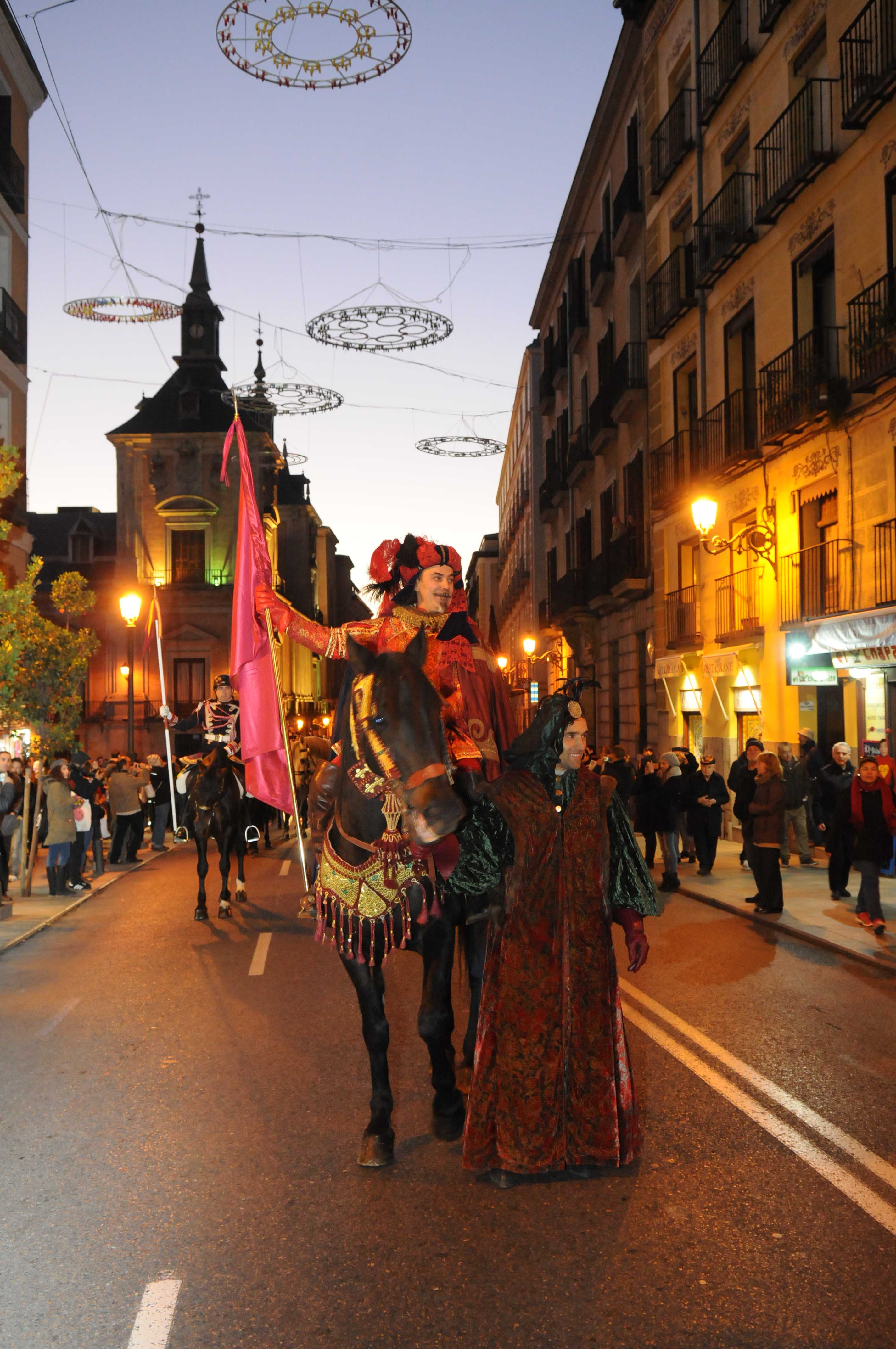 El Mensajero llegó a la Plaza Mayor con todos los honores que merece tan ilustre personaje, acompañado por el Escuadrón de la Policía Municipal de Gala y la Banda de Cornetas y Tambores, donde fue recibido por la alcaldesa. "Aquí estoy -anunció- para celebrar que desde hoy Madrid se convierte en capital de la Navidad".