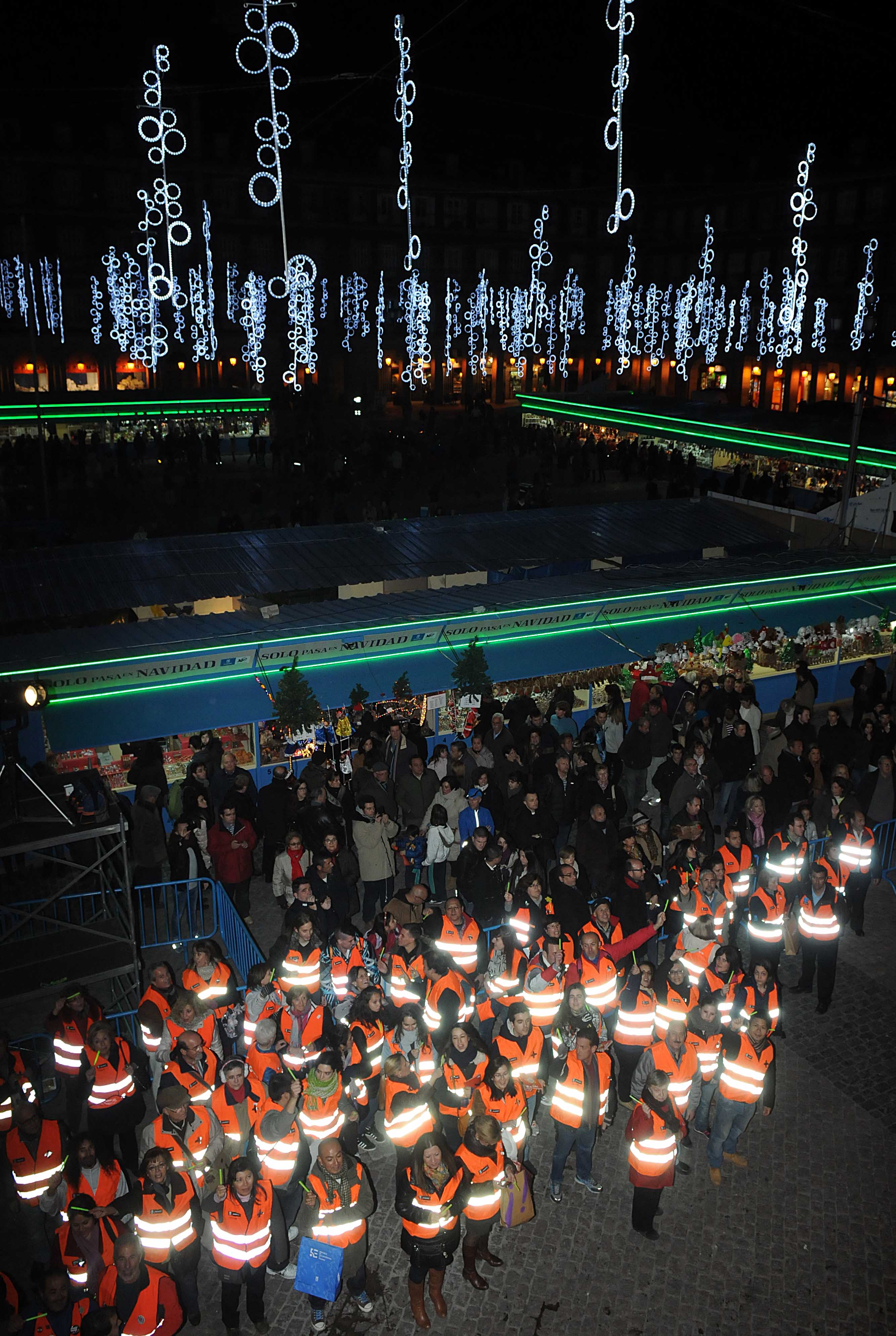 En el momento de despedirse, el Mensajero agradeció a la alcaldesa su hospitalidad y le entregó la "Luz de la Navidad" que Ana Botella encendió, al igual que los voluntarios que encendieron sus luces led, inaugurando así las tradicionales luces navideñas e iluminándose, en ese momento, la Plaza Mayor y las luces de la ciudad.