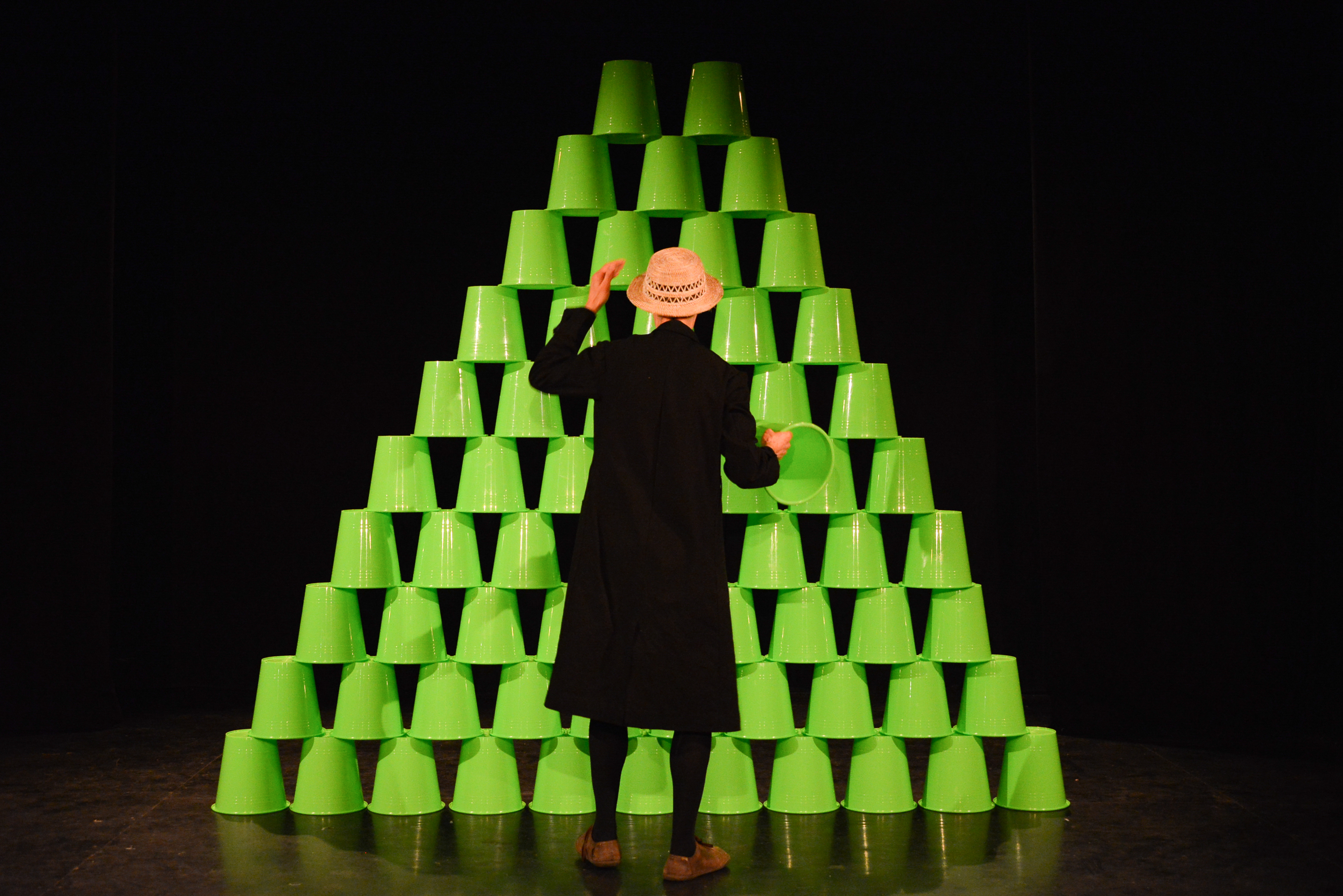Un personaje obsesionado con las figuras geométricas ve en un cubo una posibilidad para investigar sobre las líneas y las formas. En busca de la pieza que falta, el visionario Bakéké se encuentra con enigmas e imprevistos que transportan al público a un mundo absurdo y onírico. Un montaje creado por Fabrizio Roselli, creador de varias compañías de circo, como Circo Carampa de Madrid, la FLIC de Torino o Betticombo, de Toulouse. Su tendencia a ser un poco torpe lo convierte en un clown natural.