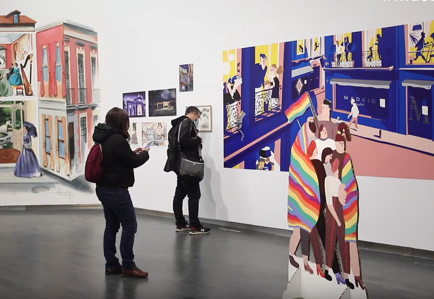 M de eme. Un paseo en familia invita a los niños y sus familias a una visita dinamizada a la exposición de ilustración M de eme. De paseo por Madrid. En ella recorrerán la ciudad, sus tradiciones, cultura y personajes relevantes a través de los dibujos publicados en la revista ilustrada eme21magazine. Al finalizar se realizará una actividad plástica relacionada también con Madrid.