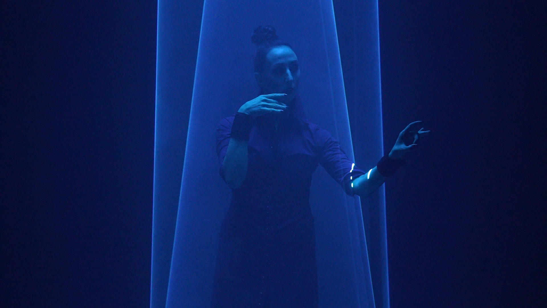 La inteligencia artificial, la biología, las matemáticas y la psicología experimental se pueden bailar. Esta es la premisa de la que parte Oecumene, una creación de danza para una bailarina que interactúa con un universo sonoro formado por fonemas provenientes de múltiples lugares del planeta. Una obra transdisciplinar que combina alta tecnología con danza, composición electroacústica y visuales interactivos. El objeto de este enfoque es expandir el movimiento corporal a otras modalidades sensoriales (sonido y luz), pero siempre colocando el cuerpo en el centro del desarrollo tecnológico.