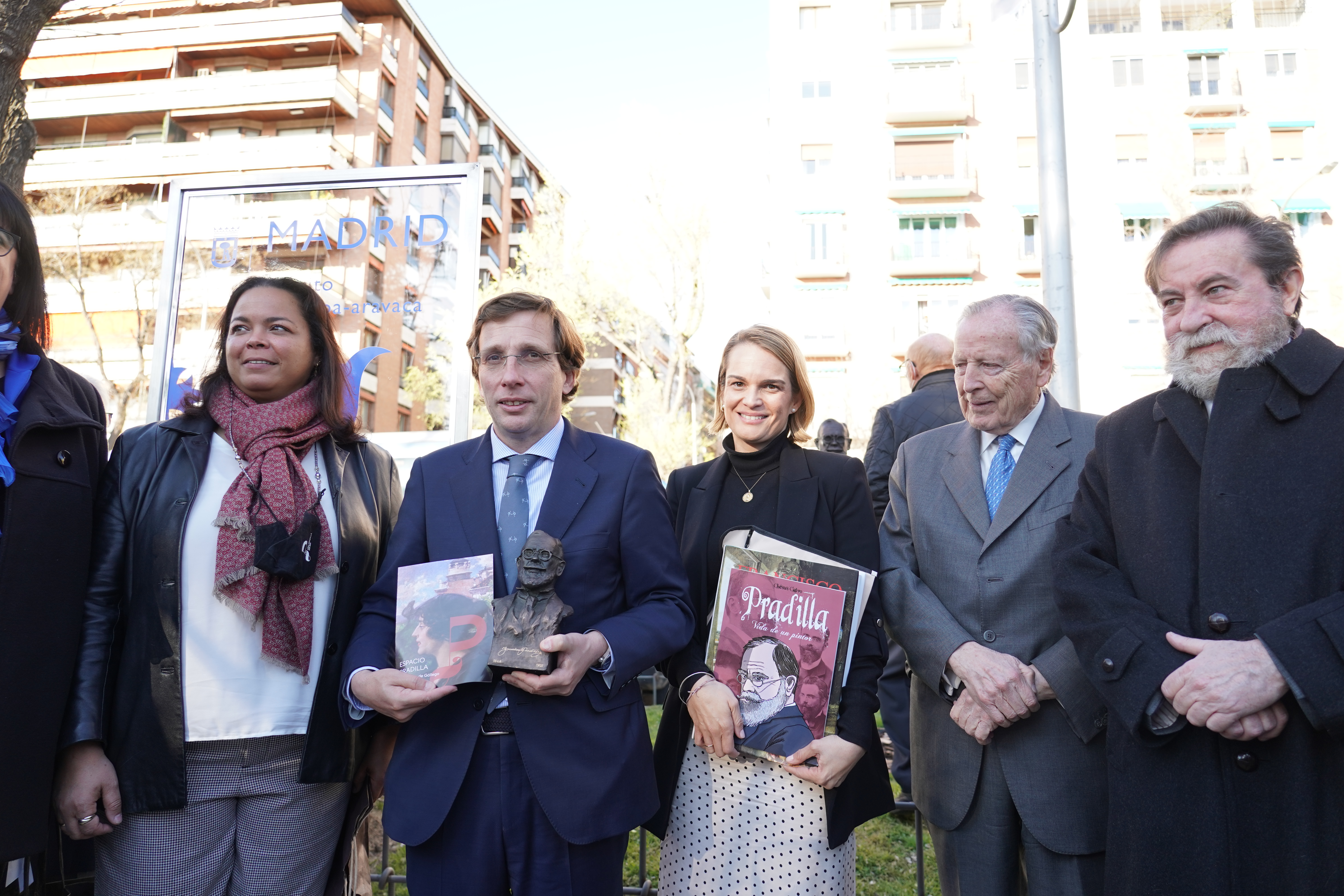 En el paseo de Rosales, a la altura del número 32, se alza desde hoy un busto en homenaje al pintor aragonés Francisco Pradilla Ortiz, uno de los máximos exponentes de la pintura histórica del siglo XIX español. La obra ha sido inaugurada esta tarde por el alcalde de Madrid, José Luis Martínez-Almeida, y miembros del Ayuntamiento de Villanueva de Gállego, localidad natal del pintor, acompañados por la delegada de Cultura, Turismo y Deporte, Andrea Levy; la concejala de Moncloa-Aravaca, Loreto Sordo, y familiares del artista.