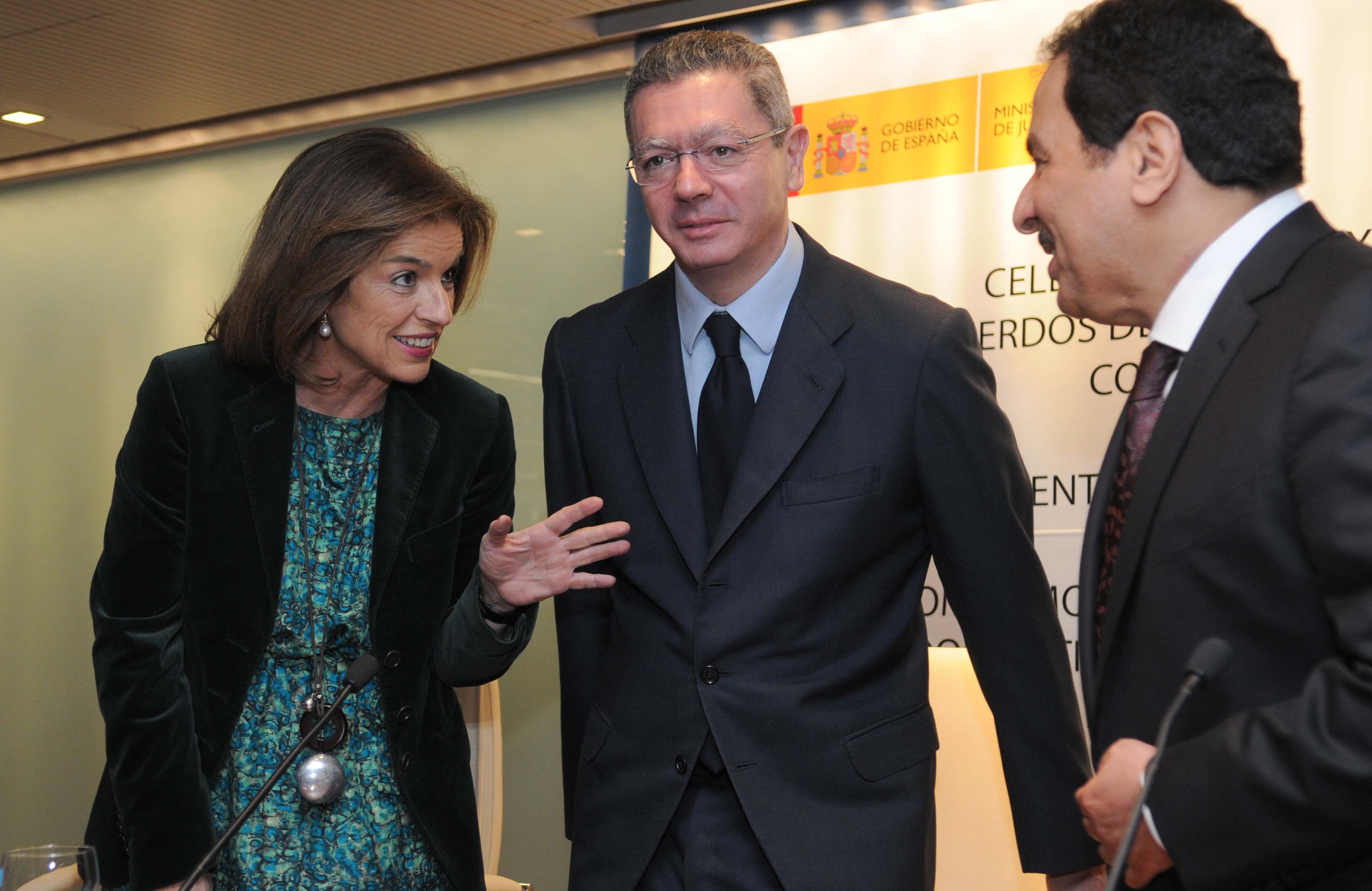 La alcaldesa de Madrid en la presentación del Centro Internacional para el Diálogo Interreligioso e Intercultural Rey Abdullah Bin Abdulaziz (KAICIID), celebrado en los Jardines de Cecilio Rodríguez del parque de El Retiro. El acto ha contado con la presencia del ministro de Justicia, Alberto Ruiz-Gallardón; el secretario general del KAICIID, Faisal Bin Abdulrahman Bin Muaammar, y el secretario de Estado de Cooperación Internacional y para Iberoamérica, Jesús Gracia, entre otras autoridades.
