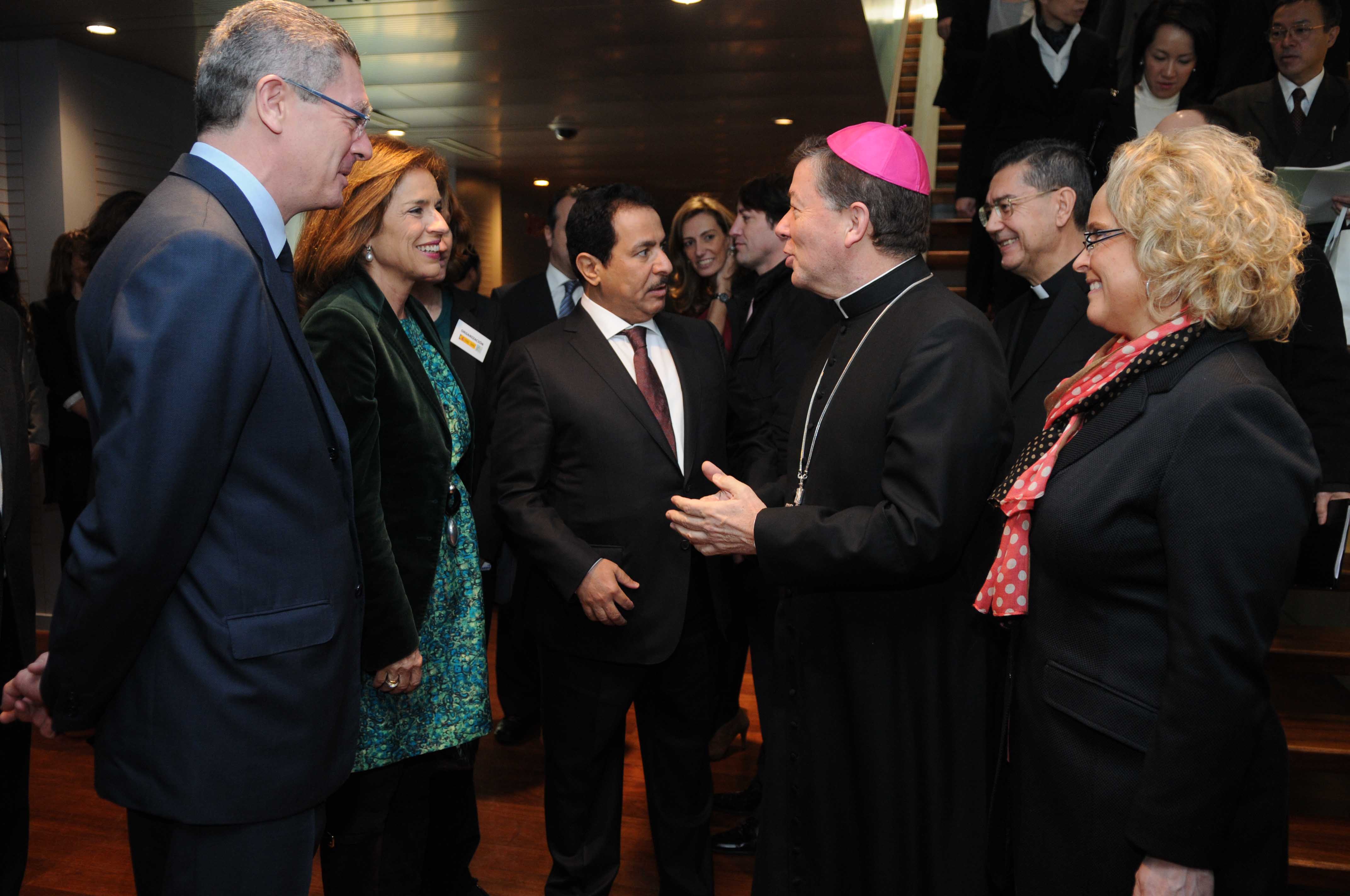 La alcaldesa de Madrid ha asistido hoy a la presentación del Centro Internacional para el Diálogo Interreligioso e Intercultural Rey Abdullah Bin Abdulaziz (KAICIID), celebrado en los Jardines de Cecilio Rodríguez del parque de El Retiro. El acto coincide con el XX aniversario de los acuerdos de colaboración entre el Estado y las Confesiones Evangélica, Judía y Musulmana y ha contado con la presencia del ministro de Justicia, Alberto Ruiz-Gallardón; el secretario general del KAICIID, Faisal Bin Abdulrahman Bin Muaammar, y el secretario de Estado de Cooperación Internacional y para Iberoamérica, Jesús Gracia.