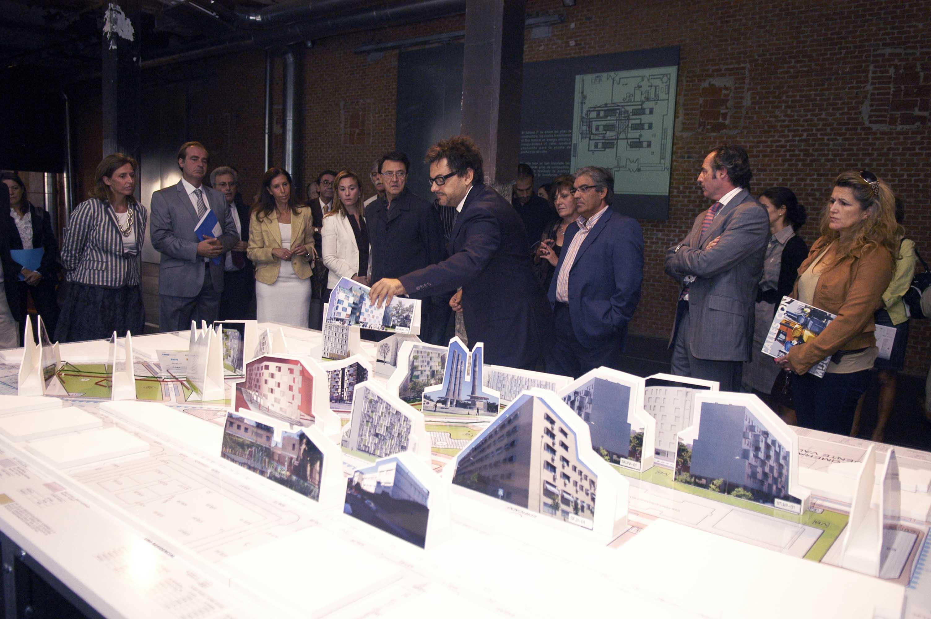 Distintos momentos de la inauguración de la exposición "Madrid. Diseño urbano sostenible", que ha corrido a cargo del coordinador general de Gestión Urbanística, Vivienda y Obras, Juan José de Gracia y que muestra a quienes se acerquen a Matadero Madrid, la política de recuperación de viviendas que lleva a cabo el Ayuntamiento de la Ciudad de Madrid.