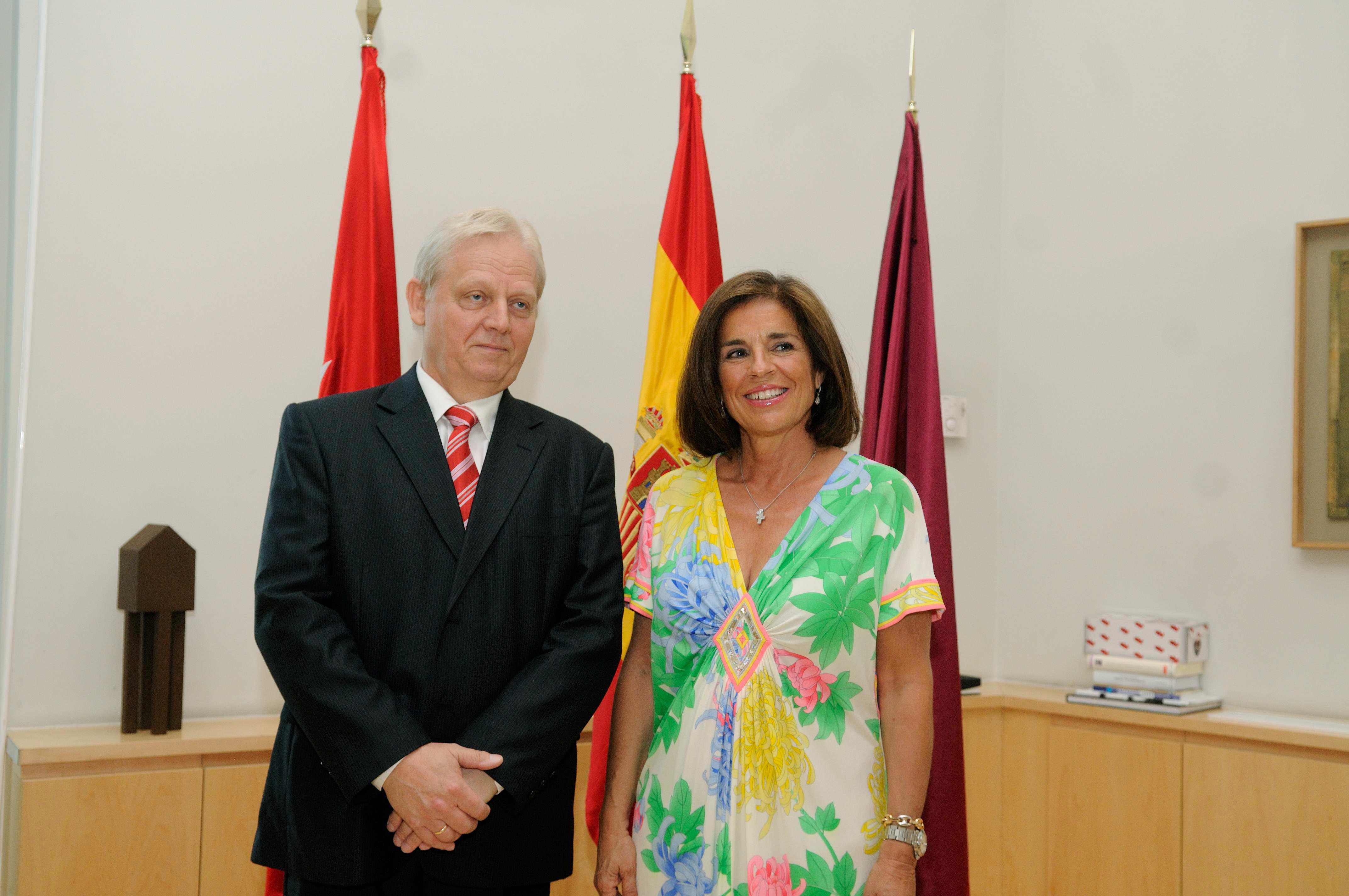 Diferentes momentos de la reunión de Ana Botella y el alcalde de Budapest y de la inauguración de la muestra del patrimonio artístico húngaro en los Jardines del Descubrimiento