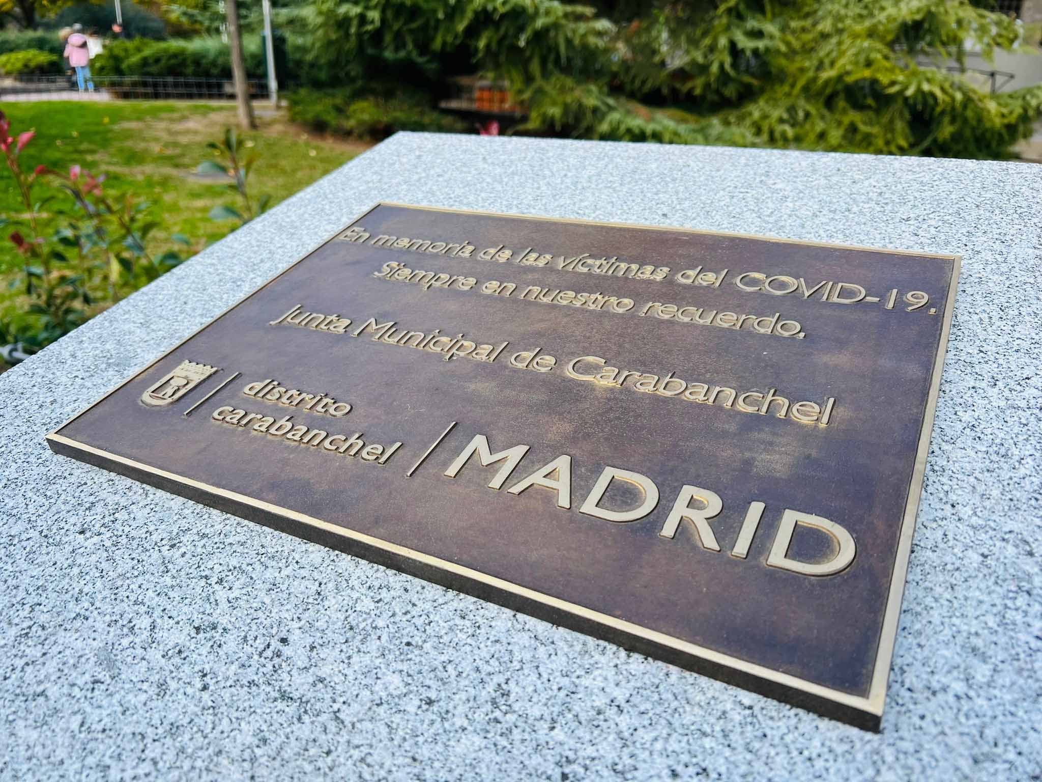 Un monumento y una placa recuerdan desde hoy en Carabanchel a las víctimas de la COVID-19