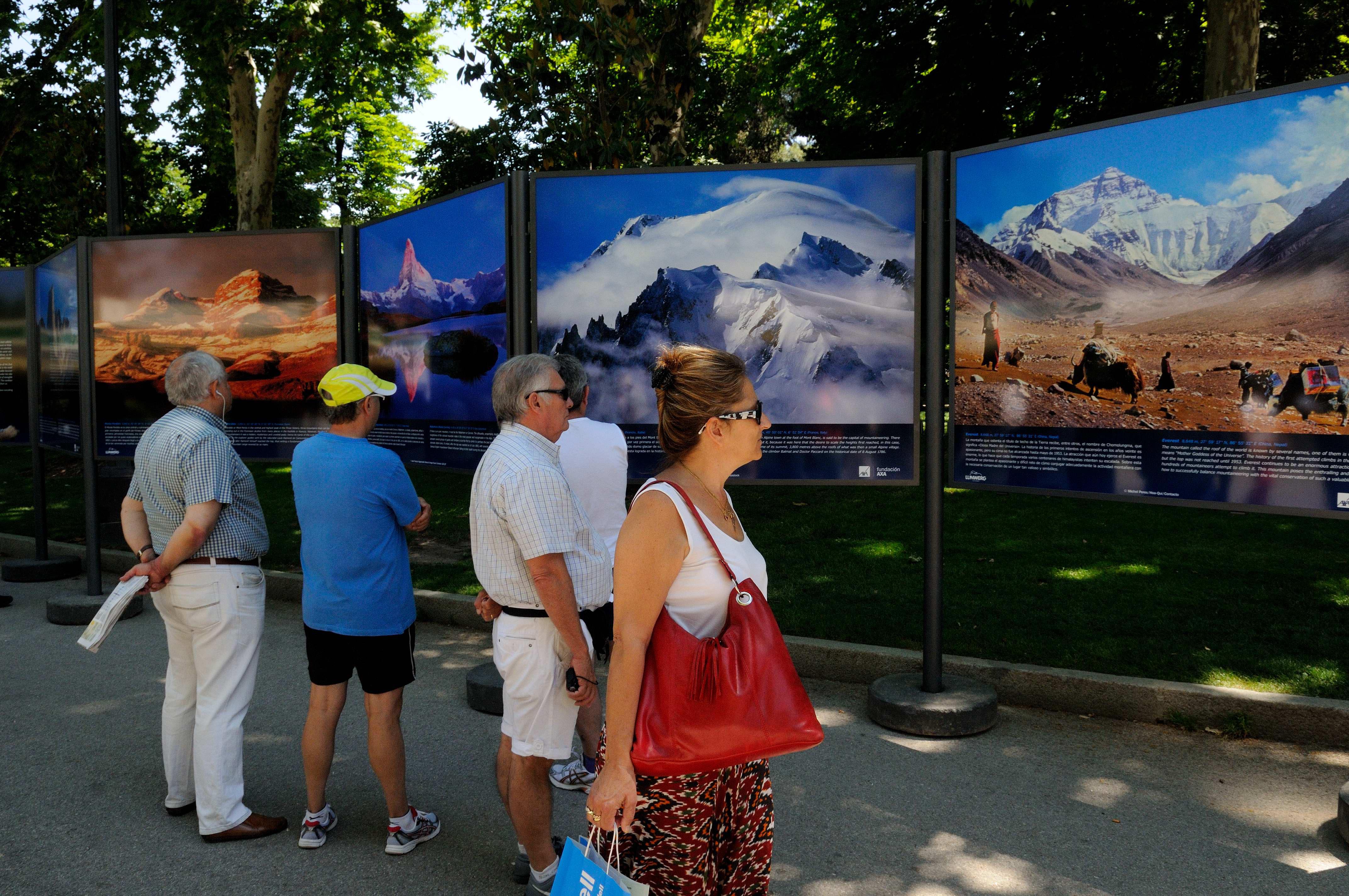 “Un mundo de montañas” es el título de la exposición que propone un fascinante viaje en 68 fotografías a los picos más altos y bellos del planeta y forma parte de la tradicional muestra que acompaña a los visitantes de la Feria del Libro en su recorrido por el corazón verde de la capital: el Parque del Retiro. La exposición puede visitarse hasta el dos de julio en el Paseo de Carruajes del Retiro.En esta ocasión, el paseante se encontrará con las imágenes impactantes del techo del mundo, que alberga buena parte del futuro del planeta por ser su principal depósito de agua, que influye en la climatología y en las condiciones meteorológicas, y en donde reside el 10% de la población mundial. La exposición está organizada por la editorial Lunwerg y patrocinada por la Fundación AXA. Está comisariaza por el naturalista Joaquín Araujo. Las imágenes han sido captadas por los principales fotógrafos especializados en naturaleza, tanto nacionales como internacionales./