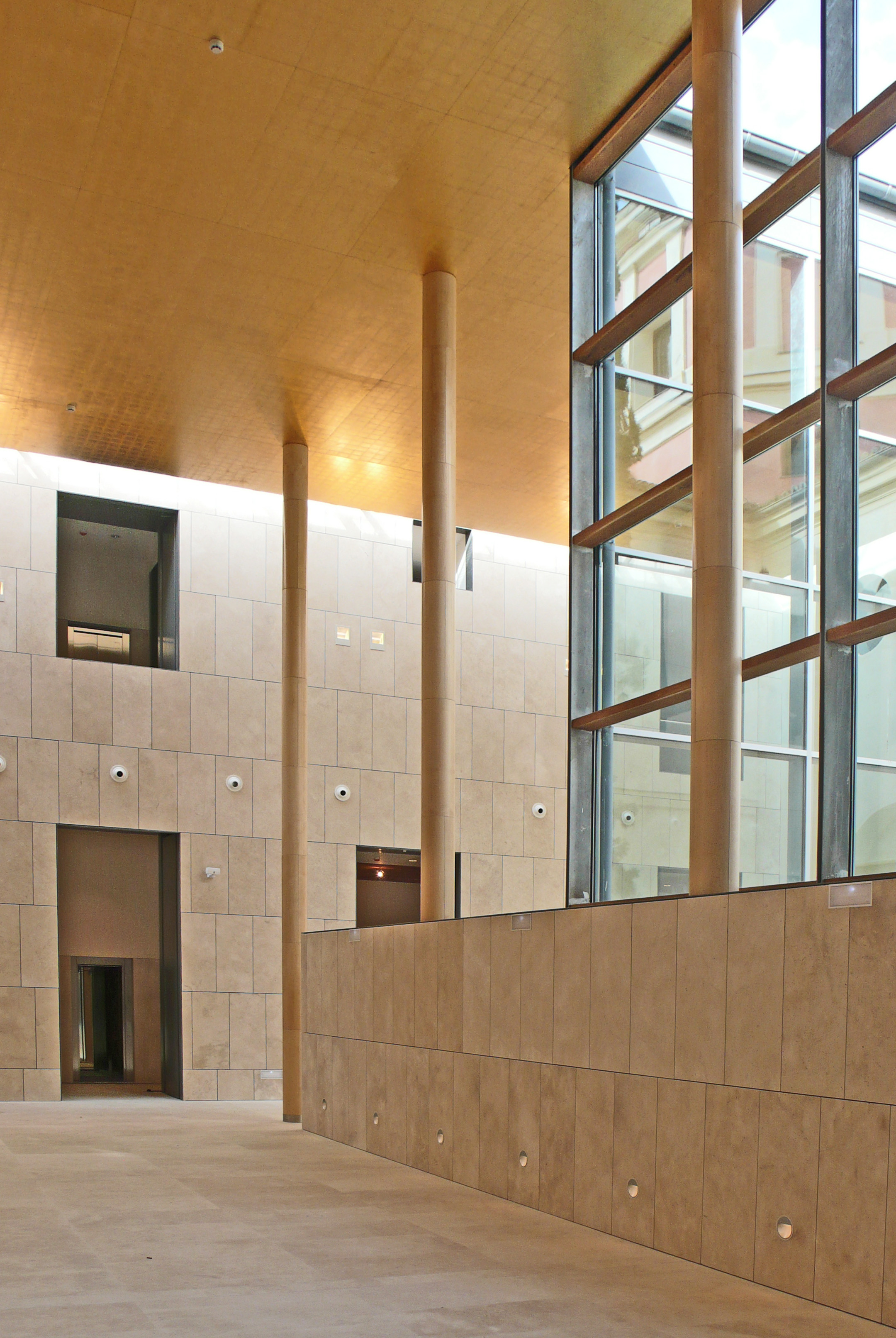 - Se han construido un área específica de acogida, una sala de exposiciones temporales, talleres didácticos, librería, cafetería y almacenes especializados por colecciones