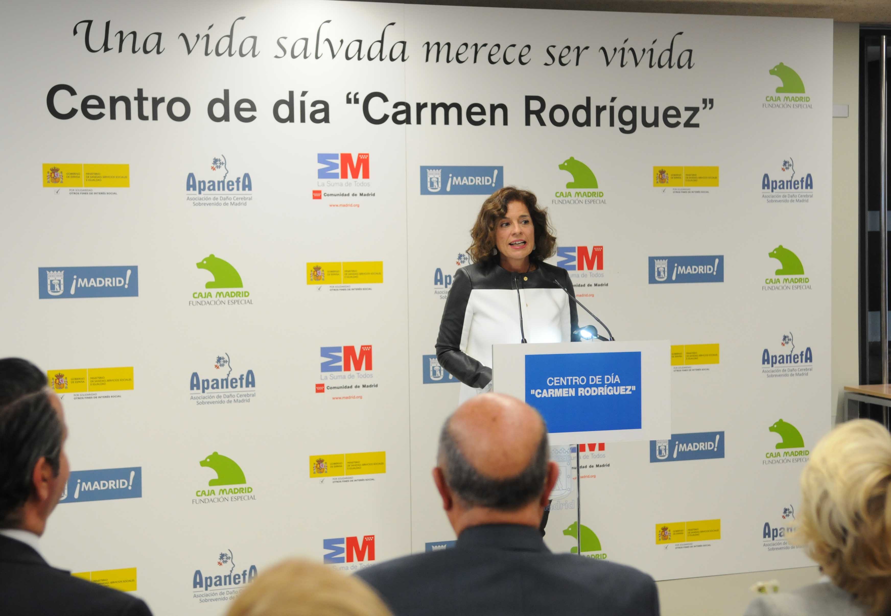 "Un proyecto eficaz para dar una respuesta práctica y real a las necesidades de tantas personas afectadas por daño cerebral sobrevenido y a sus familias". La alcaldesa, Ana Botella, ha resumido con estas palabras la importancia del Centro de Día "Carmen Rodríguez", que ha inaugurado hoy en el distrito de Arganzuela, fruto de la colaboración entre el Ayuntamiento de Madrid y la Asociación Apanefa, y que supone un nuevo paso en "el compromiso permanente del Ayuntamiento contra la discriminación y por la inclusión".