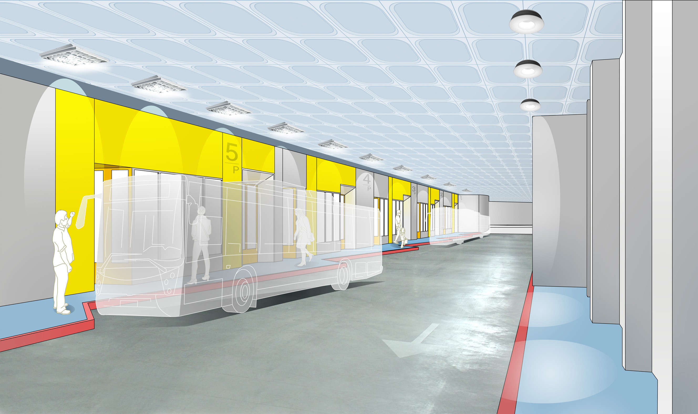 - La infraestructura subterránea de transporte cuenta con diez dársenas para autobuses del transporte público de viajeros y cuatro plazas para la carga y descarga de vehículos de mercancías para uso del pequeño y mediano comercio de la zona