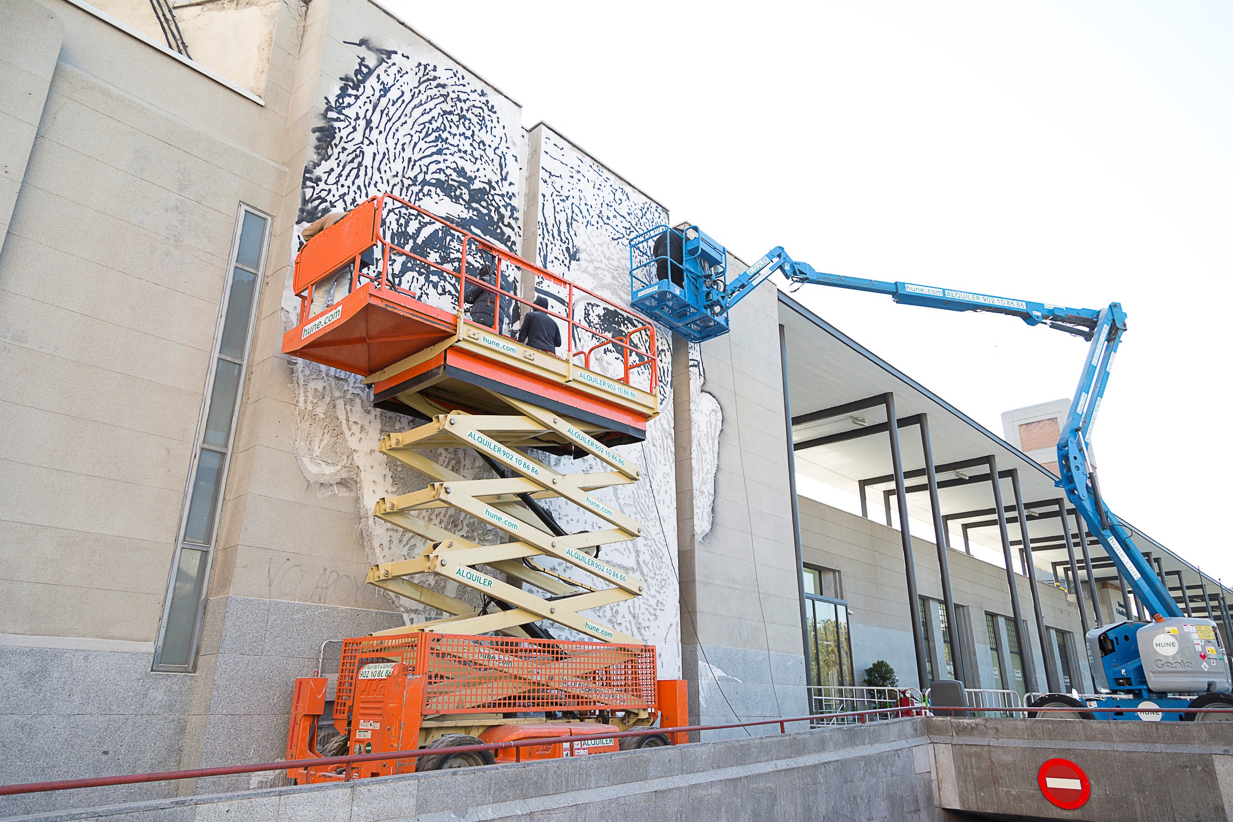 - Vhils y su equipo han finalizado hoy la obra de grandes dimensiones realizada con la técnica de cincelado