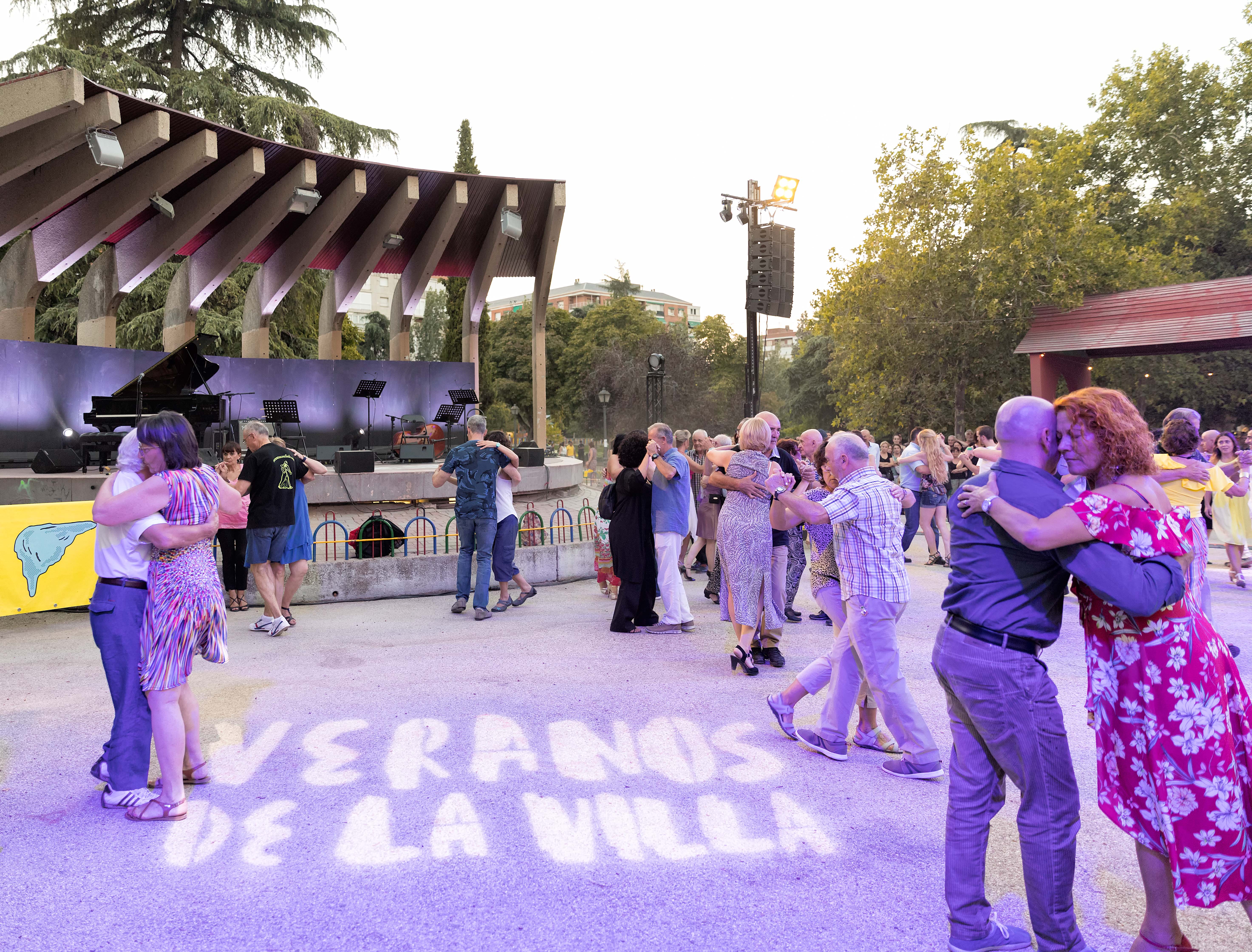 Veranos de la Villa celebró ayer “Noche de milonga”, una iniciativa donde se dieron cita en el Parque de Berlín las muchas personas aficionadas al tango que hay en Madrid y también quienes se acercaron para conocer esta forma de baile venida de lejos pero a la vez tan cercana.