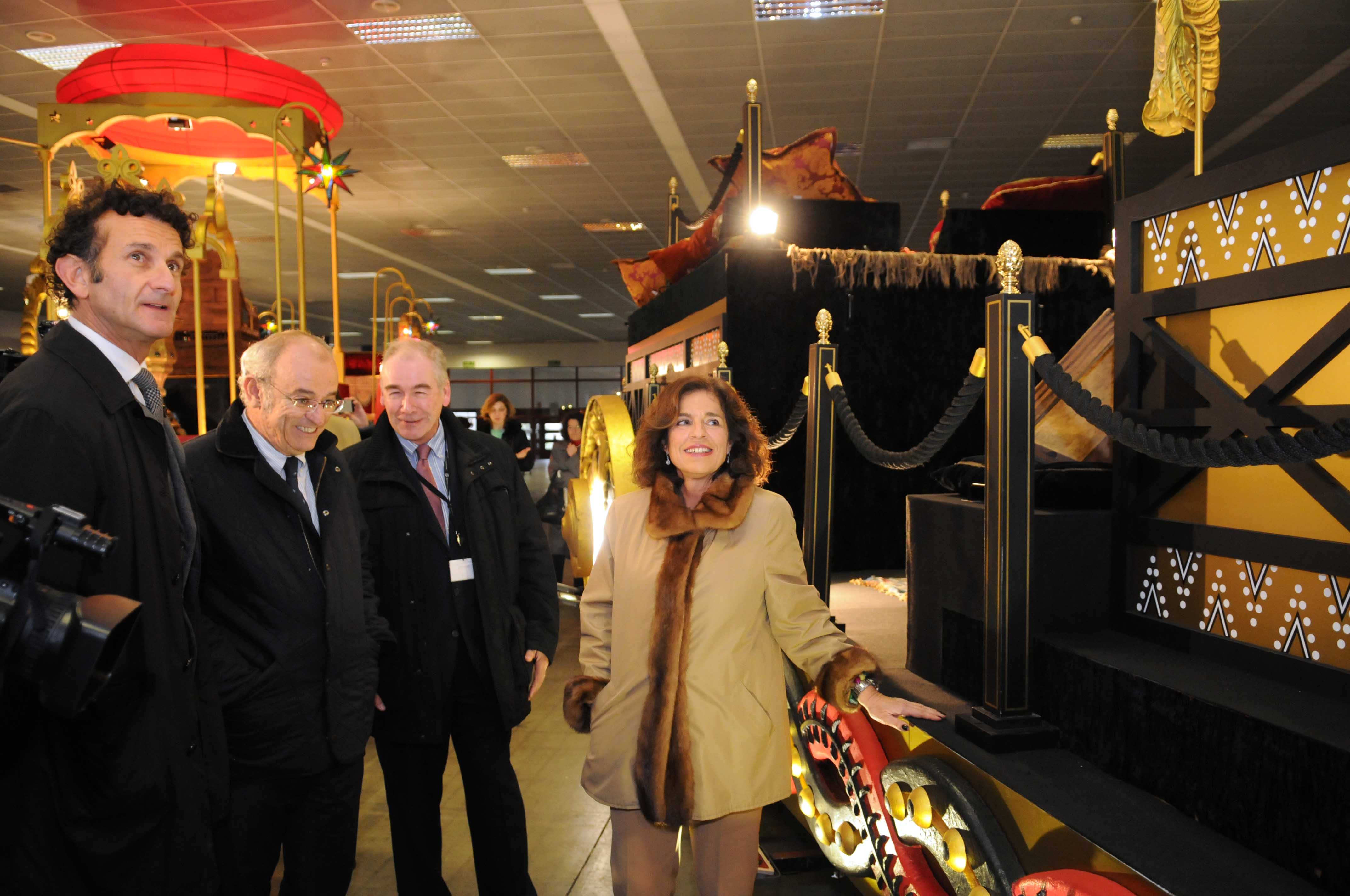 La alcaldesa de Madrid ha visitado hoy el pabellón de la Casa de Campo donde ya están preparadas las carrozas de los Reyes Magos, que desfilarán en la cabalgata del próximo domingo, 5 de enero.