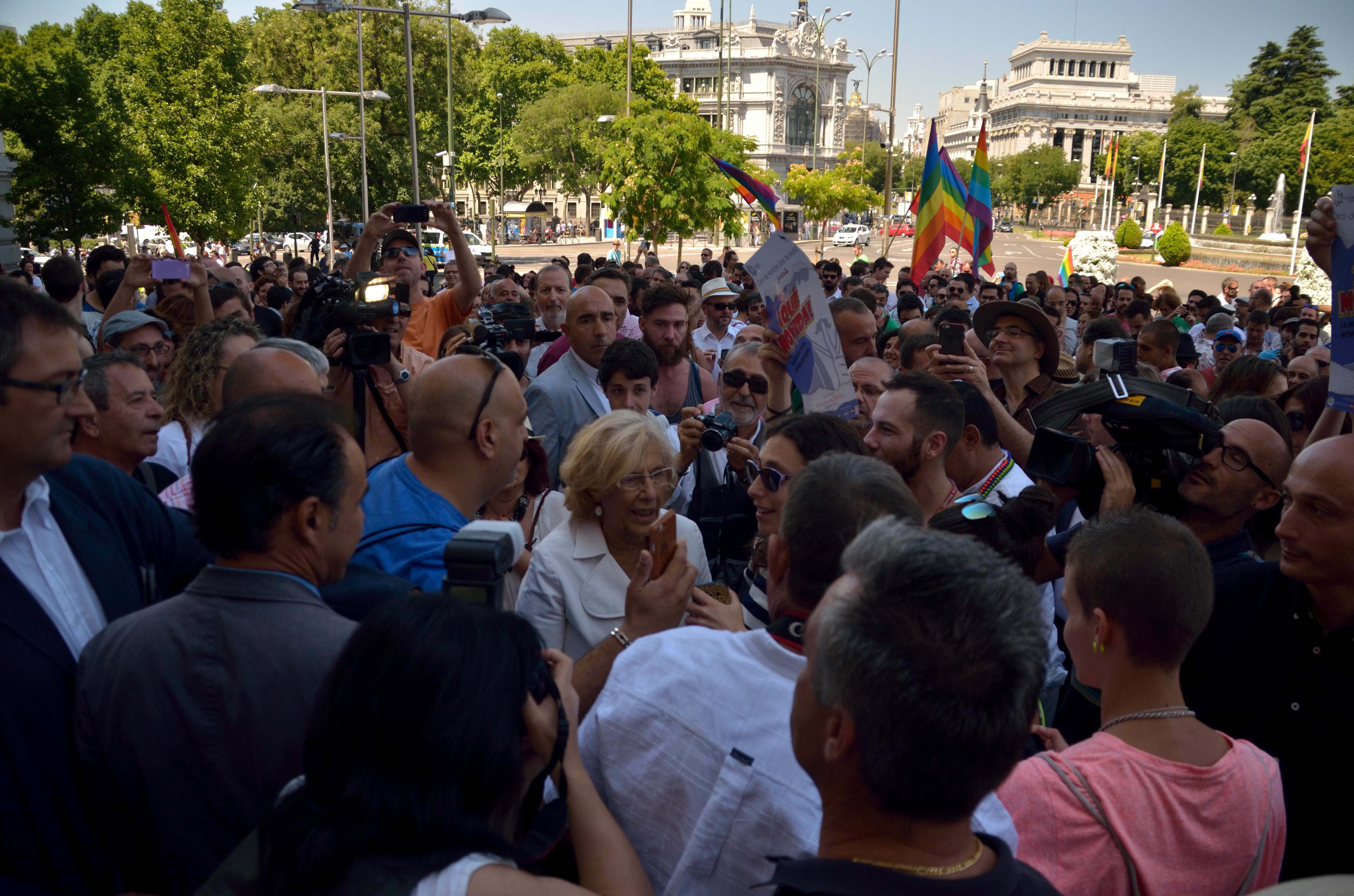El Ayuntamiento de Madrid se suma así al Orgullo 2015, que se celebra hasta el domingo día 5, un acontecimiento que no es sólo una fiesta, ha dicho la alcaldesa, "sino que también tiene que ser aliento para los que sufren".