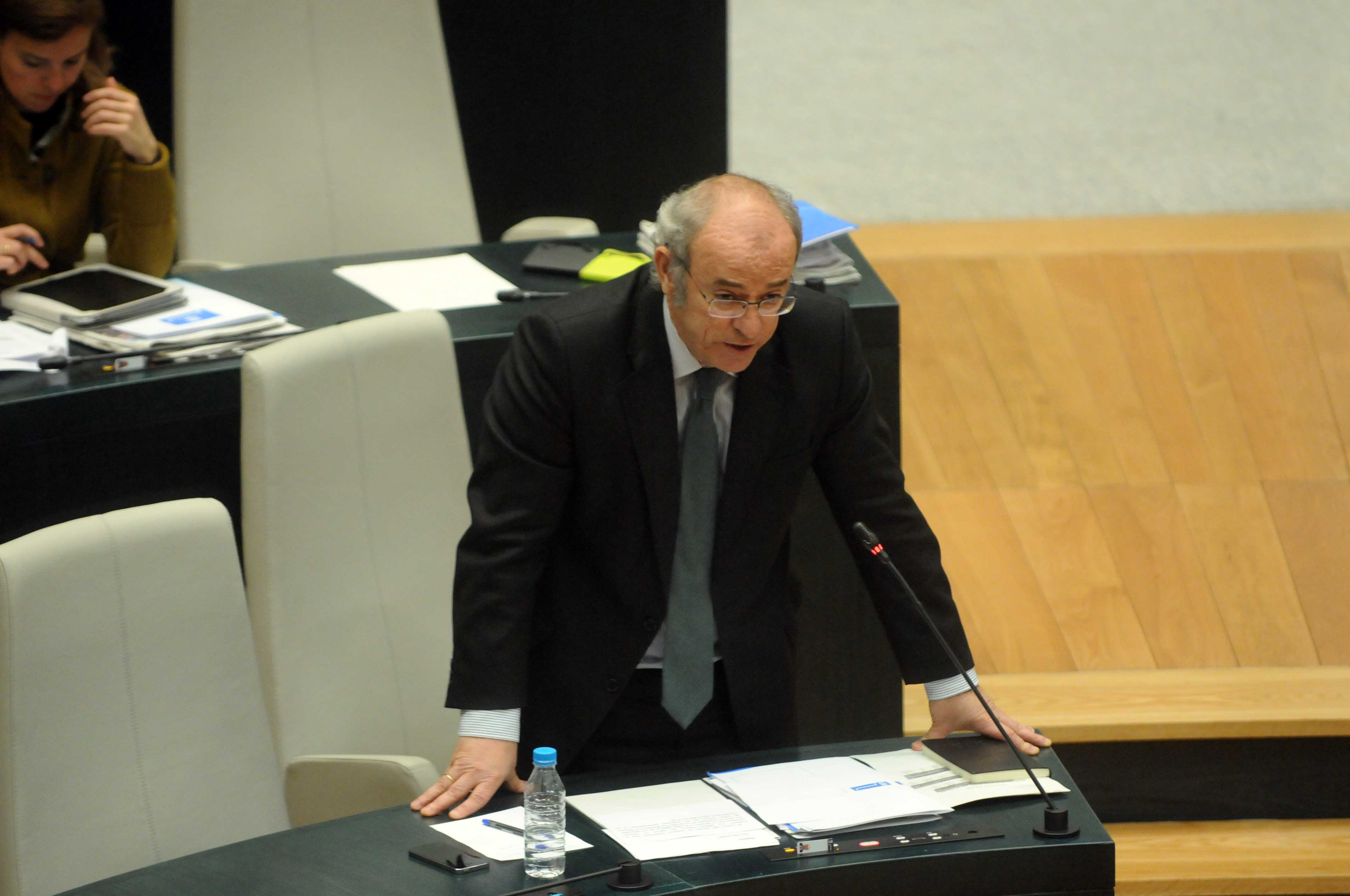 Pedro Corral, delegado de Las Artes, durante su intervención en el Pleno de hoy en el que se ha aprobado por unanimidad poner el nombre de Luis Aragonés a la avenida de acceso al estadio de La Peineta