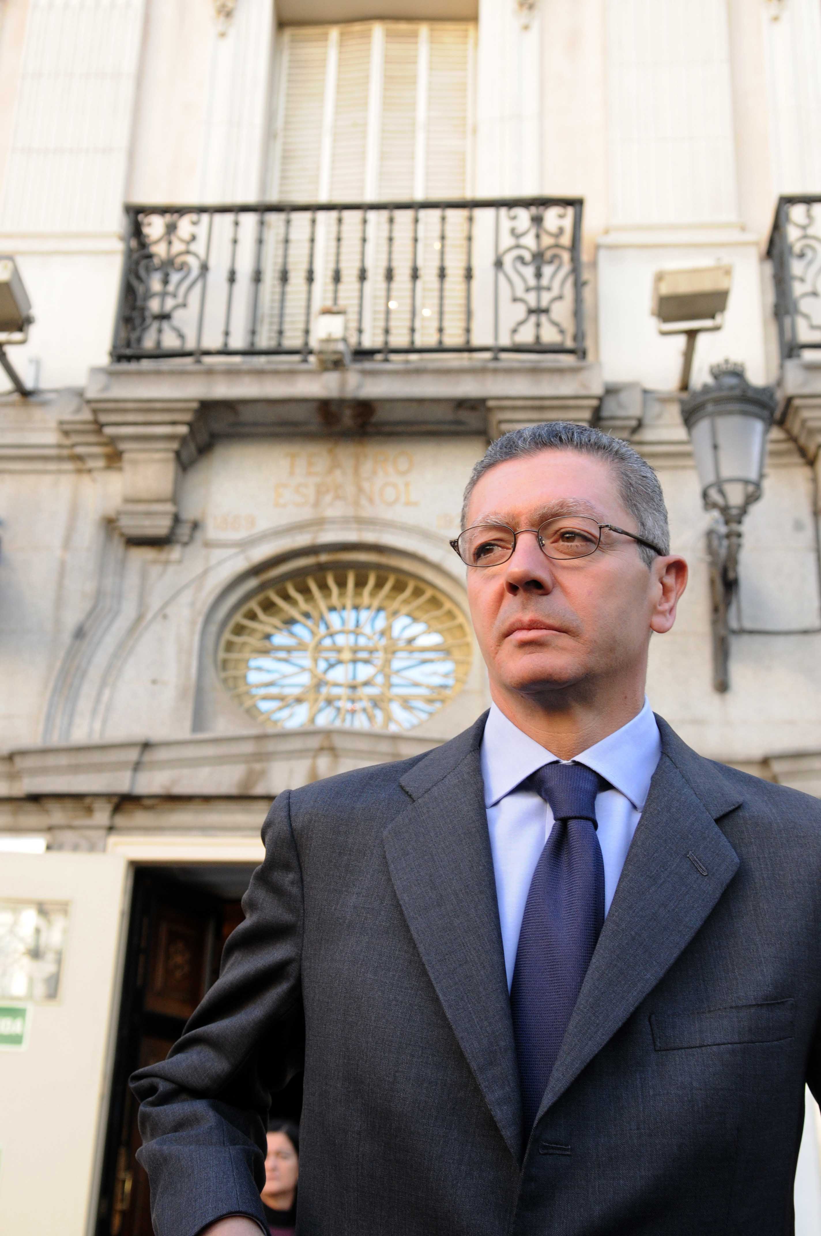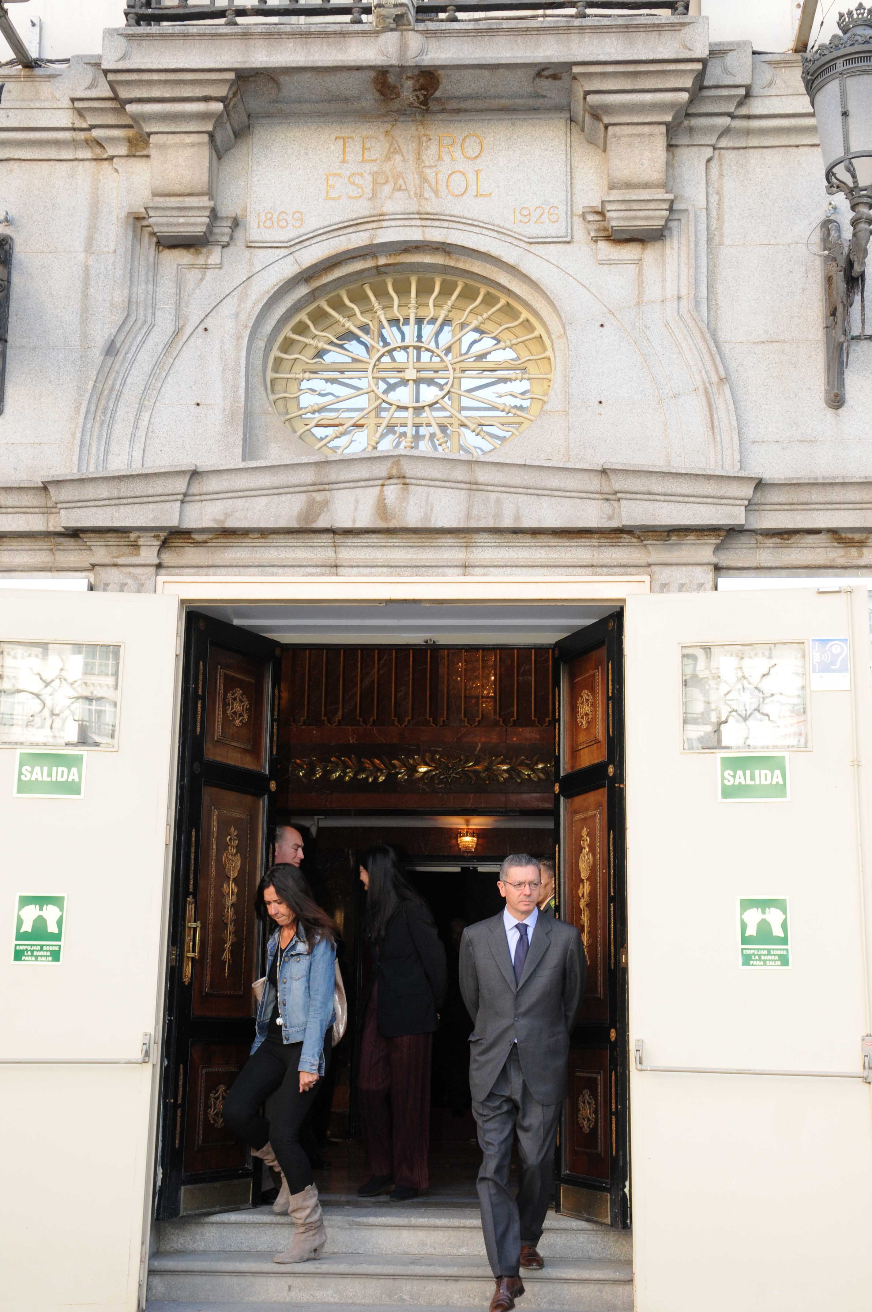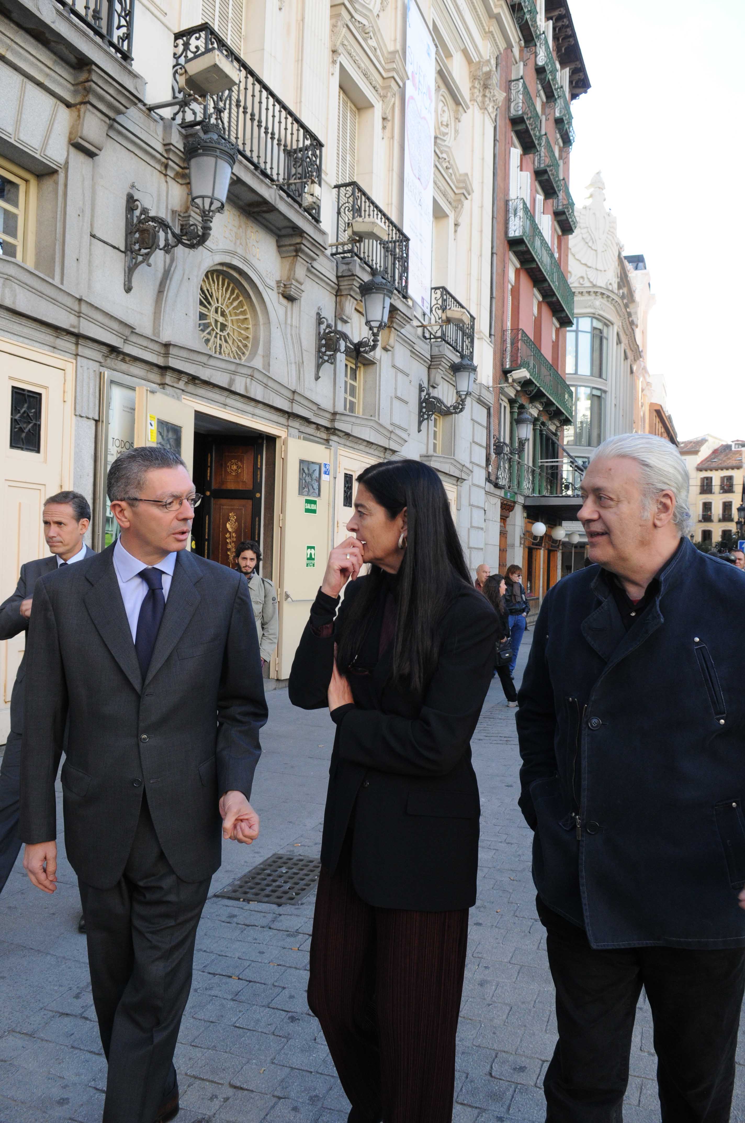 Distintas imágenes de la visita que ha realizado esta mañana el alcalde de la Ciudad de Madrid, Alberto Ruiz-Gallardón, a la capilla ardiente del actor Manuel Alexandre, instalada en el Teatro Español. El alcalde madrileño ha estado acompañado por la delegada de Las Artes, Alicia Moreno, y el director del teatro, Mario Gas.