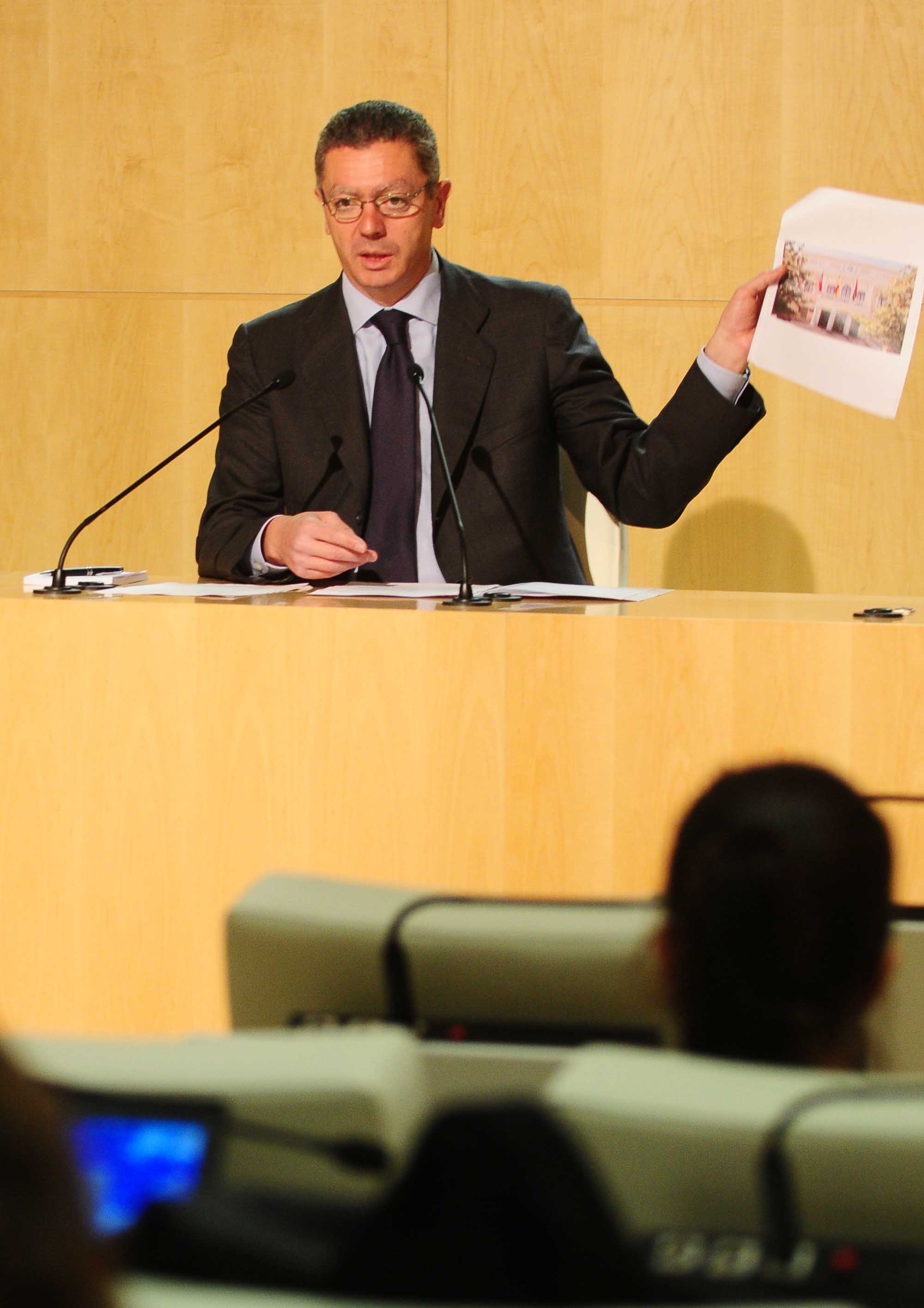 El alcalde de Madrid, Alberto Ruiz-Gallardón, durante la rueda de prensa en la que ha dado cuenta de los acuerdos de la Junta de Gobierno